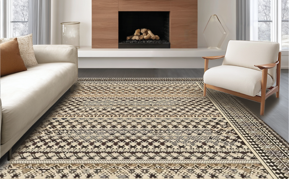 Ultra Soft Area Rug, Non Slip, Stain Resistant, Washable Area Rugs for Living Room, Bedroom, Chic Modern Diamond Pattern(Beige) Overview: