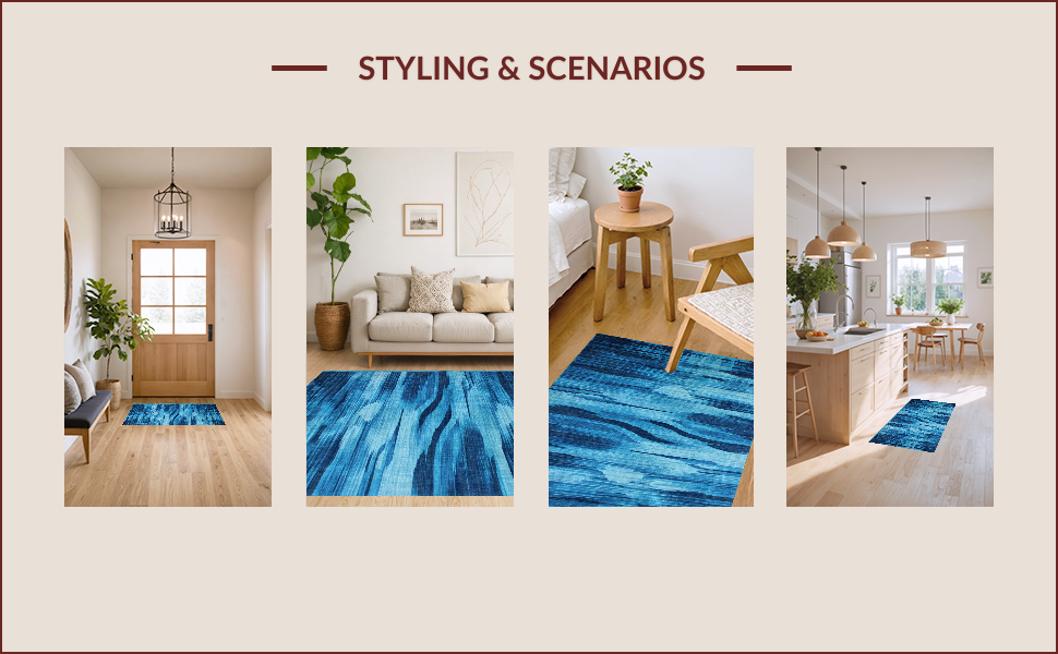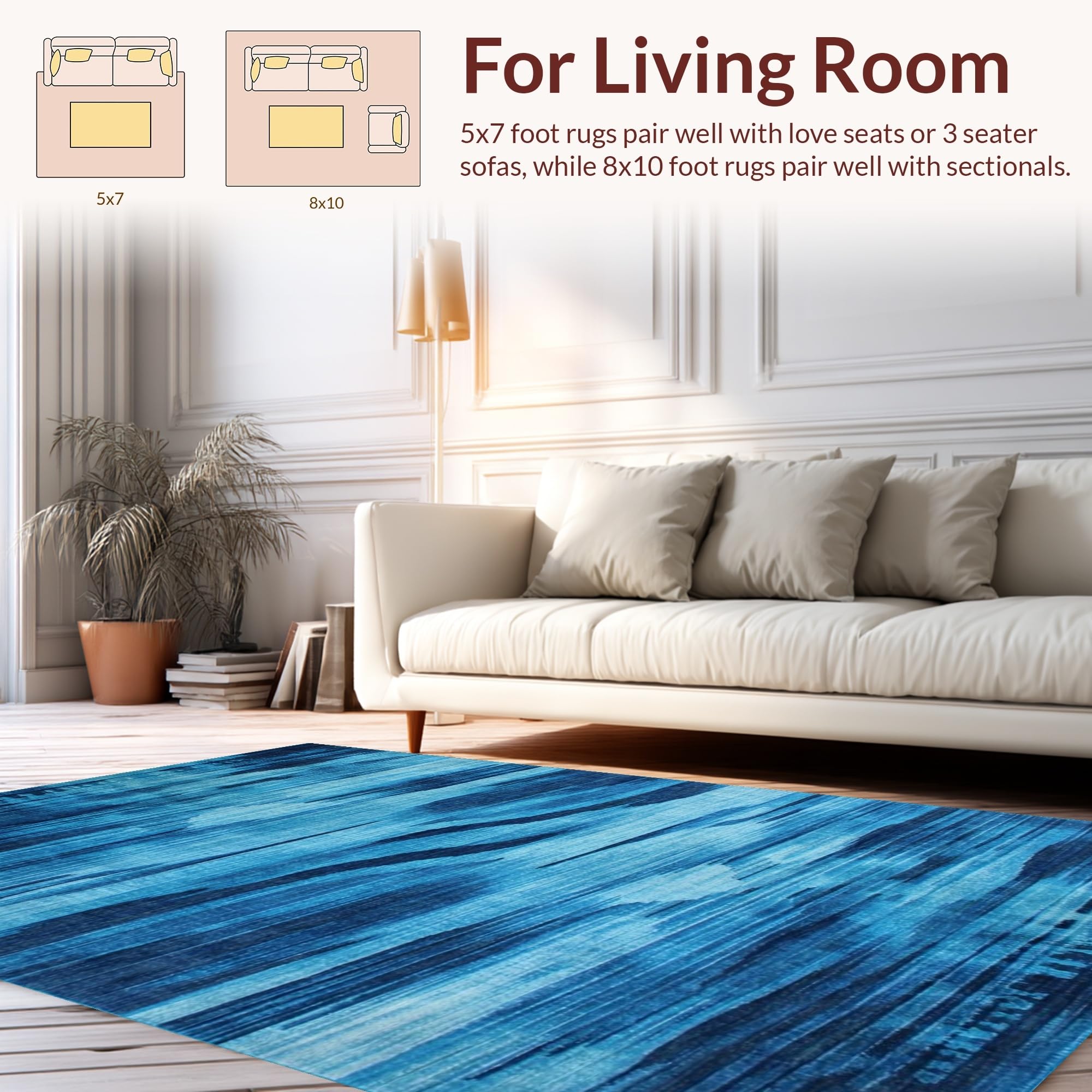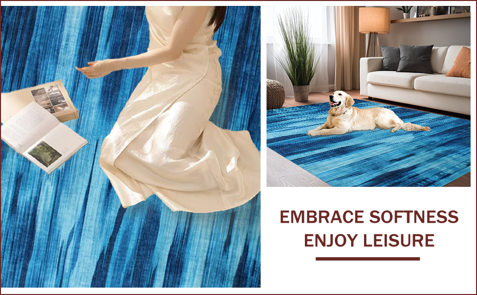 Ultra Soft Area Rug, Non Slip, Stain Resistant, Washable Area Rugs for Living Room, Bedroom, Chic Modern Fuzzy Aesthetic(Blue) Overview: