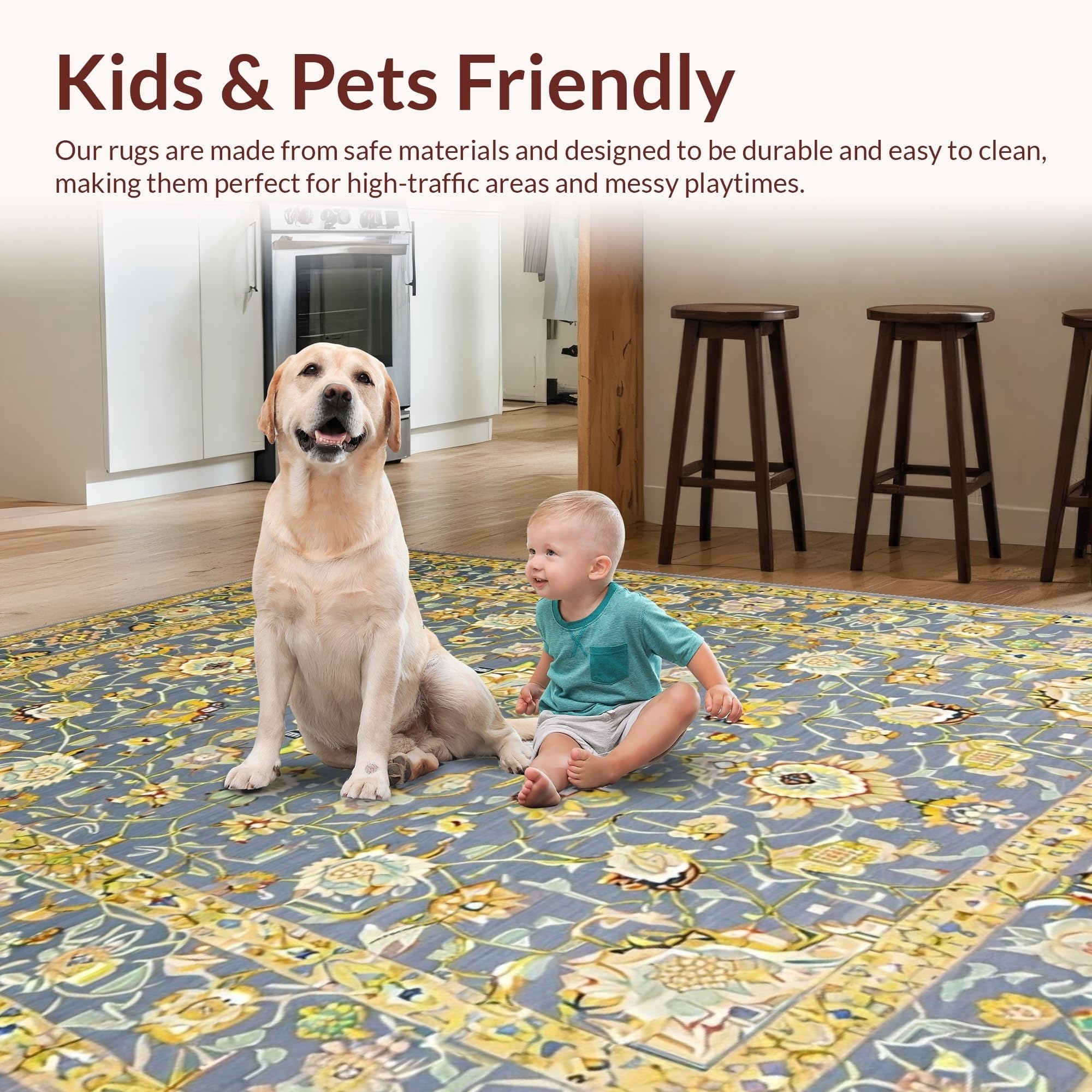 Ultra Soft Area Rug, Non Slip, Stain Resistant, Washable Area Rugs for Living Room, Bedroom, Chic Modern Geometric Floral Fusion(Gray) Overview: