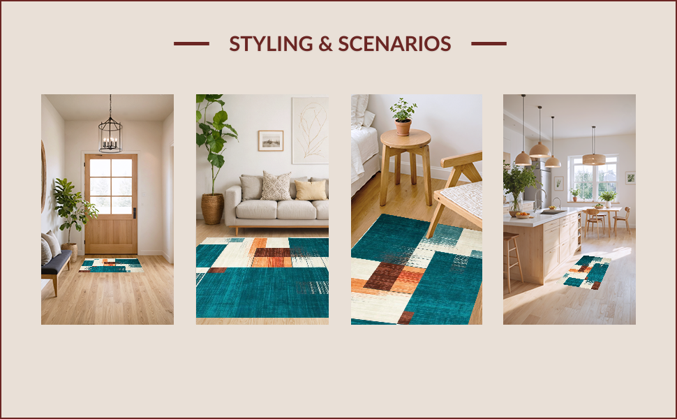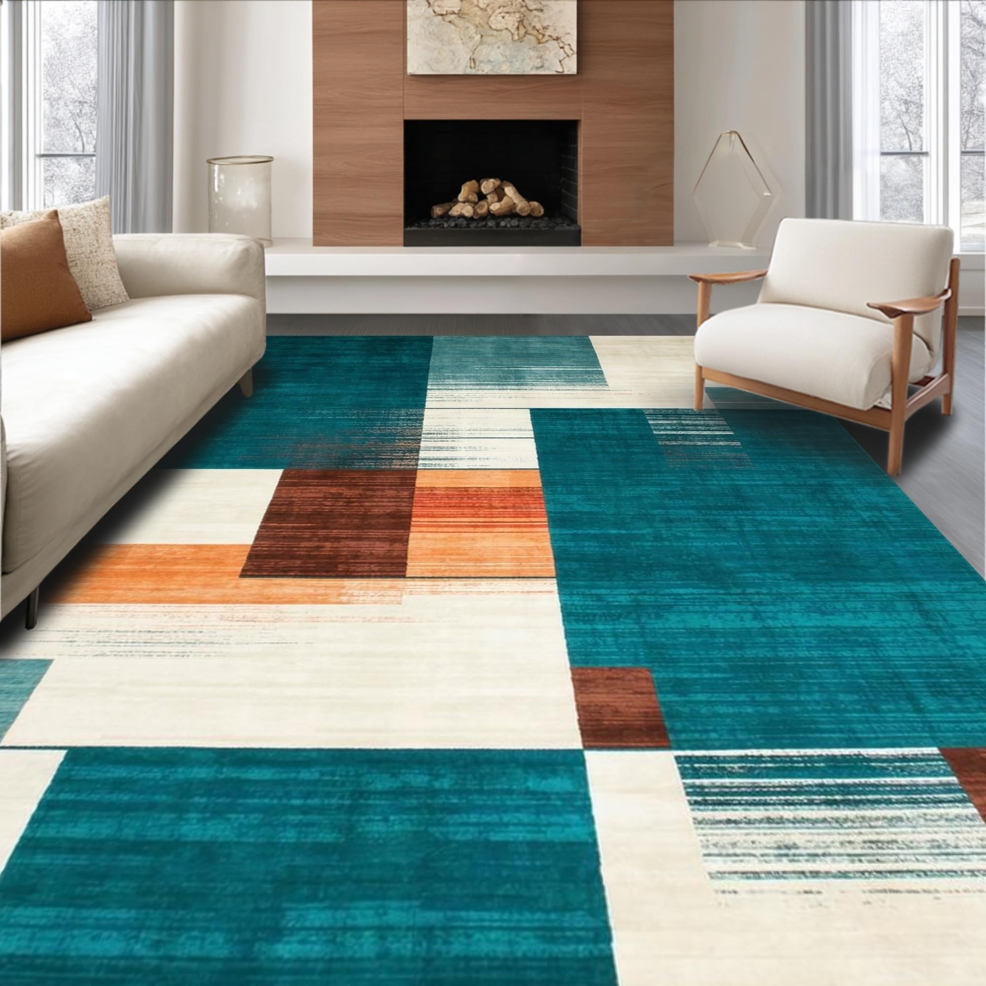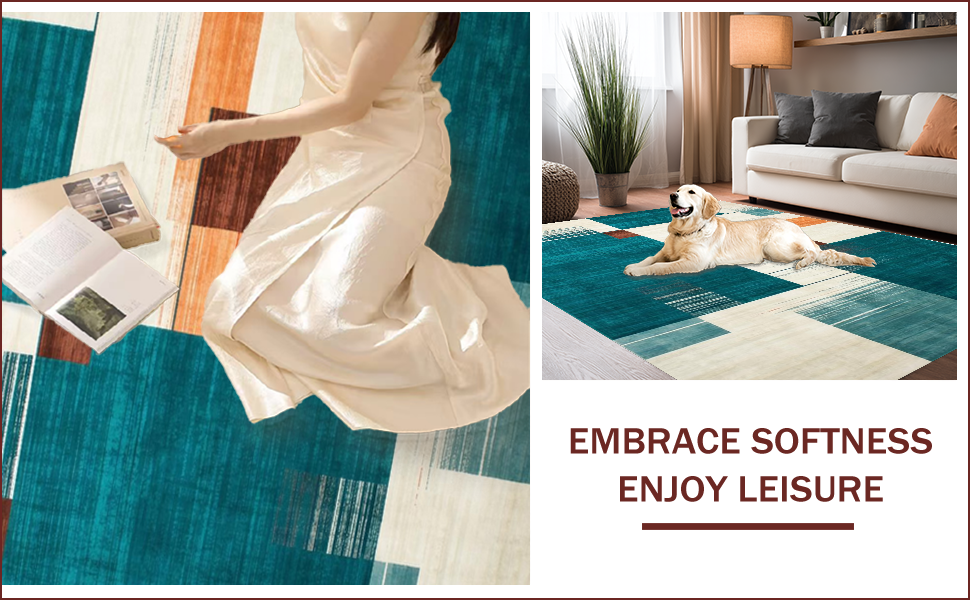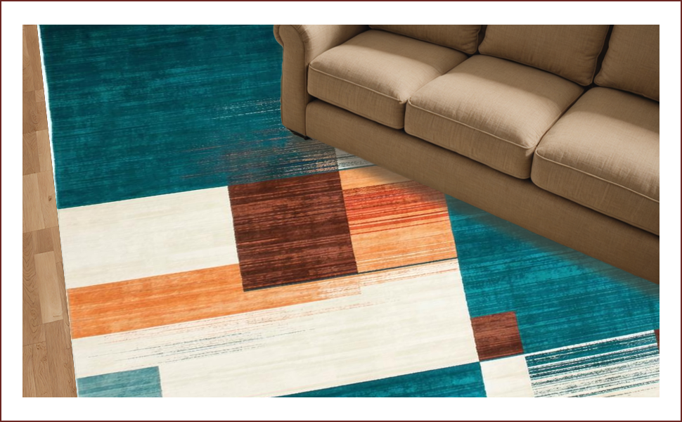 Ultra Soft Area Rug, Non Slip, Stain Resistant, Washable Area Rugs for Living Room, Bedroom, Chic Modern Geometric Touch(Blue) Overview: