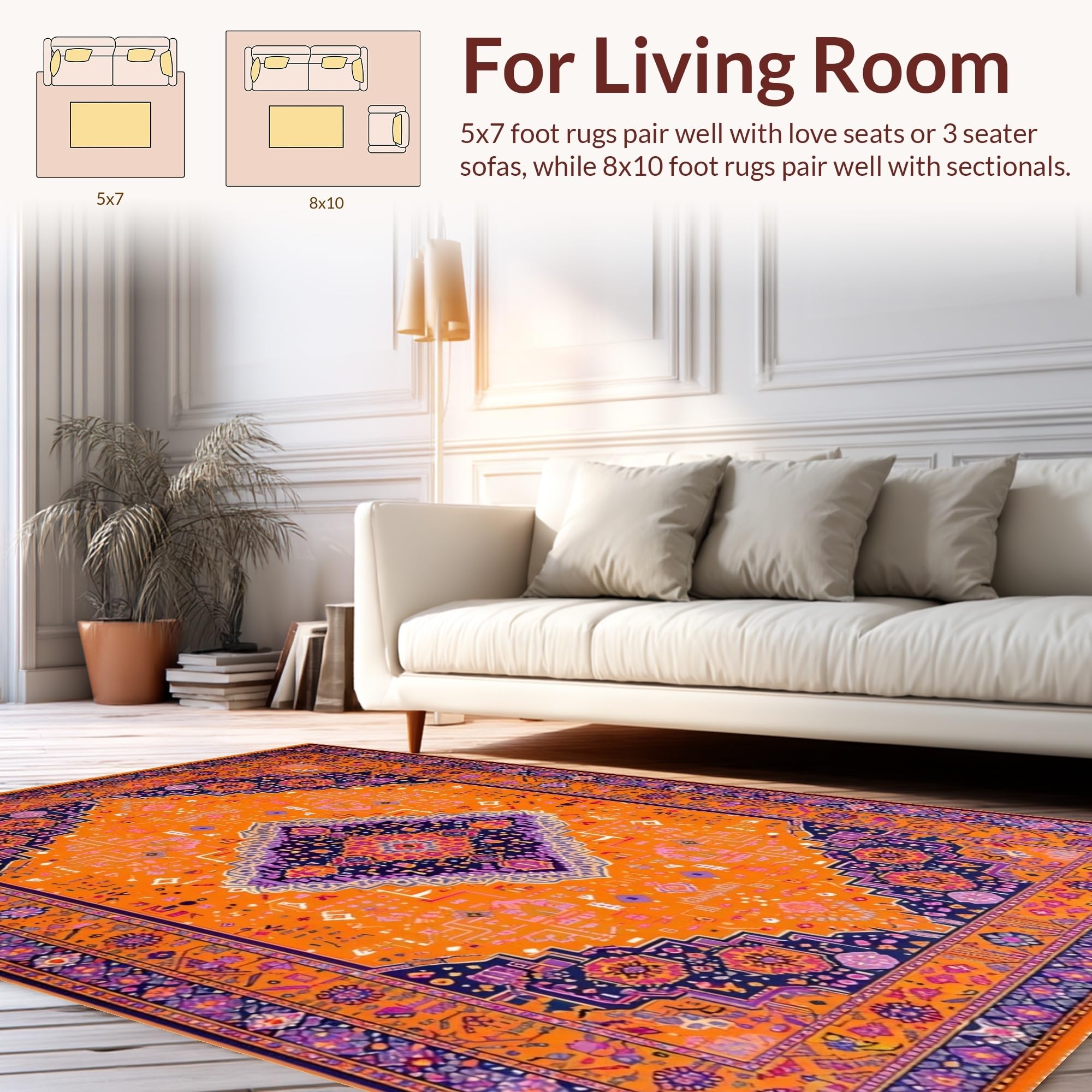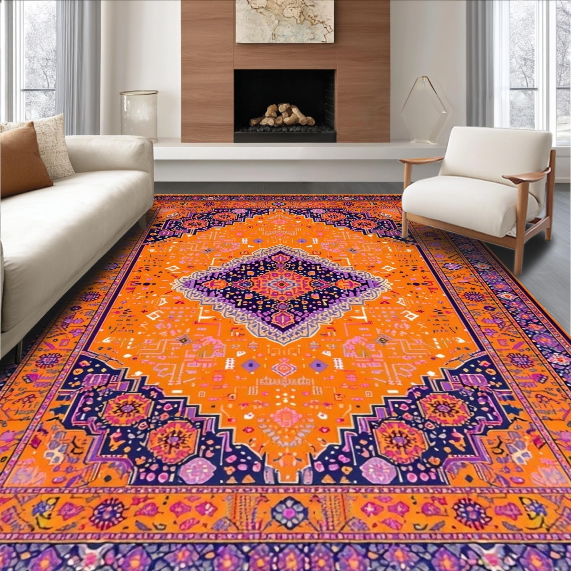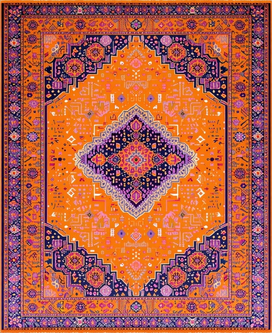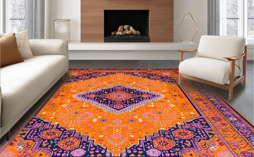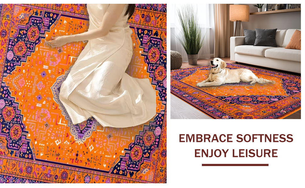Ultra Soft Area Rug, Non Slip, Stain Resistant, Washable Area Rugs for Living Room, Bedroom, Chic Modern Layered Textures(Orange) Overview: