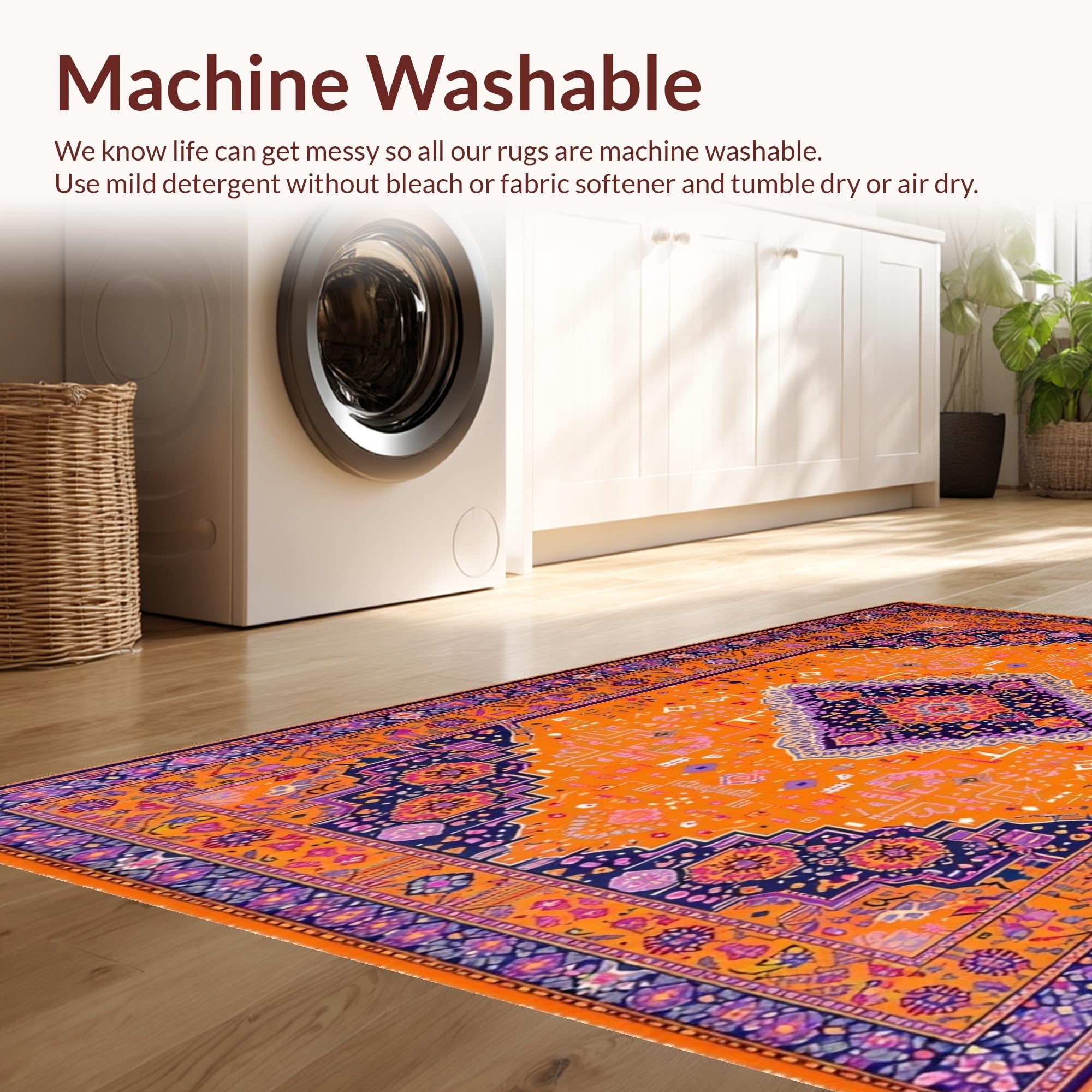 - Machine Washable: Our rugs can be easily thrown in the wash machine.