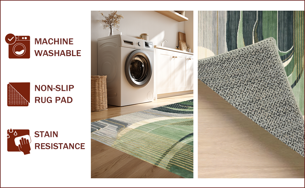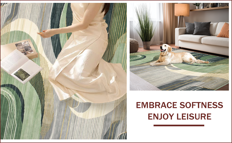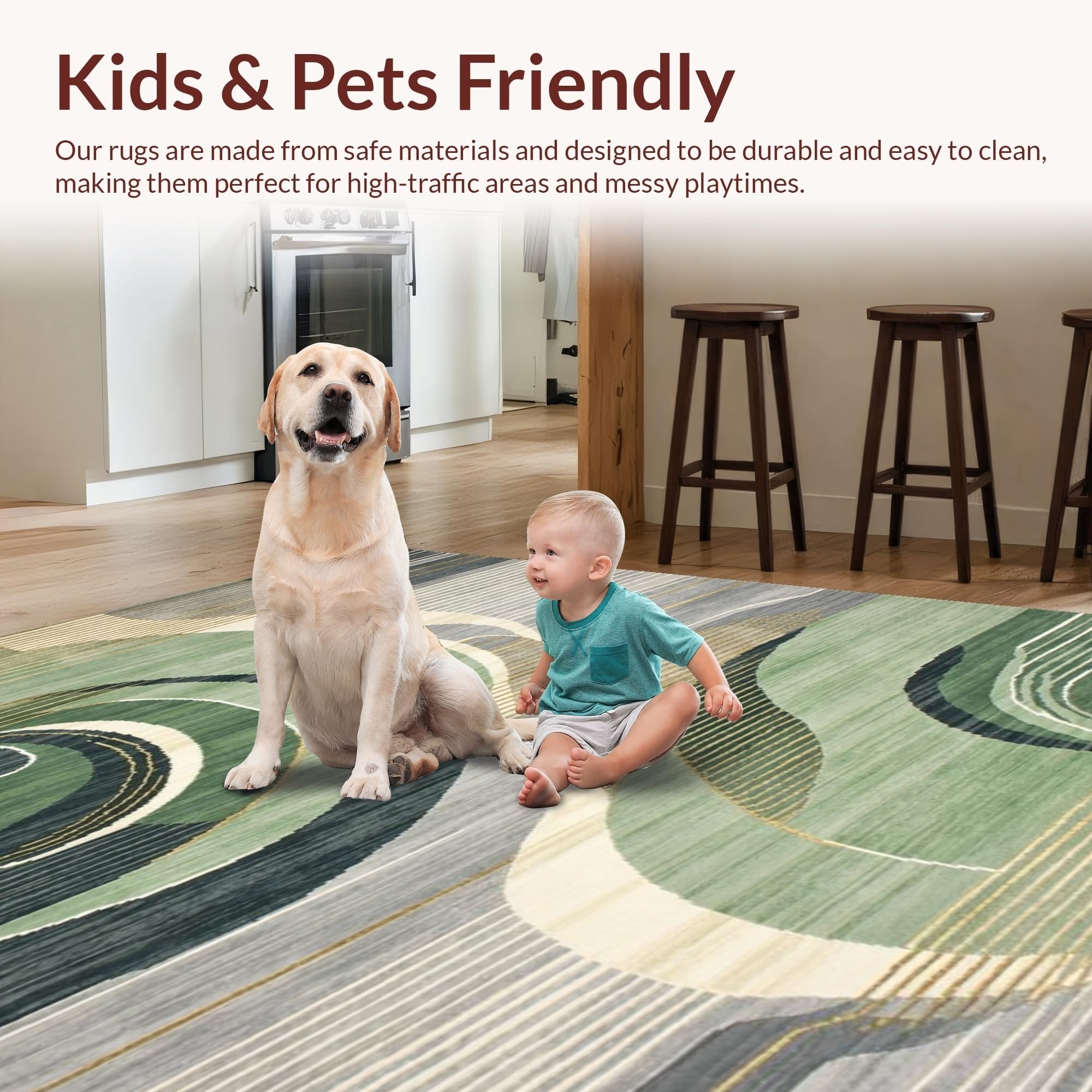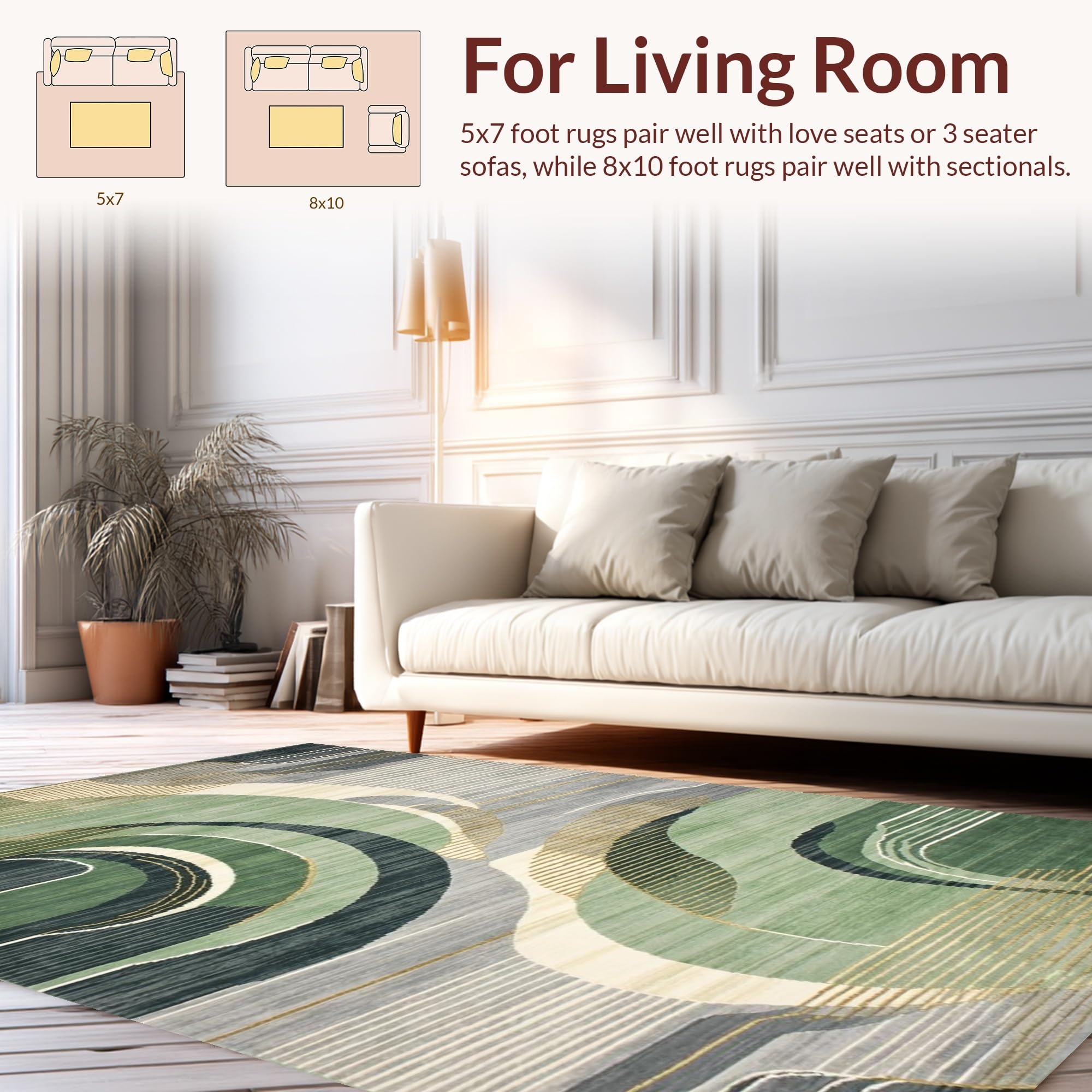 Ultra Soft Area Rug, Non Slip, Stain Resistant, Washable Area Rugs for Living Room, Bedroom, Chic Modern Organic Geometric Design(Green) Overview: