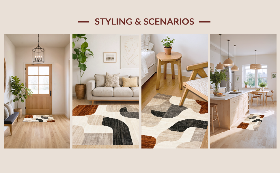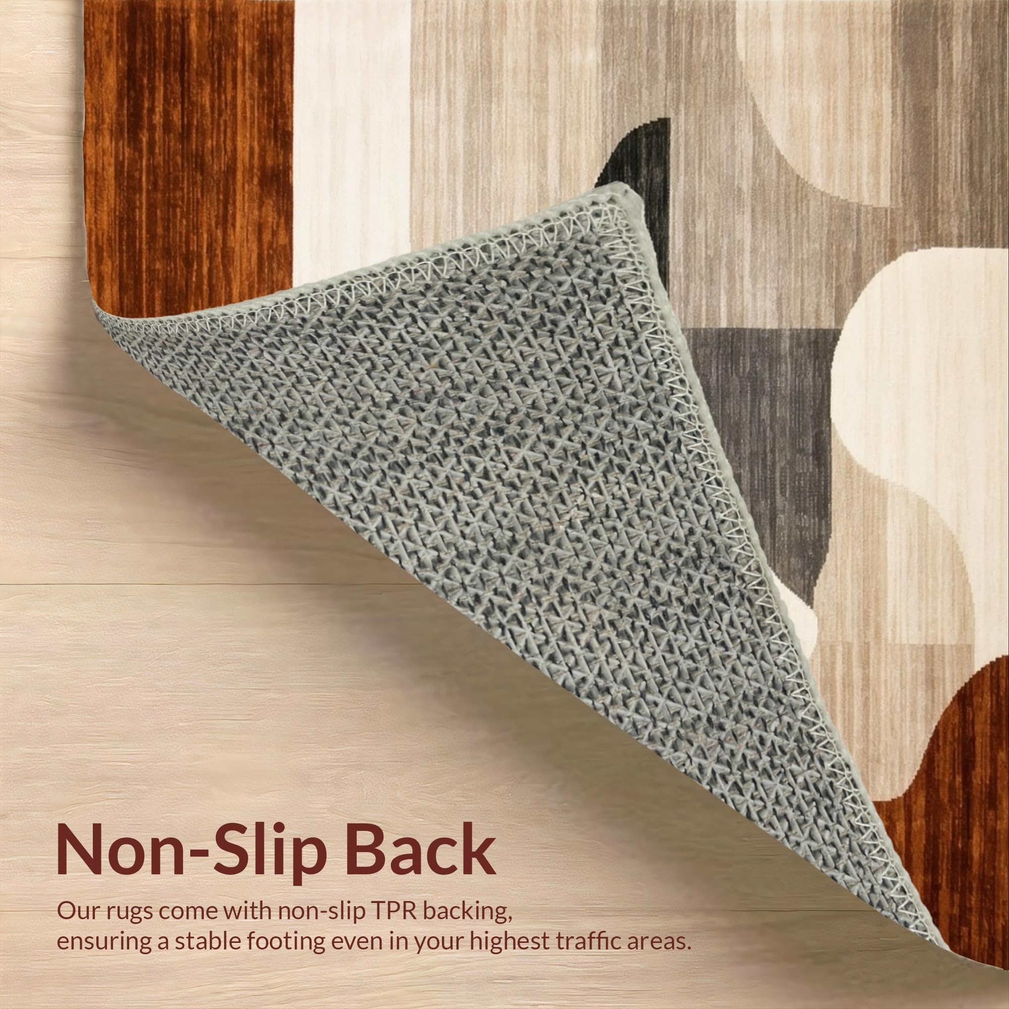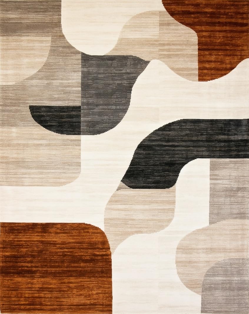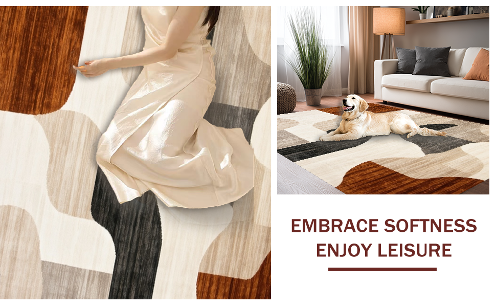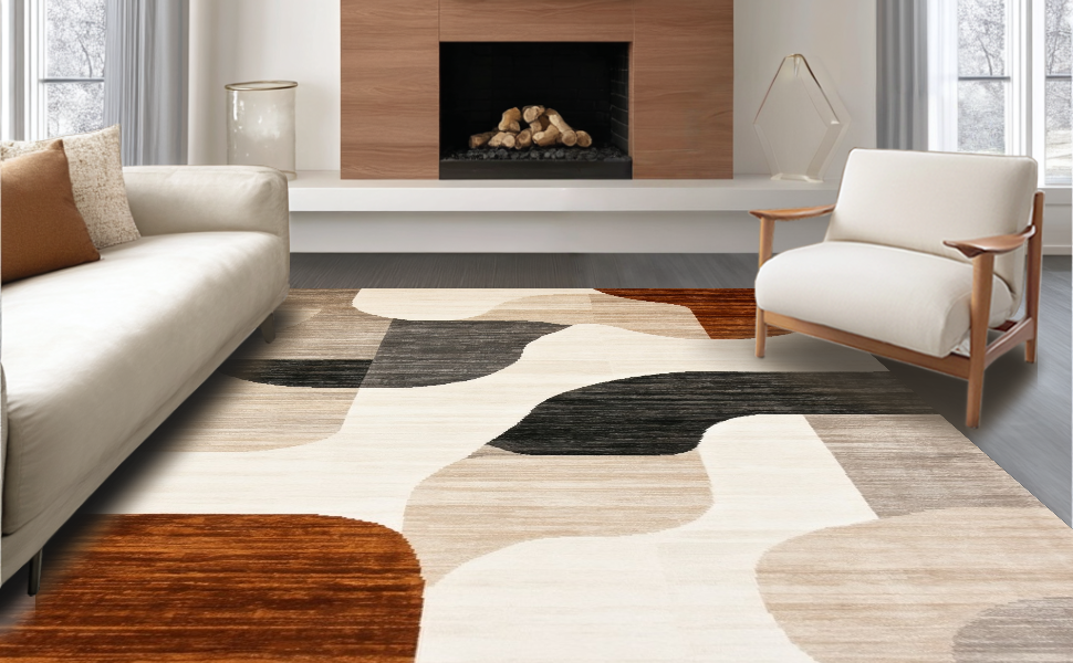 Ultra Soft Area Rug, Non Slip, Stain Resistant, Washable Area Rugs for Living Room, Bedroom, Chic Modern Organic Lines(Beige) Overview: