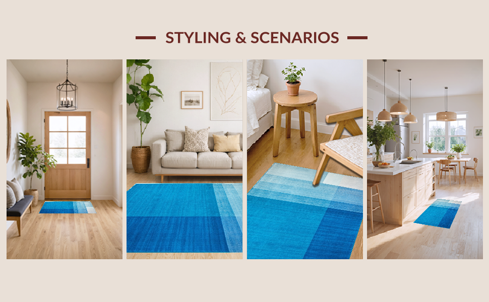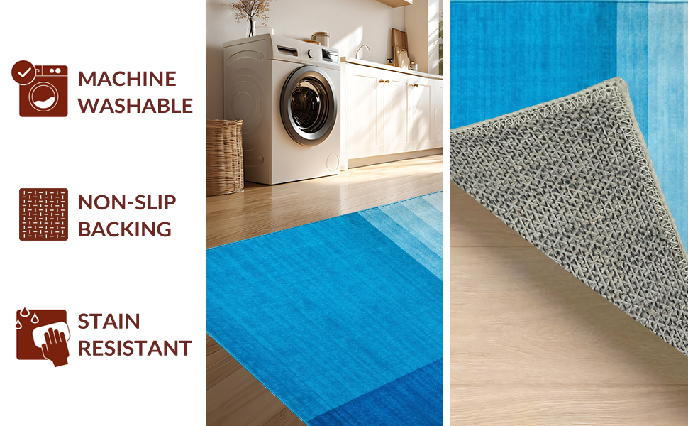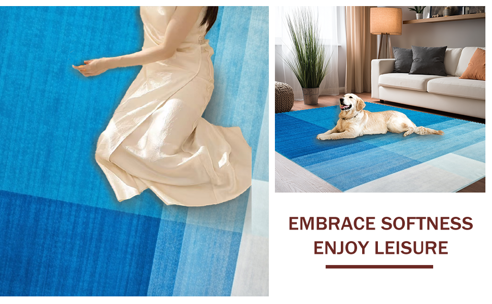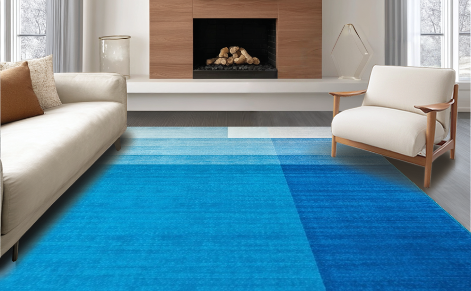 Ultra Soft Area Rug, Non Slip, Stain Resistant, Washable Area Rugs for Living Room, Bedroom, Chic Modern Sky Color Fusion(Blue) Overview: