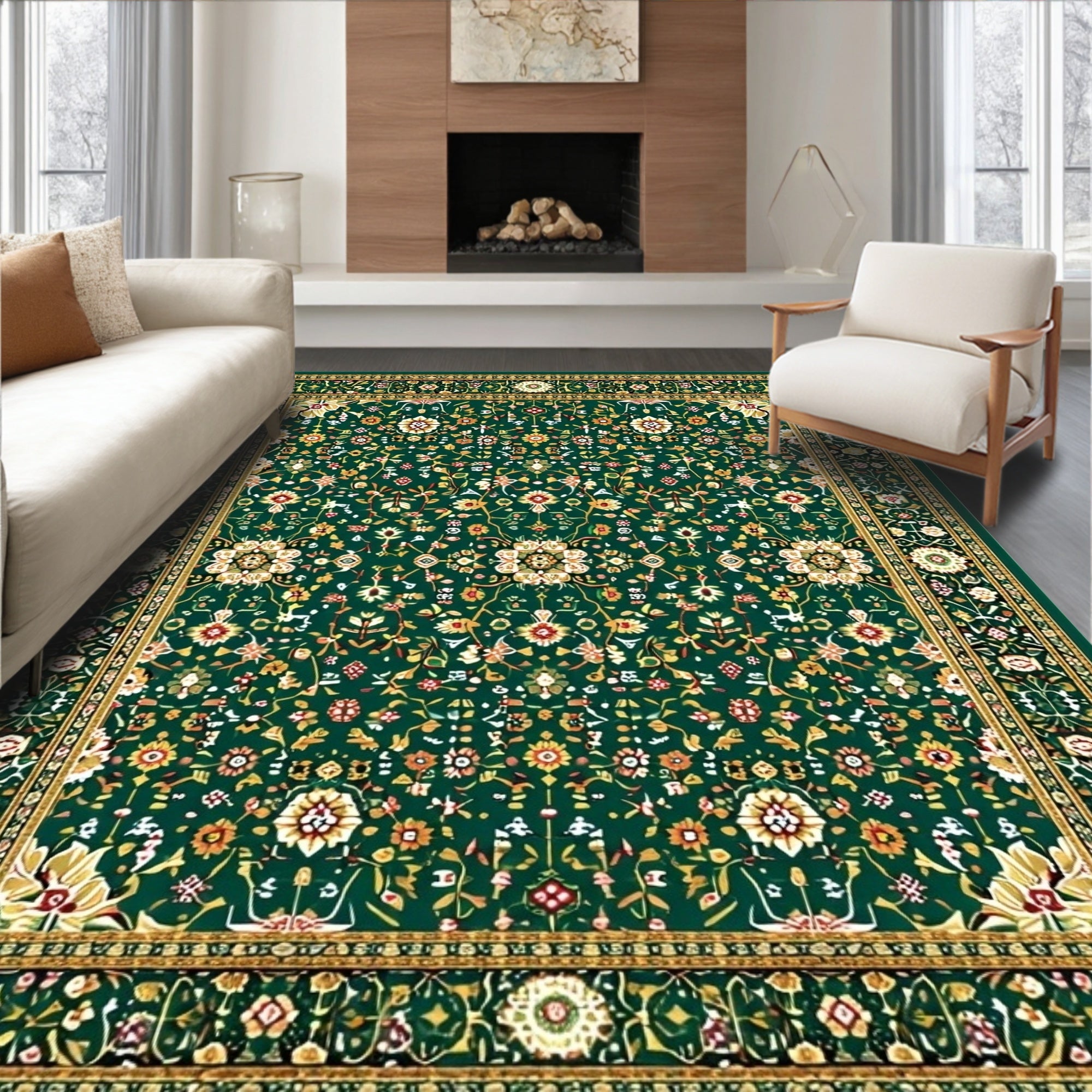 Flatwoven High Traffic Area Rug, Chic Monochrome Composition, Non Slip, Stain Resistant, Washable Area Rugs for Living Room, Bedroom (Green) Overview: