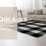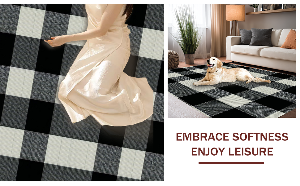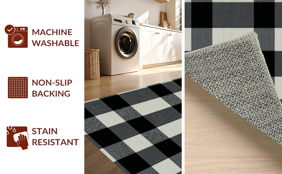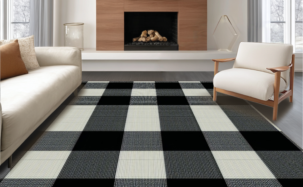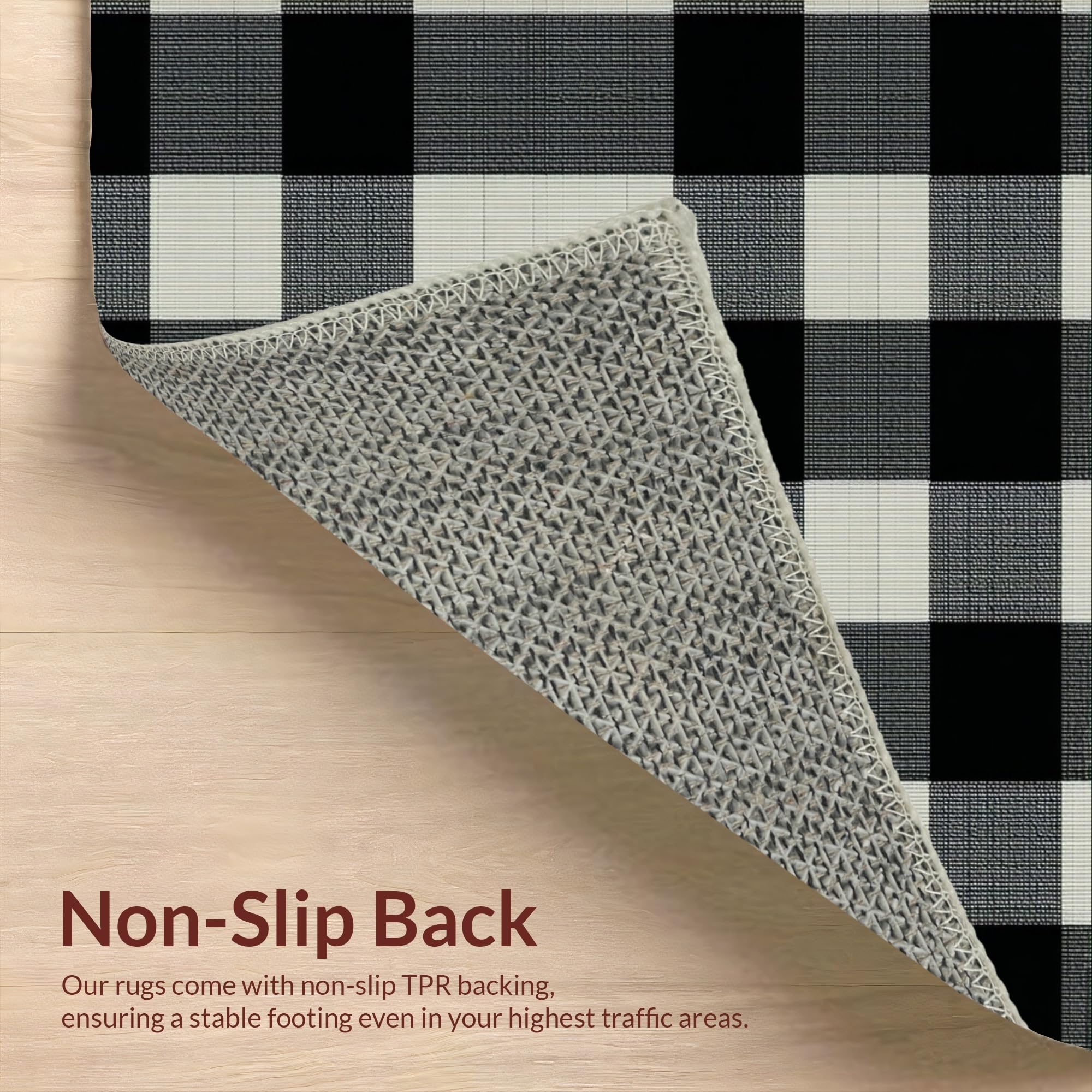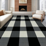 Ultra Soft Area Rug, Non Slip, Stain Resistant, Washable Area Rugs for Living Room, Bedroom, Chic Monochrome Gingham Aesthetic(Black) Overview: