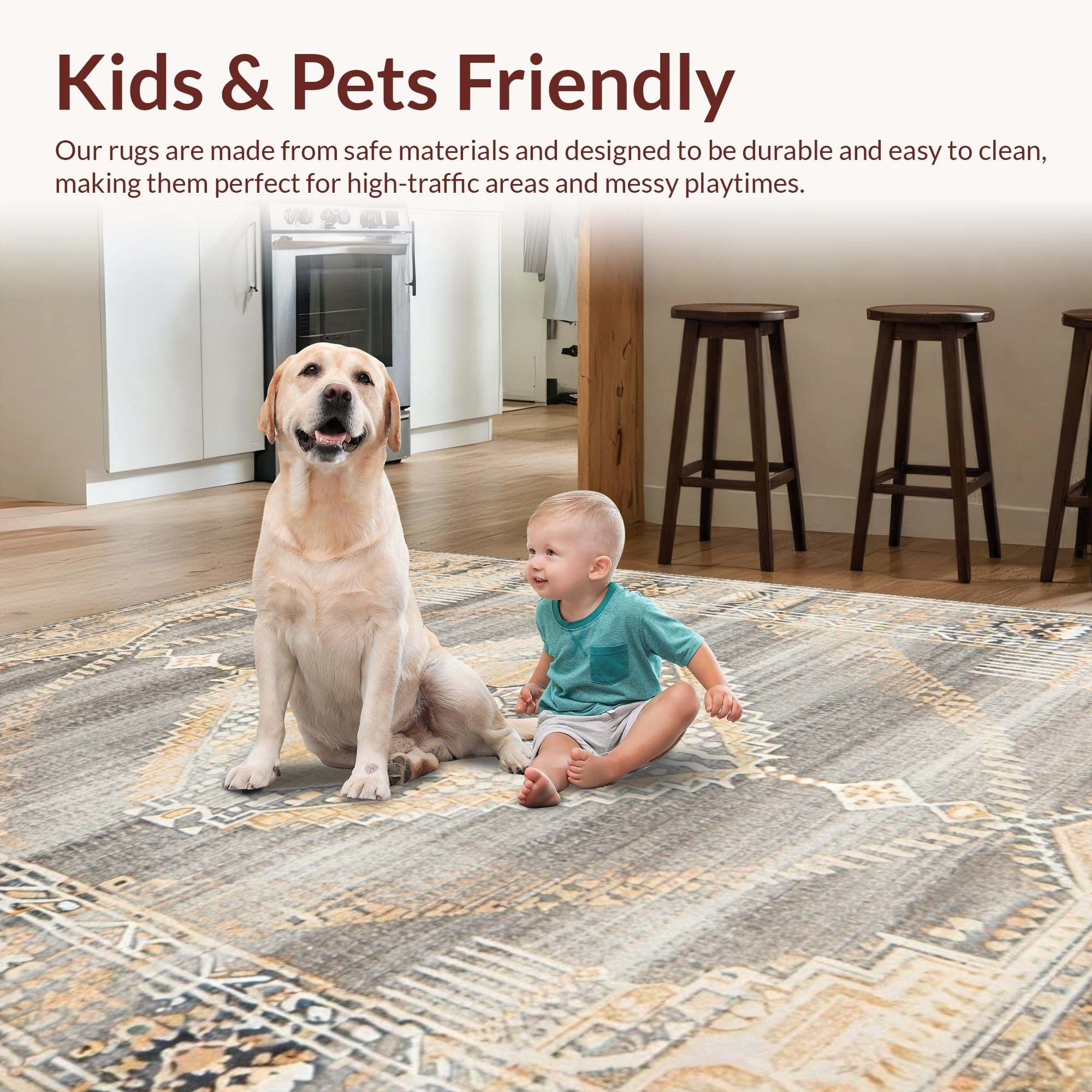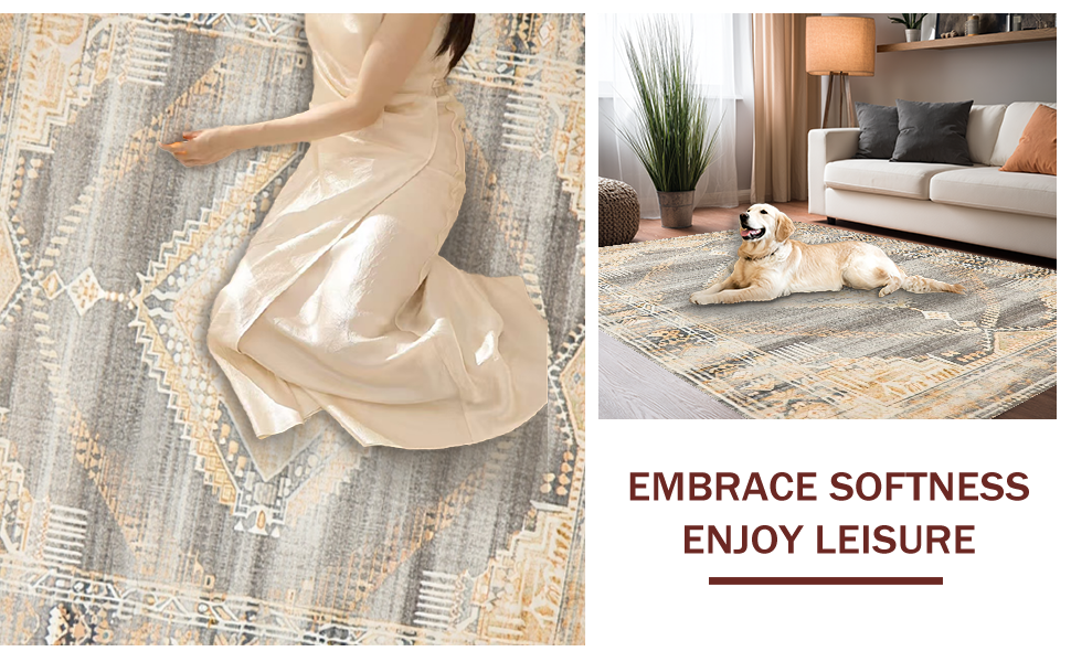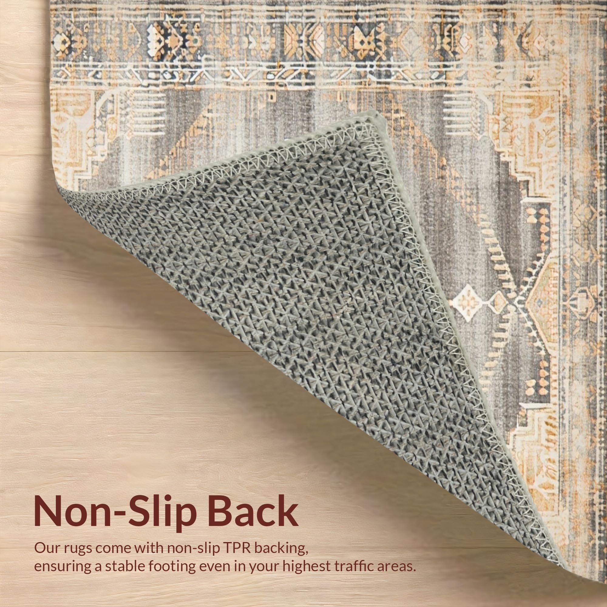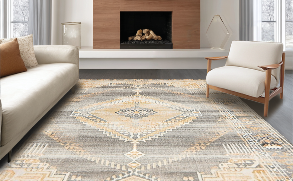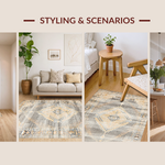 Ultra Soft Area Rug, Non Slip, Stain Resistant, Washable Area Rugs for Living Room, Bedroom, Chic Monochrome Medallion Accent(Beige) Overview: