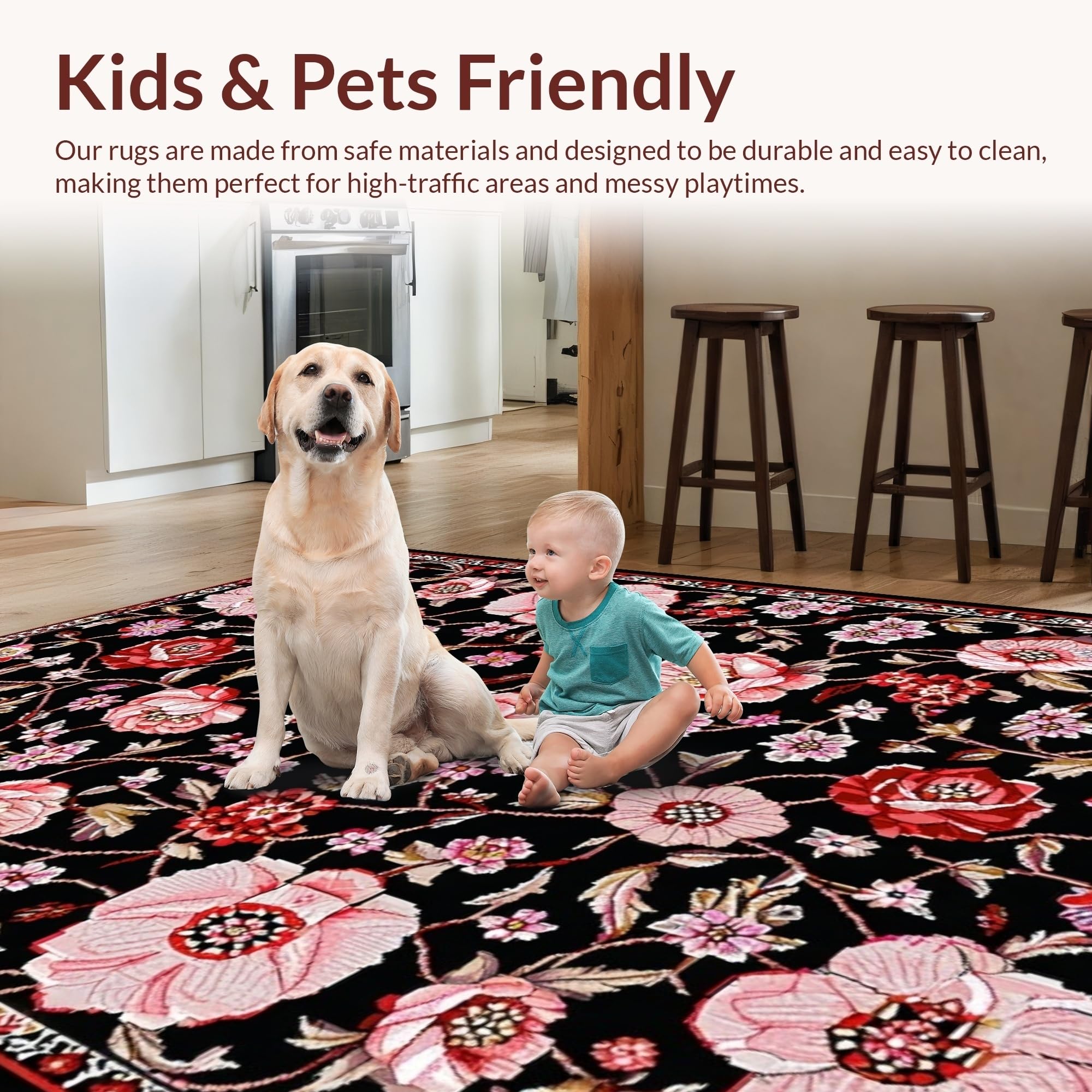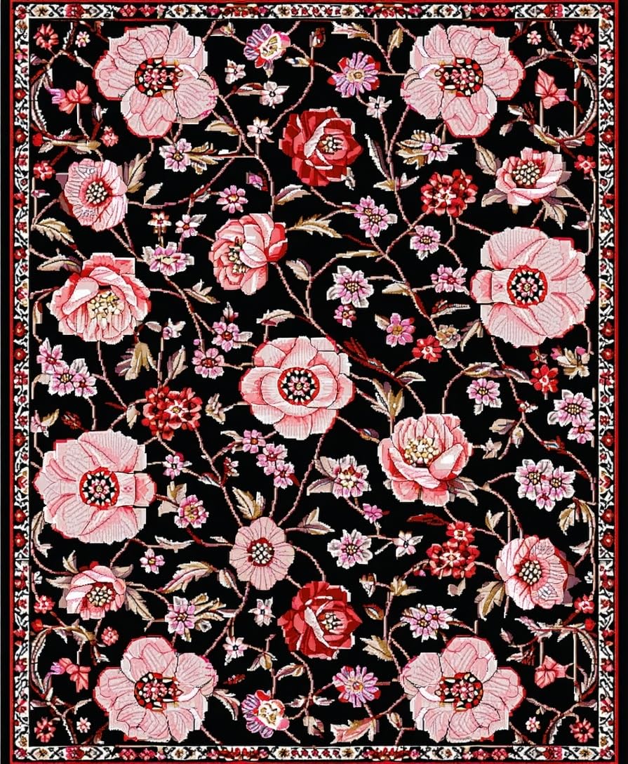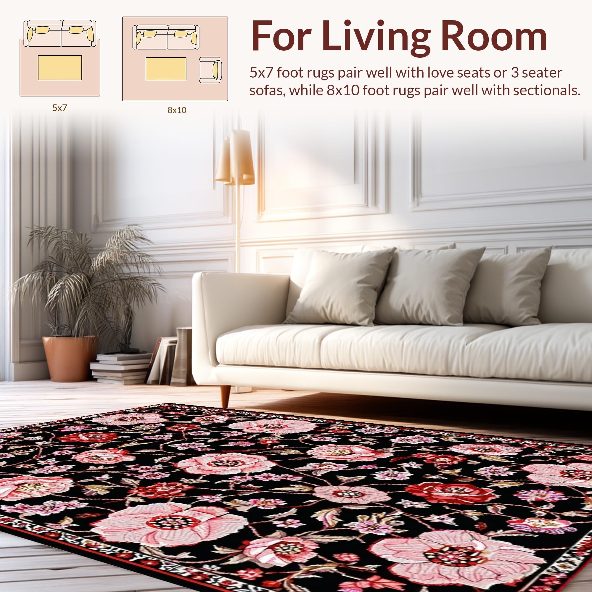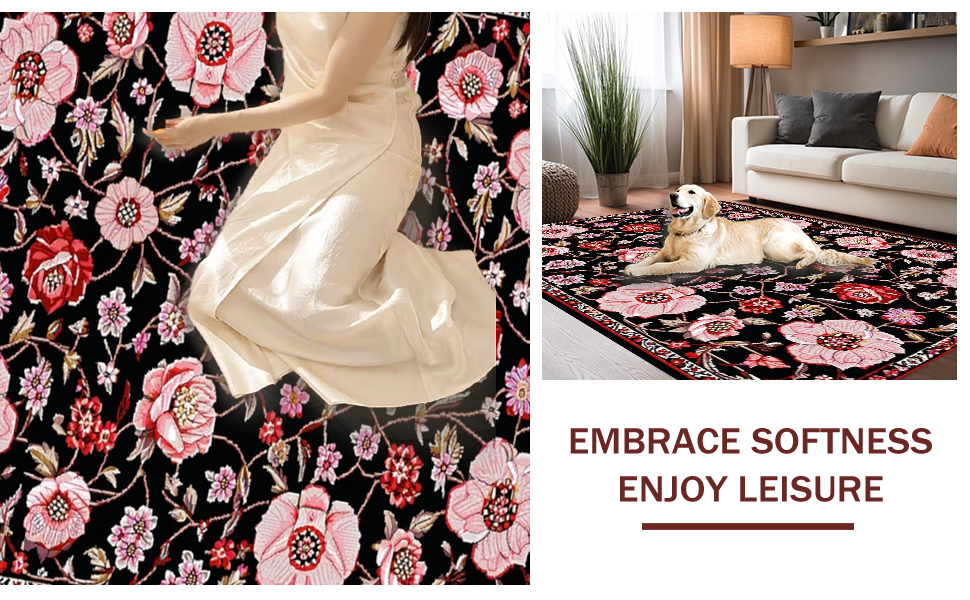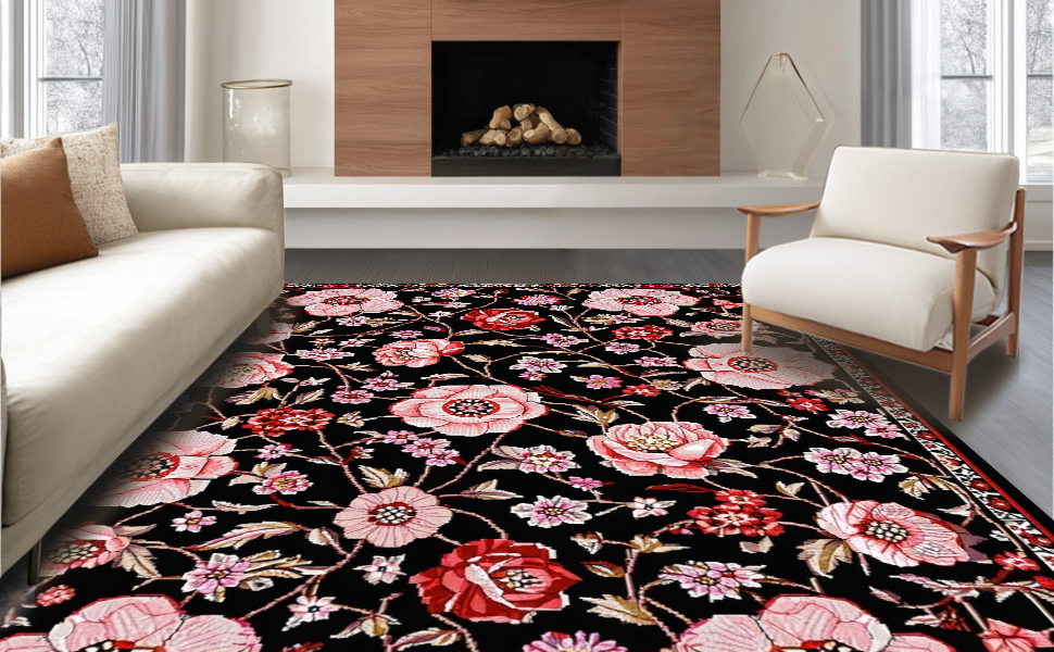 Ultra Soft Area Rug, Non Slip, Stain Resistant, Washable Area Rugs for Living Room, Bedroom, Chic Monochrome Nature Motif(Black) Overview: