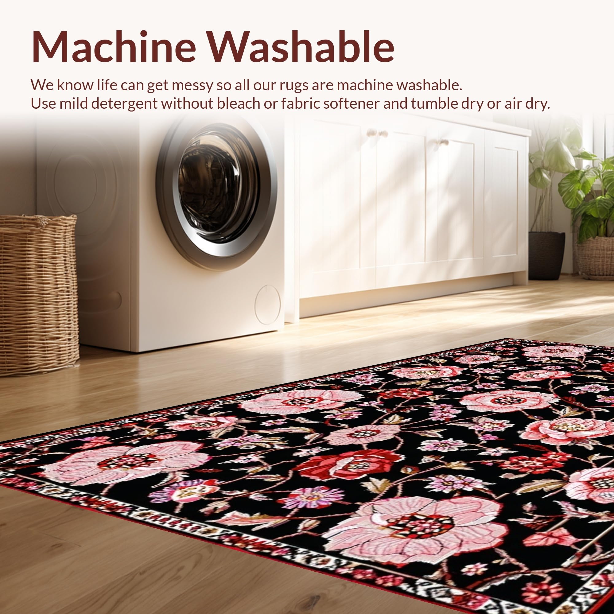 - Machine Washable: Our rugs can be easily thrown in the wash machine.