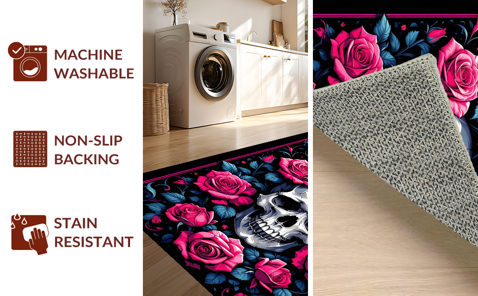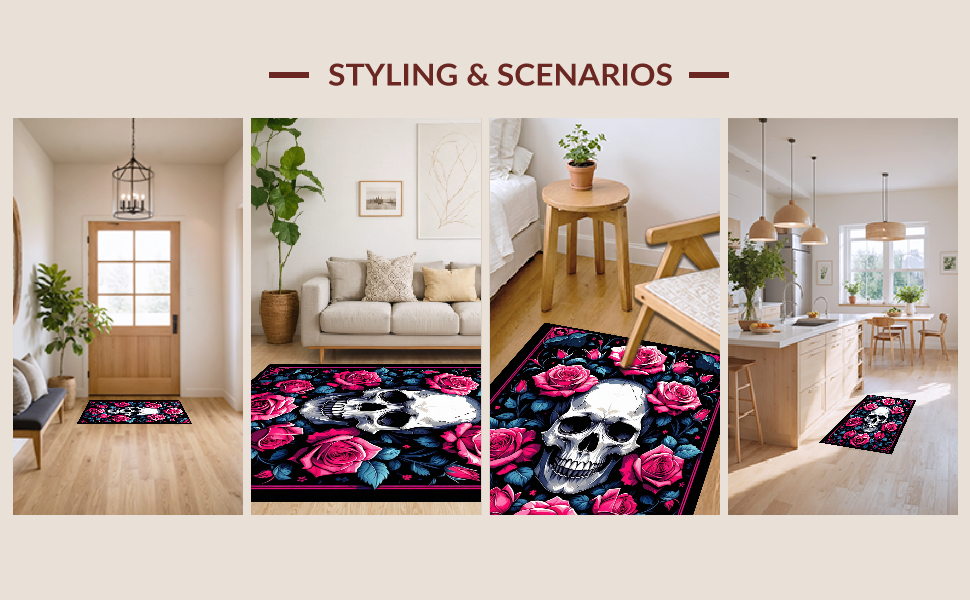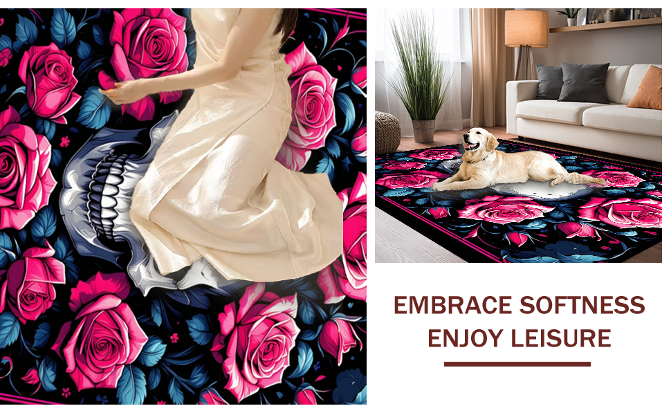 Ultra Soft Area Rug, Non Slip, Stain Resistant, Washable Area Rugs for Living Room, Bedroom, Chic Monochrome Skull Arrangement(Pink) Overview: