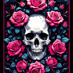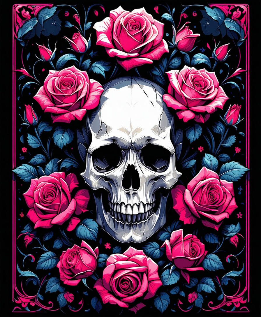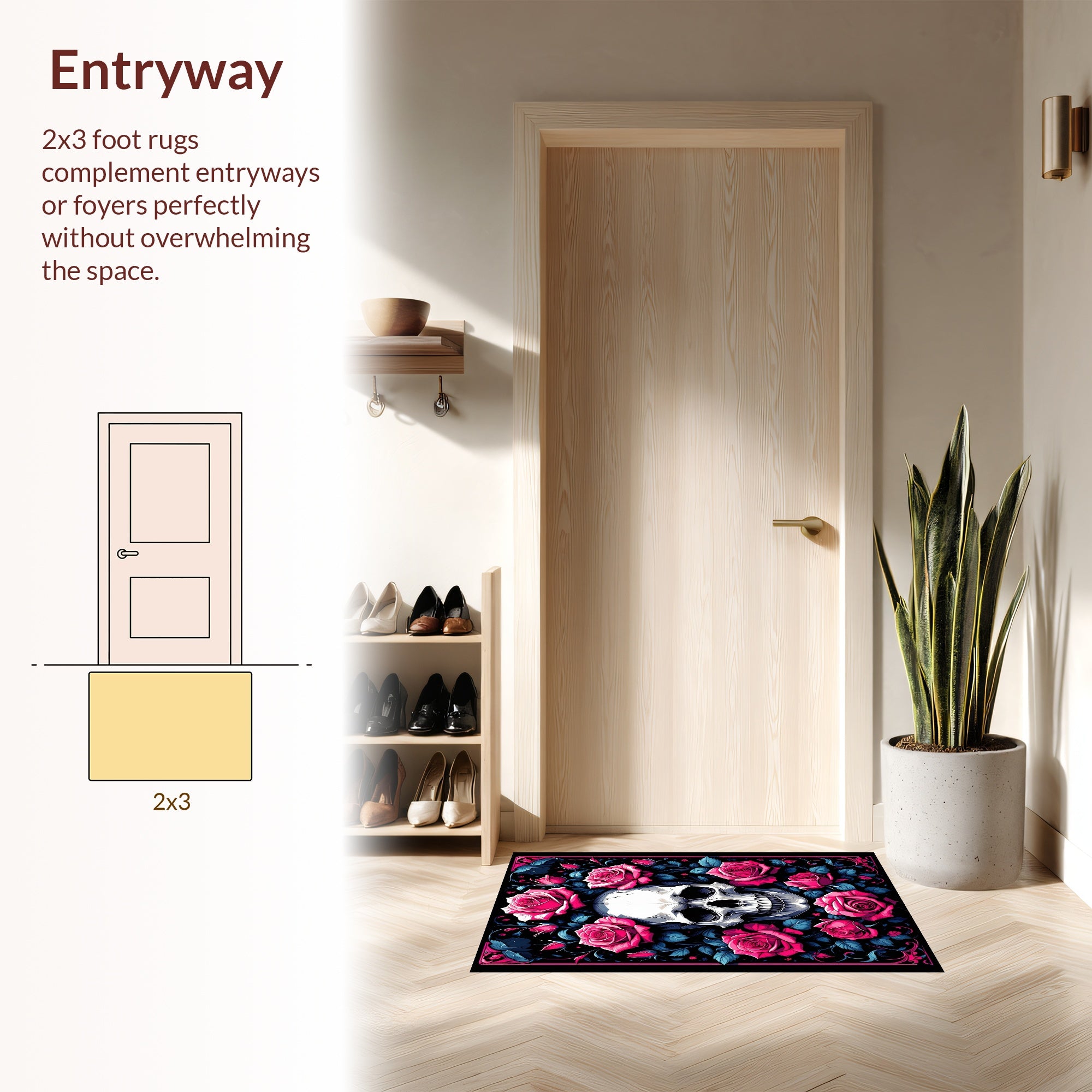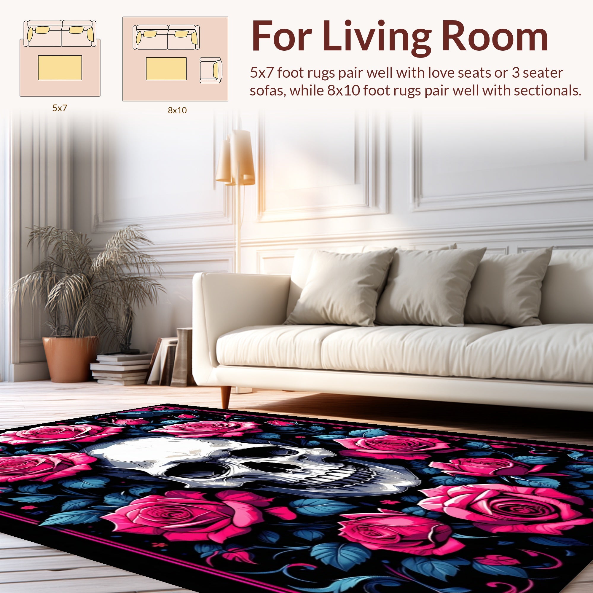 Flatwoven High Traffic Area Rug, Chic Monochrome Skull Arrangement, Non Slip, Stain Resistant, Washable Area Rugs for Living Room, Bedroom (Pink) Overview: