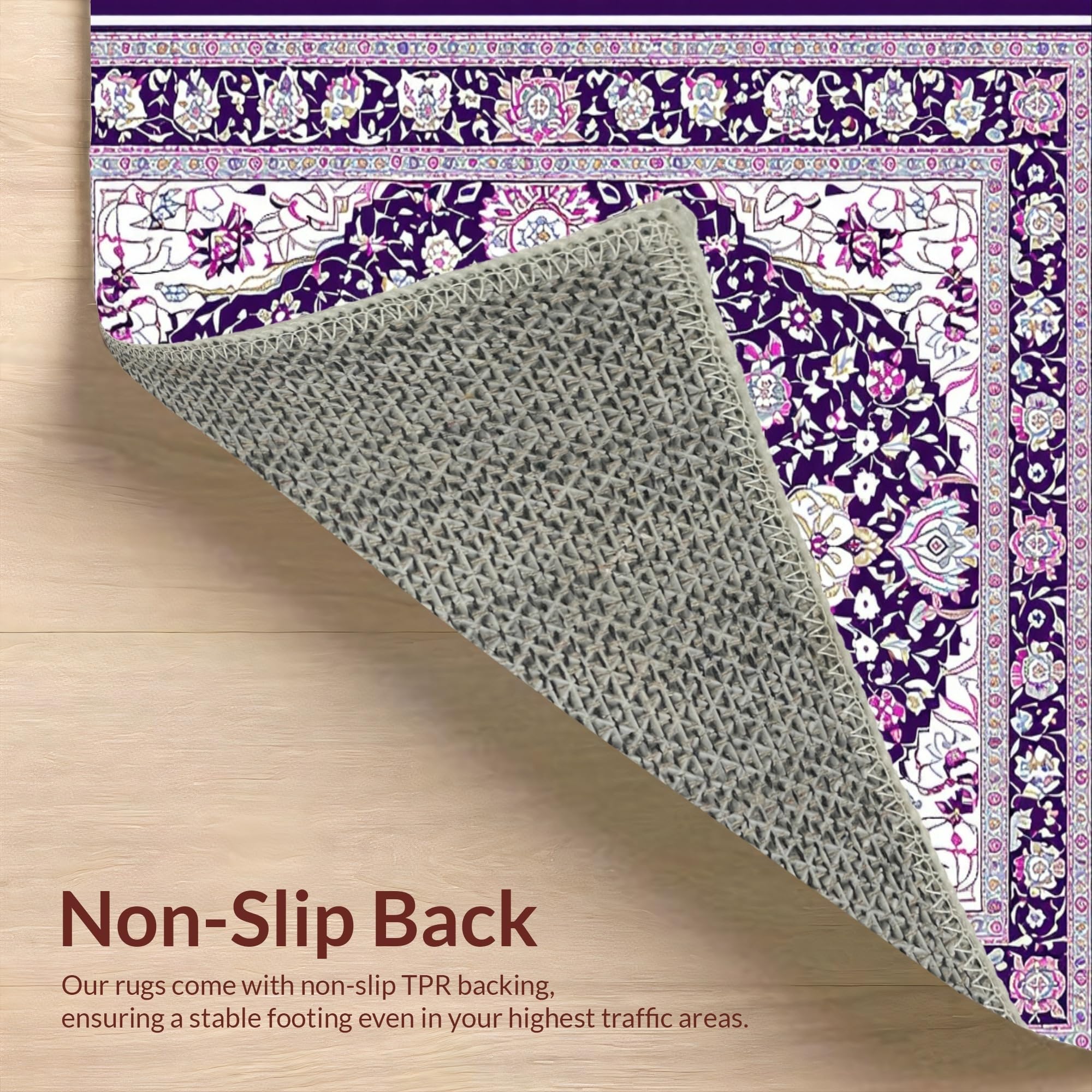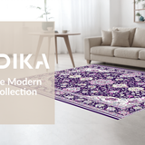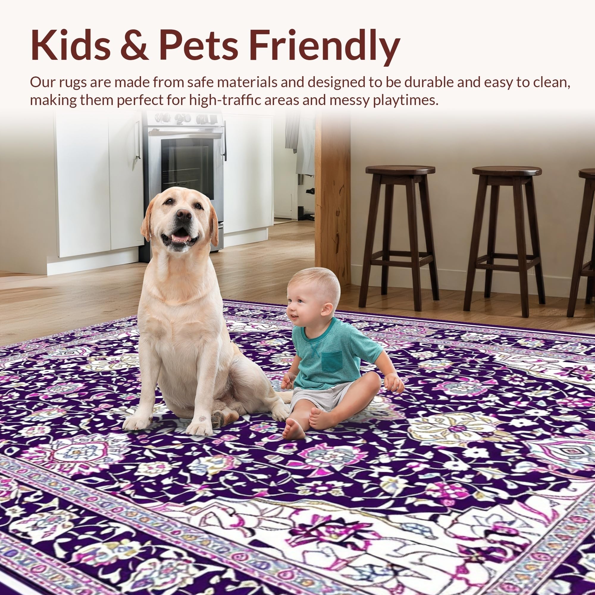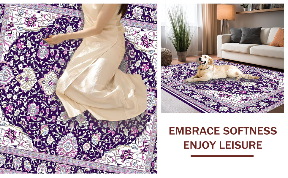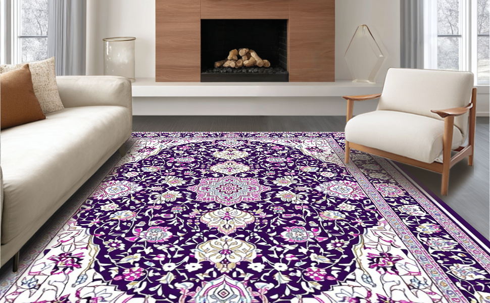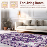 Ultra Soft Area Rug, Non Slip, Stain Resistant, Washable Area Rugs for Living Room, Bedroom, Chic Monochrome Vintage Blossom(Purple) Overview: