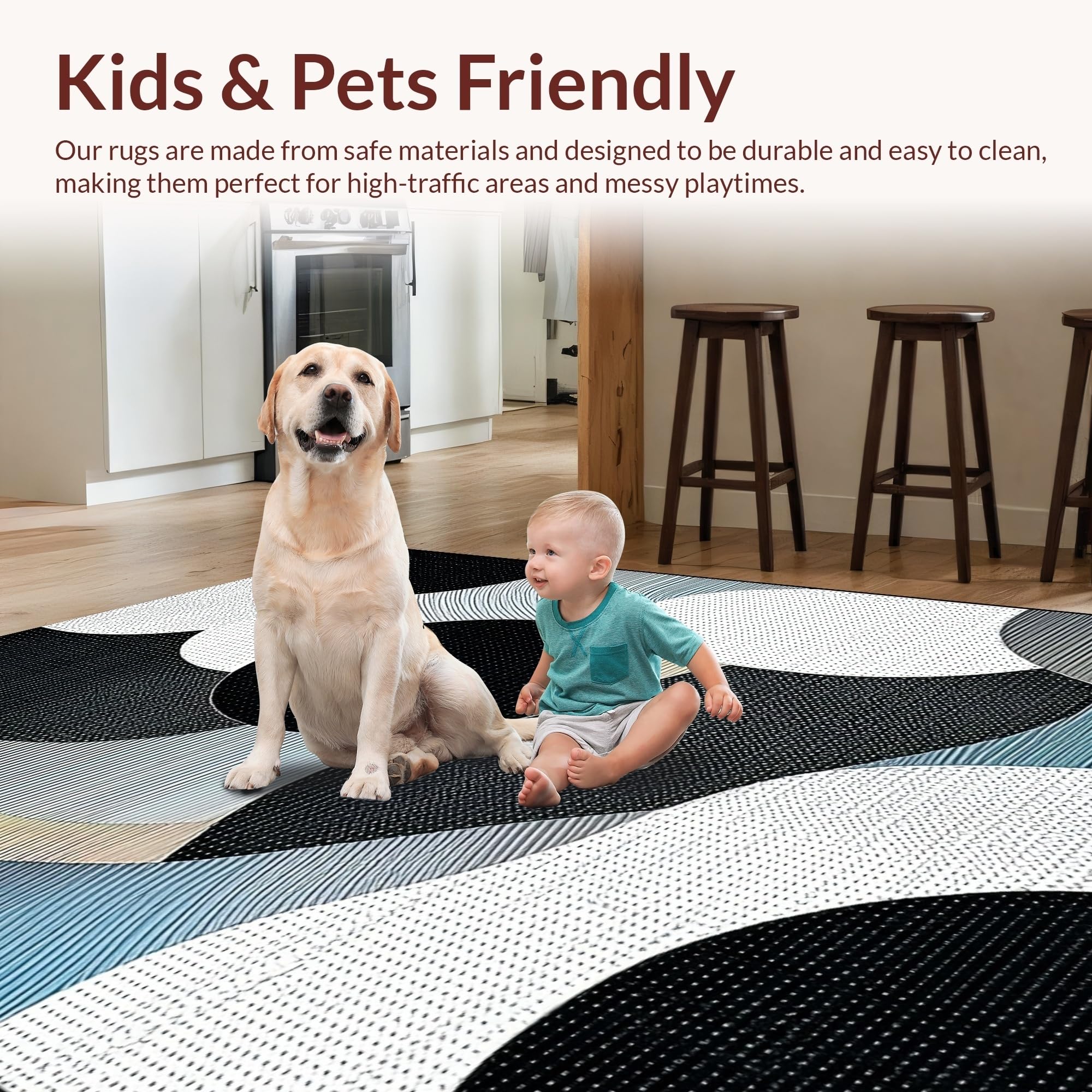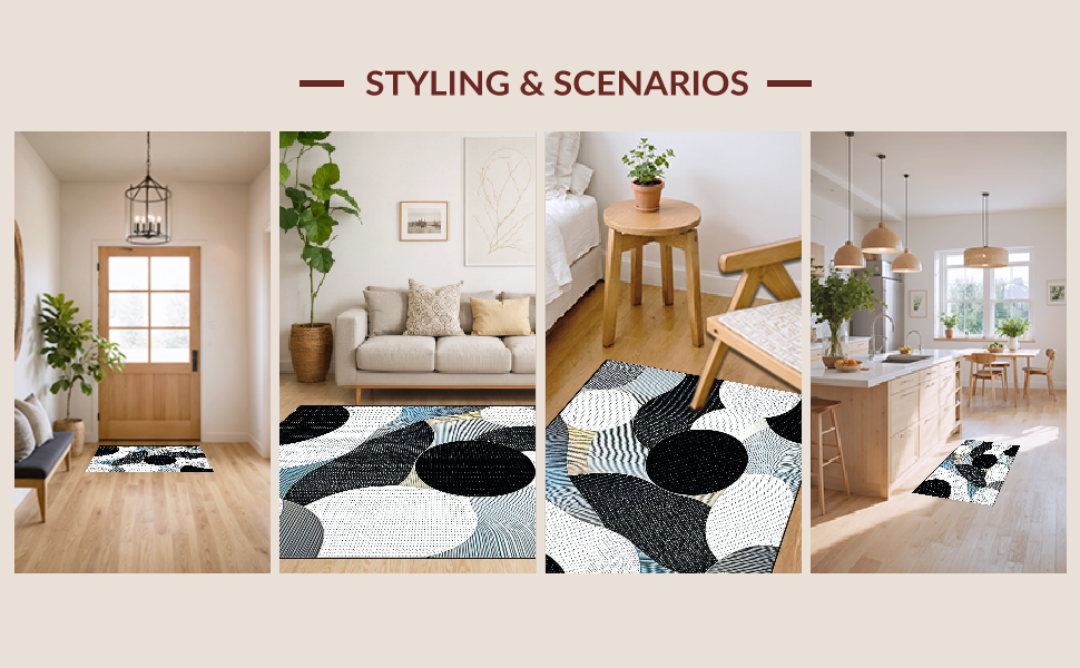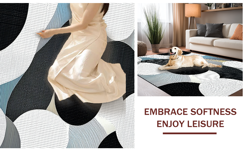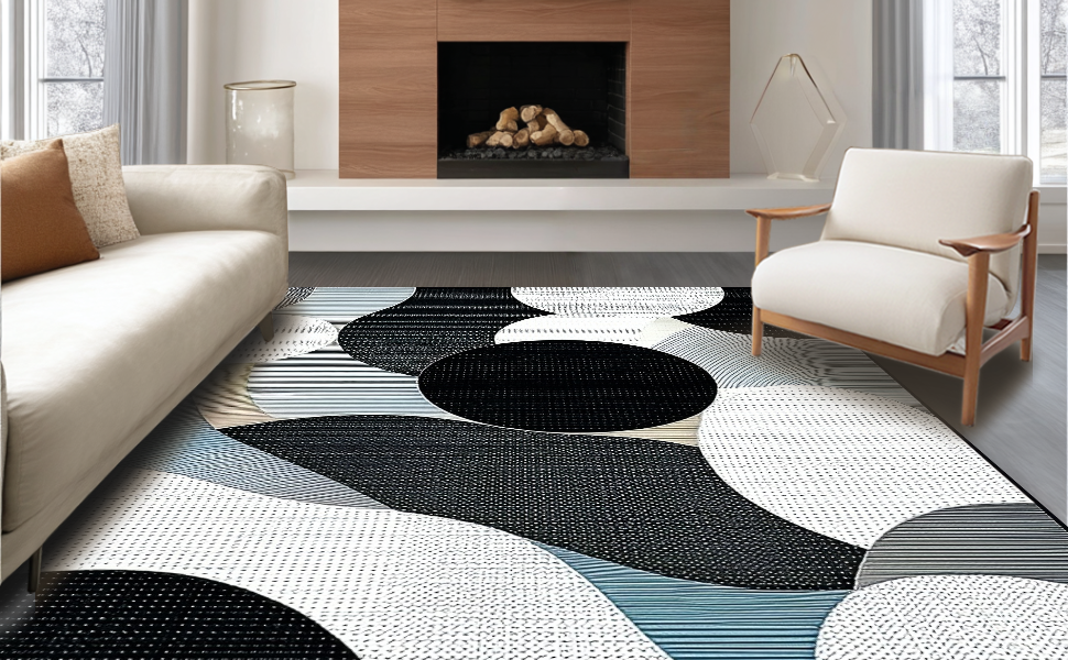 Ultra Soft Area Rug, Non Slip, Stain Resistant, Washable Area Rugs for Living Room, Bedroom, Chic Monochrome Wave Design(Gray) Overview: