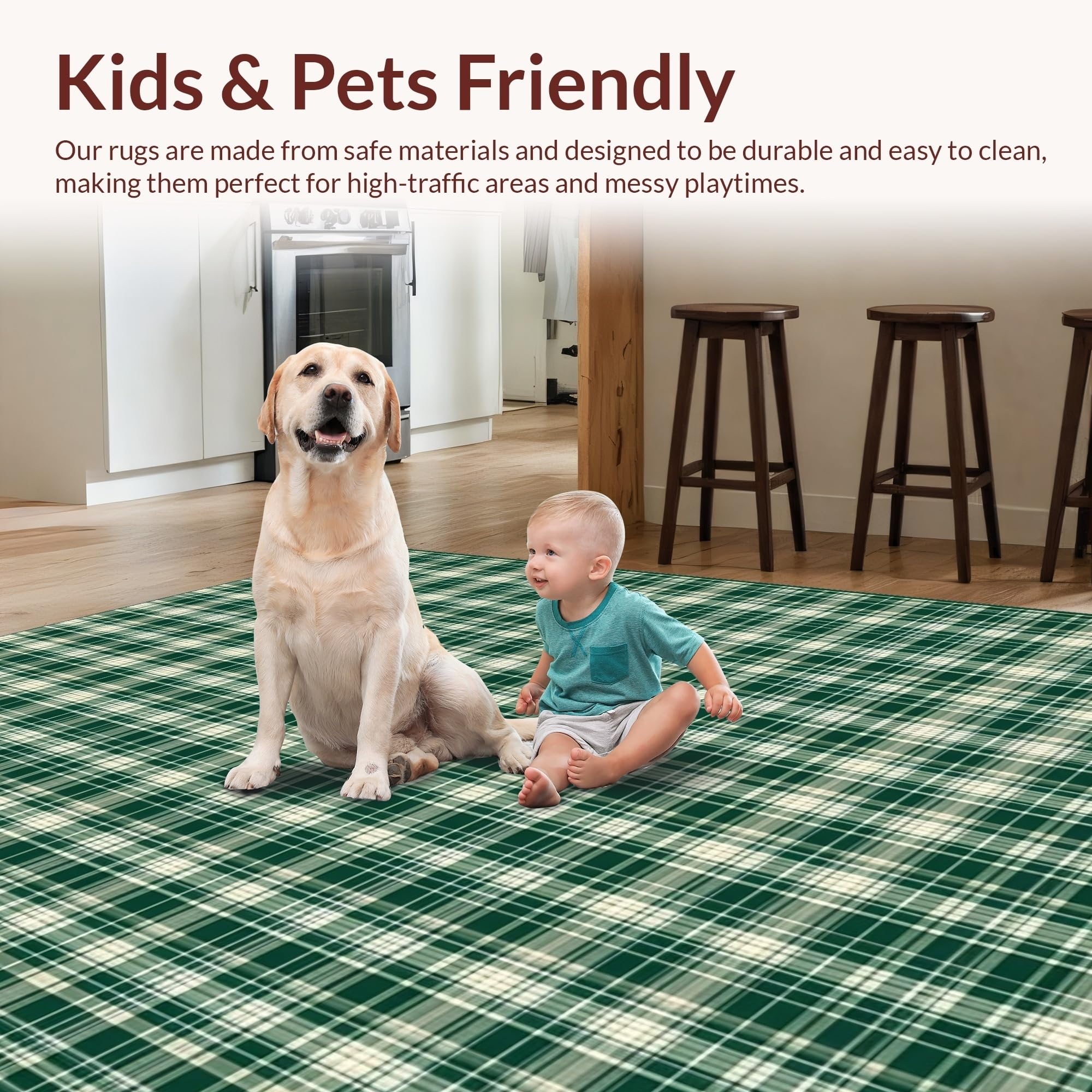 Ultra Soft Area Rug, Non Slip, Stain Resistant, Washable Area Rugs for Living Room, Bedroom, Chic Multi-Colored Textile Harmony(Green) Overview: