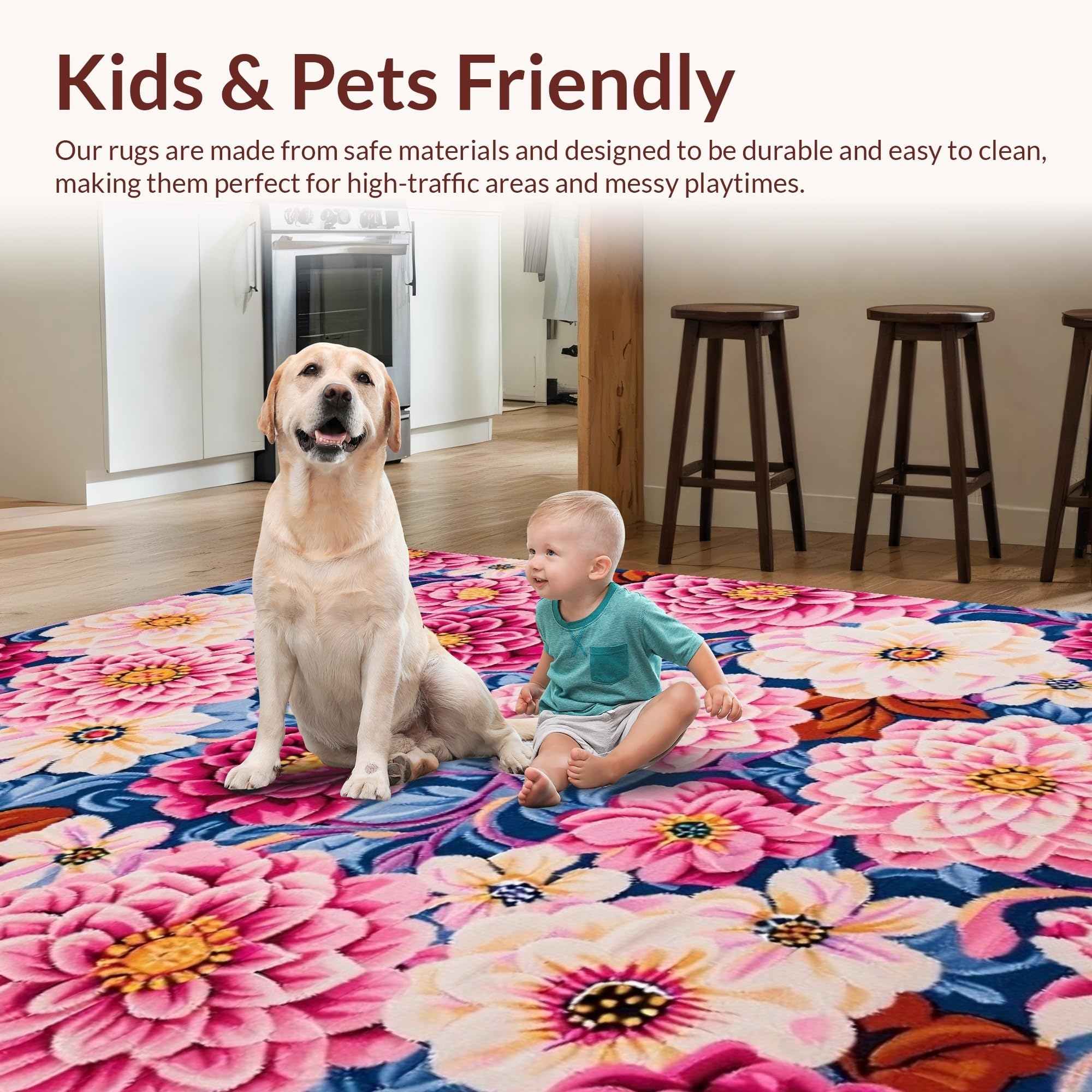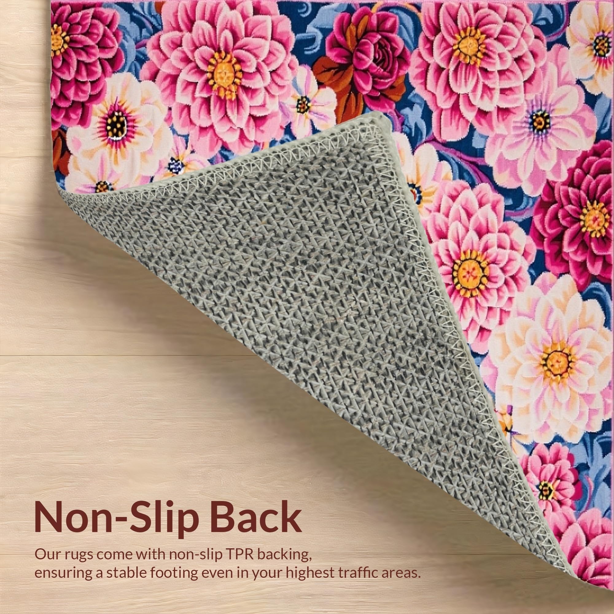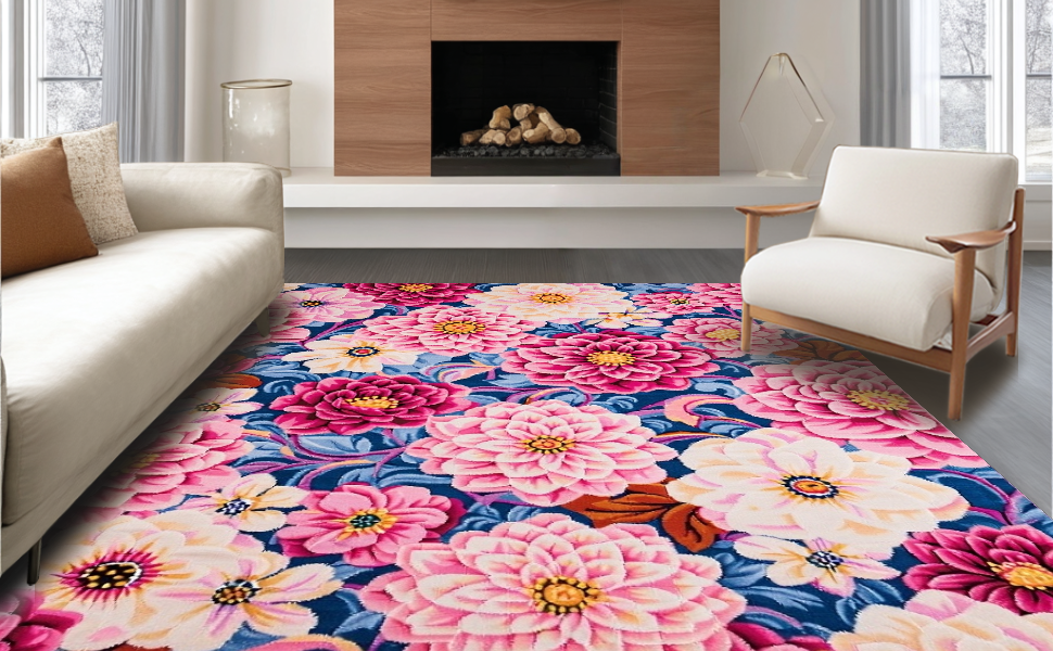 Ultra Soft Area Rug, Non Slip, Stain Resistant, Washable Area Rugs for Living Room, Bedroom, Chic Multihued Floral Composition(Blue) Overview: