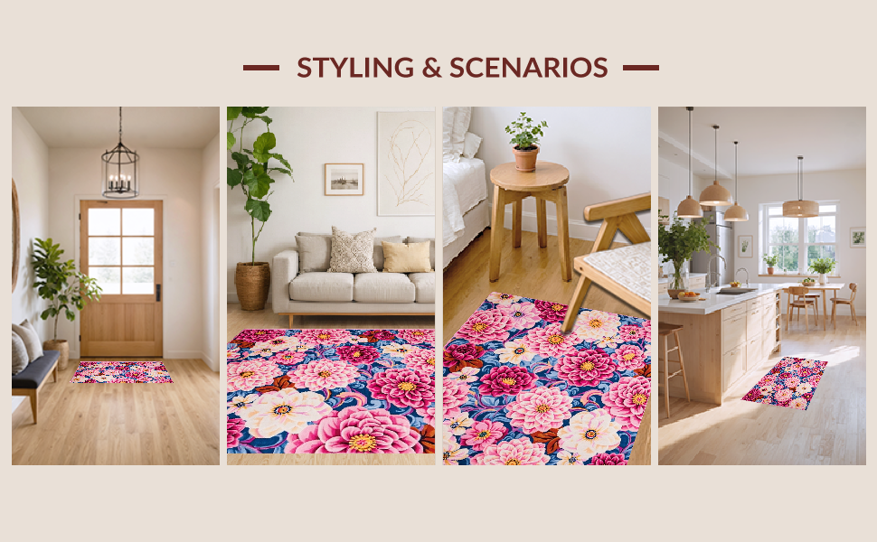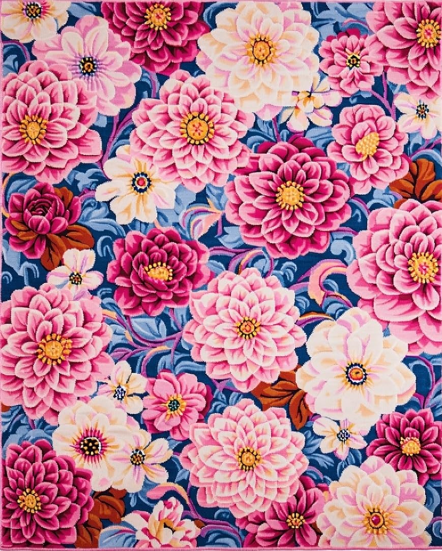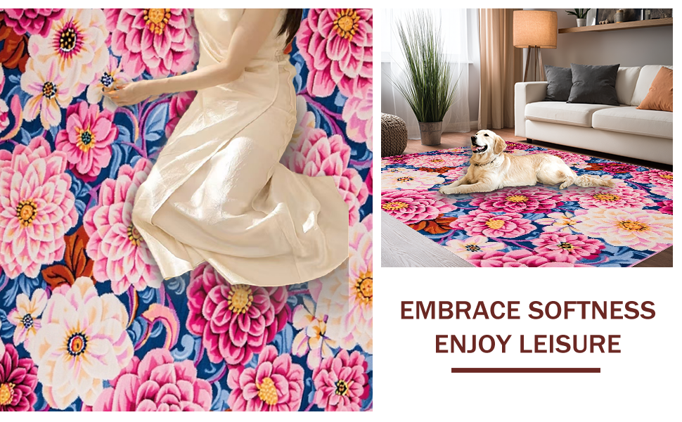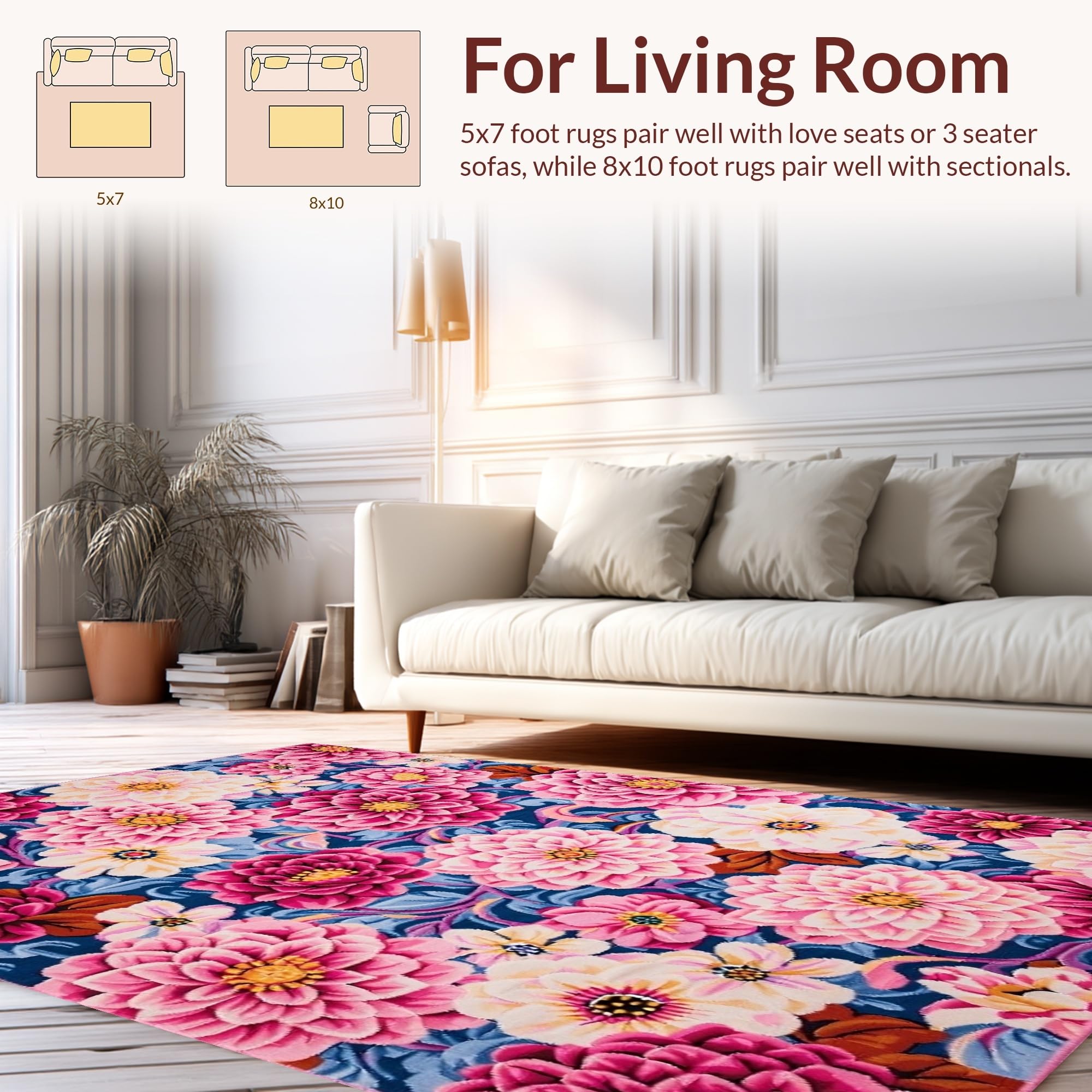 Ultra Soft Area Rug, Non Slip, Stain Resistant, Washable Area Rugs for Living Room, Bedroom, Chic Multihued Floral Composition(Blue) Overview: