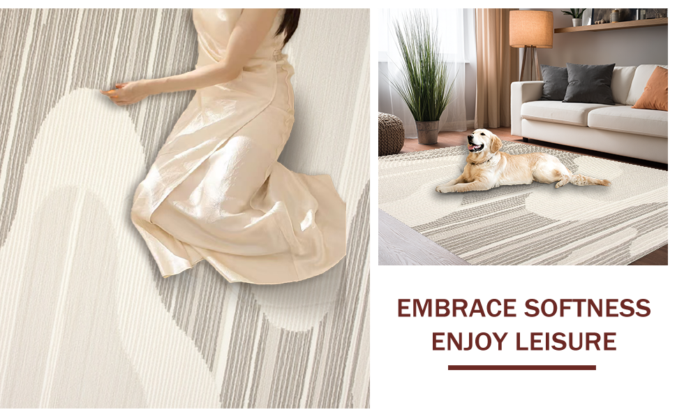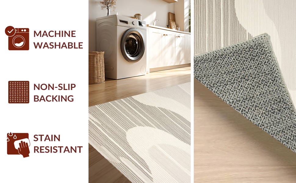 Ultra Soft Area Rug, Non Slip, Stain Resistant, Washable Area Rugs for Living Room, Bedroom, Chic Neutral Geometric Design(Beige) Overview: