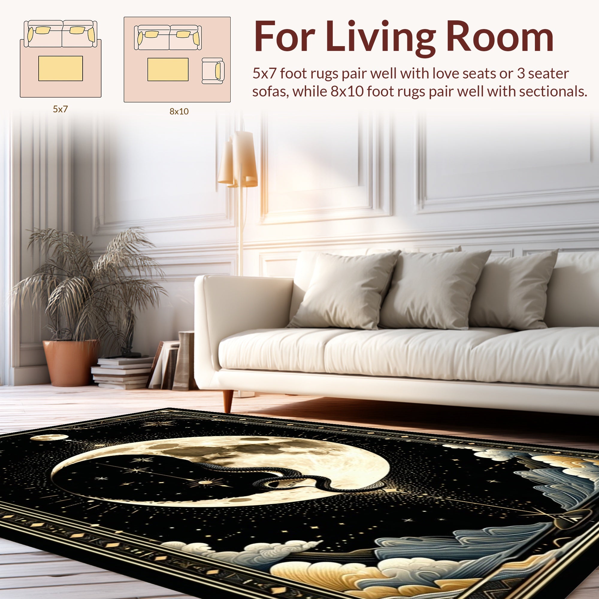 Flatwoven High Traffic Area Rug, Chic Occult Inspired Floor, Non Slip, Stain Resistant, Washable Area Rugs for Living Room, Bedroom (Black) Overview: