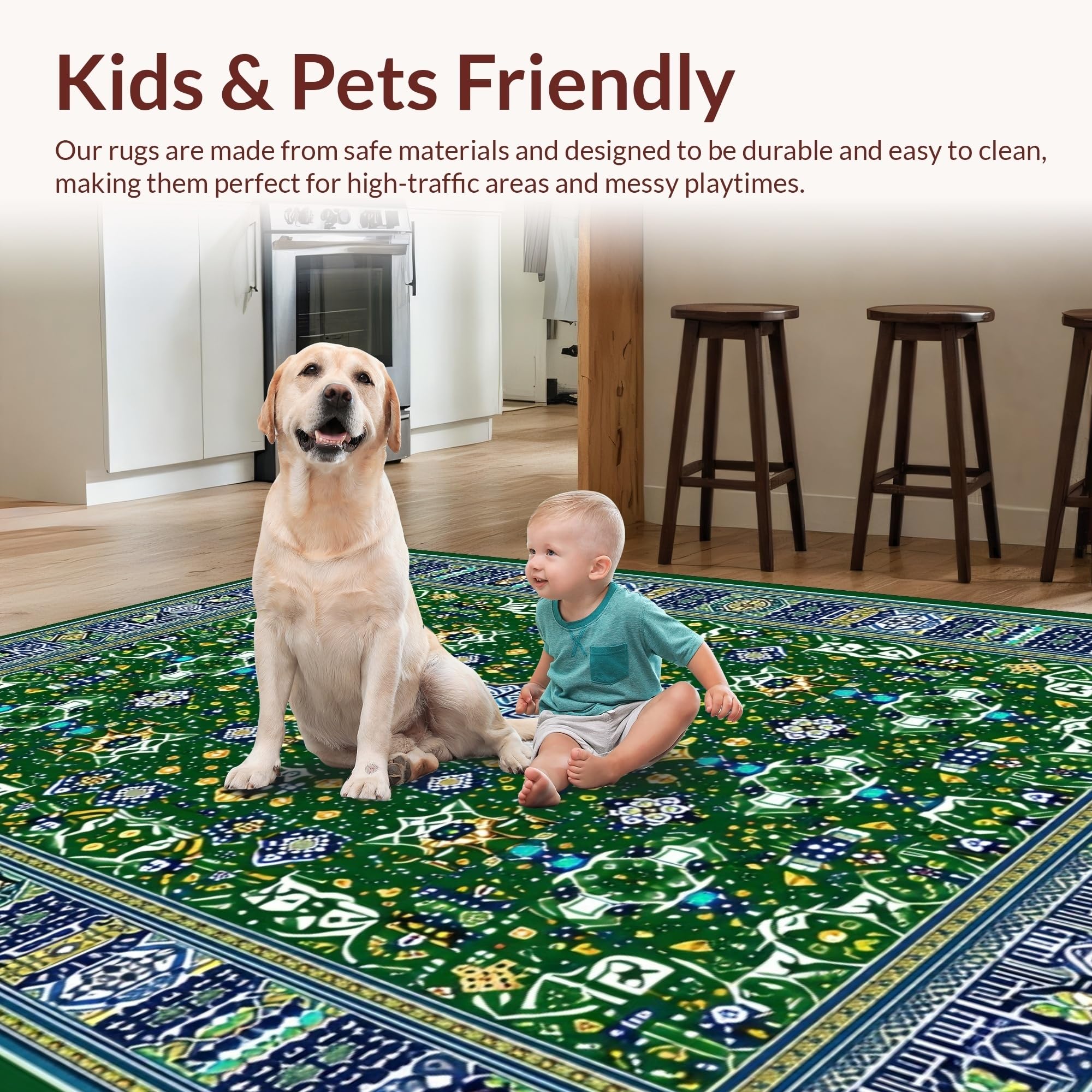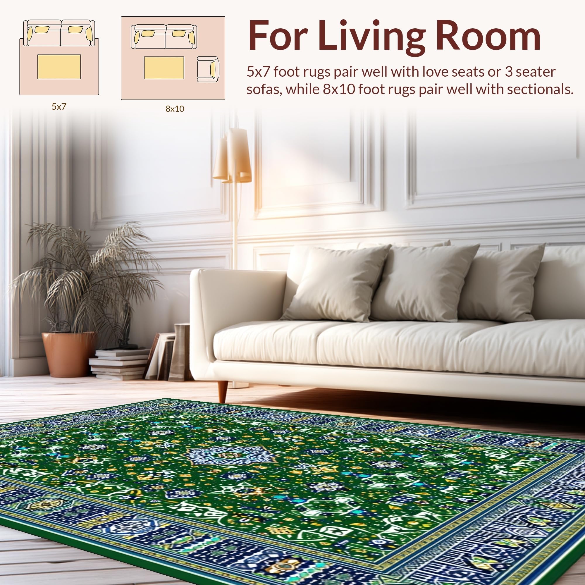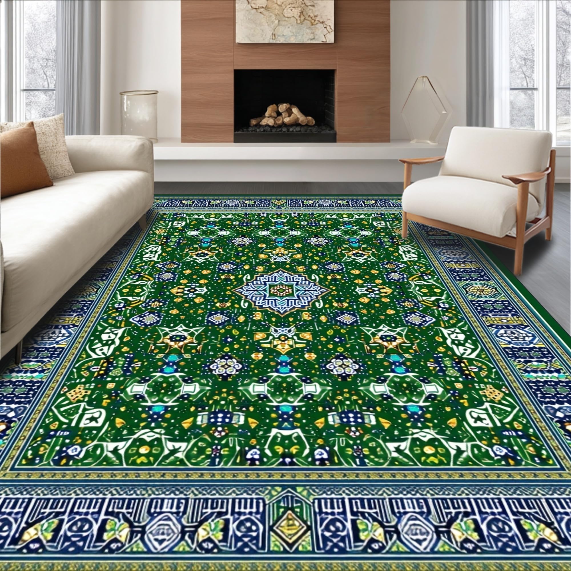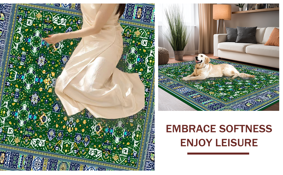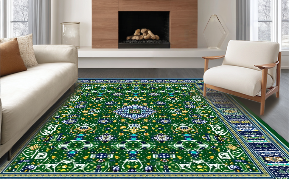 Ultra Soft Area Rug, Non Slip, Stain Resistant, Washable Area Rugs for Living Room, Bedroom, Chic Ogee Floral Arrangement(Green) Overview: