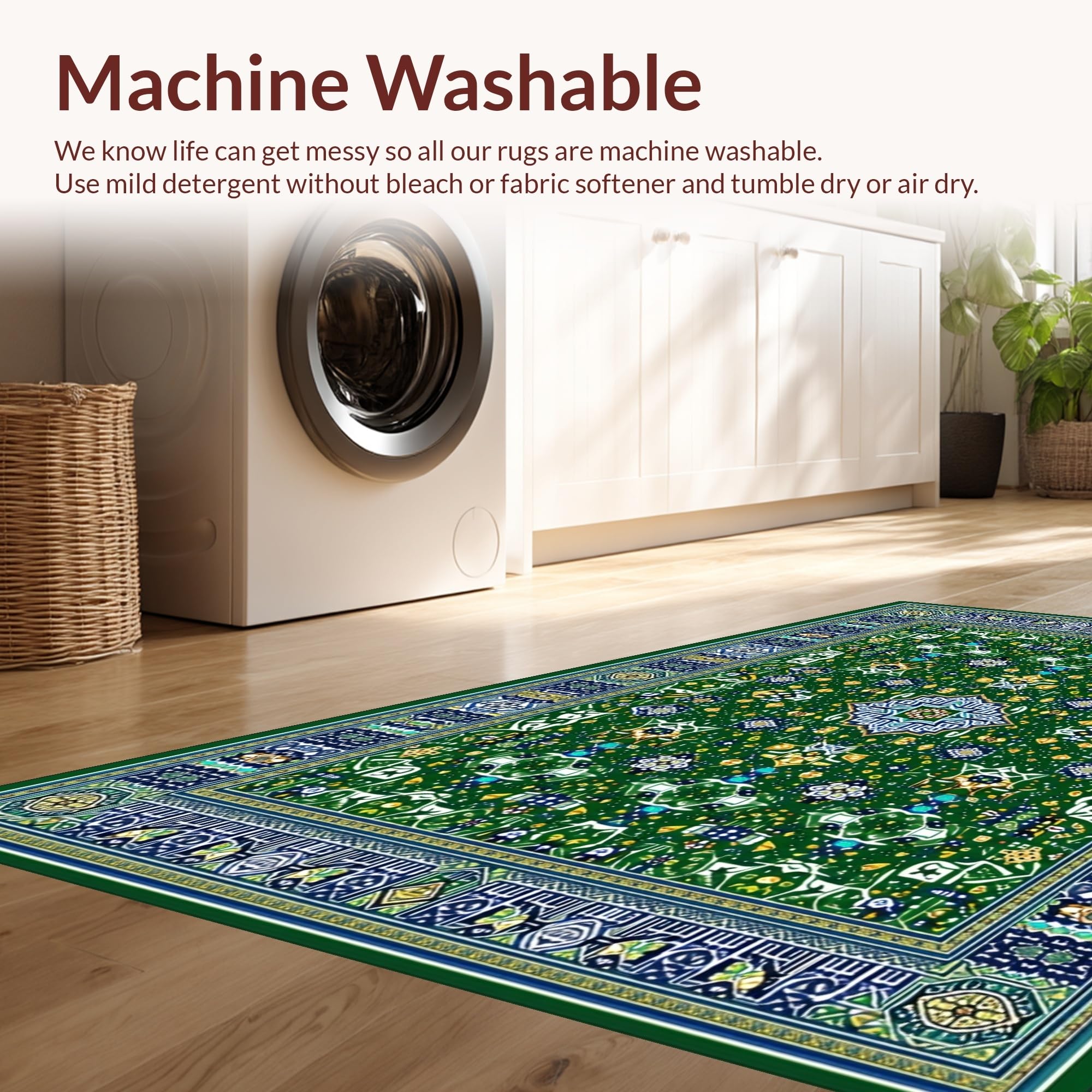 - Machine Washable: Our rugs can be easily thrown in the wash machine.