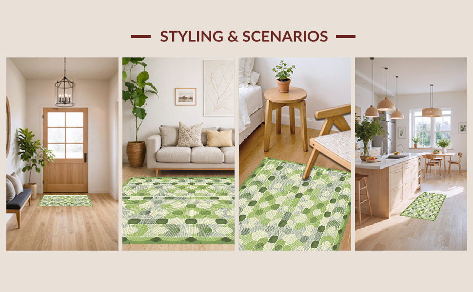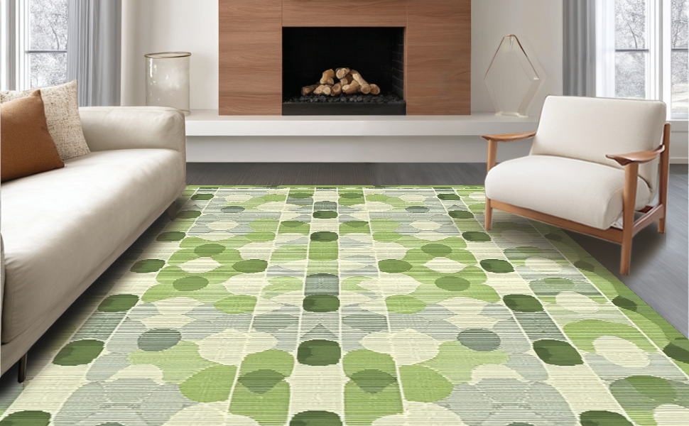 Ultra Soft Area Rug, Non Slip, Stain Resistant, Washable Area Rugs for Living Room, Bedroom, Chic Pastel Scalloped Elegance(Green) Overview: