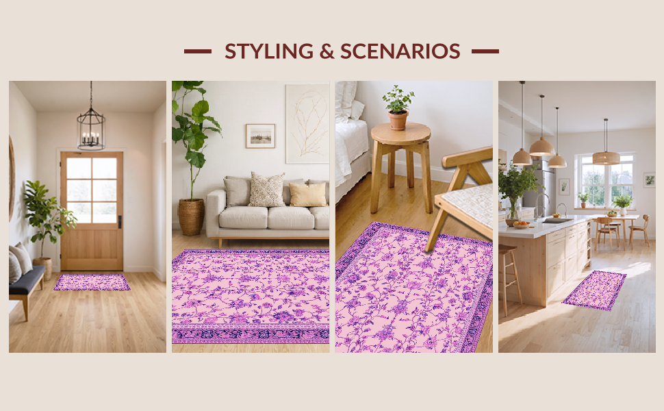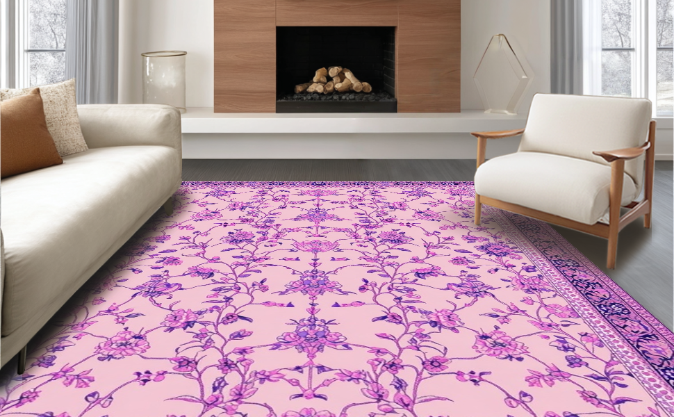 Ultra Soft Area Rug, Non Slip, Stain Resistant, Washable Area Rugs for Living Room, Bedroom, Chic Pink Dreamscape Pattern(Pink) Overview: