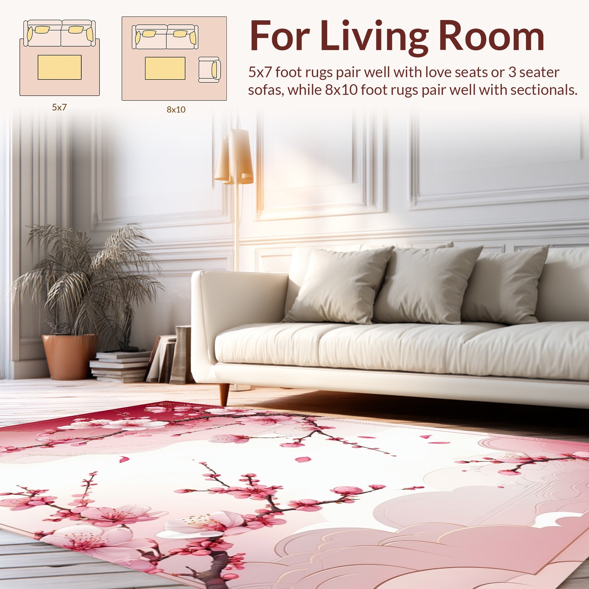 Flatwoven High Traffic Area Rug, Chic Pink Ombre Floral Arrangement, Non Slip, Stain Resistant, Washable Area Rugs for Living Room, Bedroom (Pink) Overview: