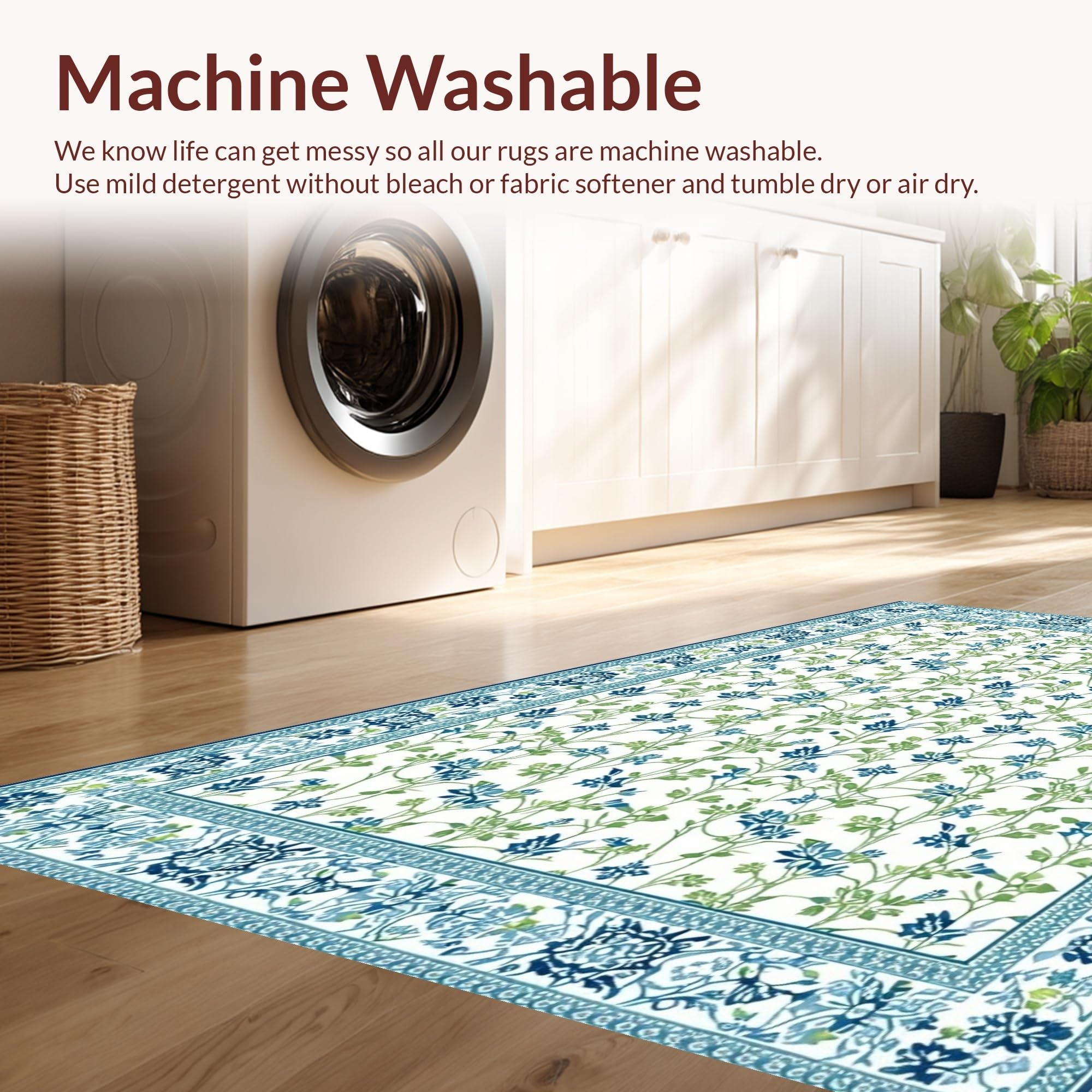 - Machine Washable: Our rugs can be easily thrown in the wash machine.