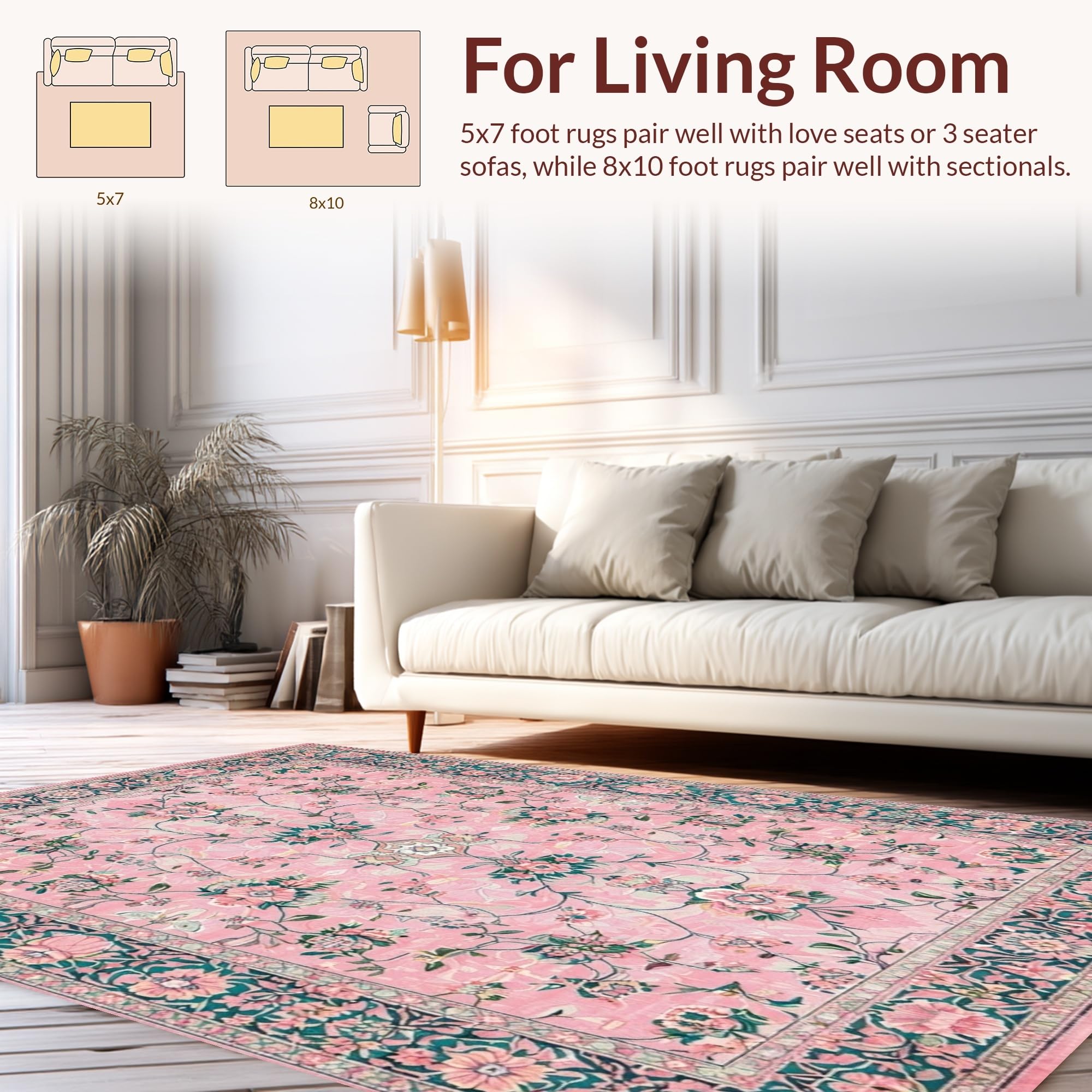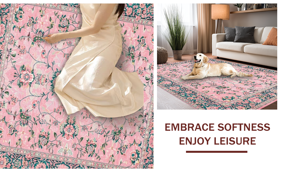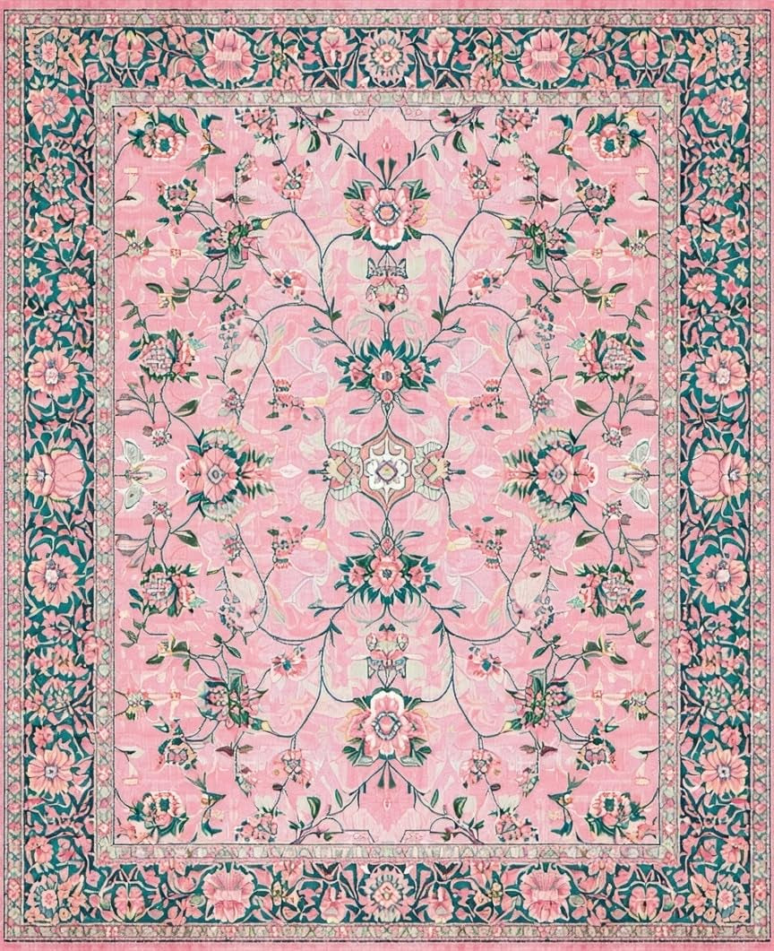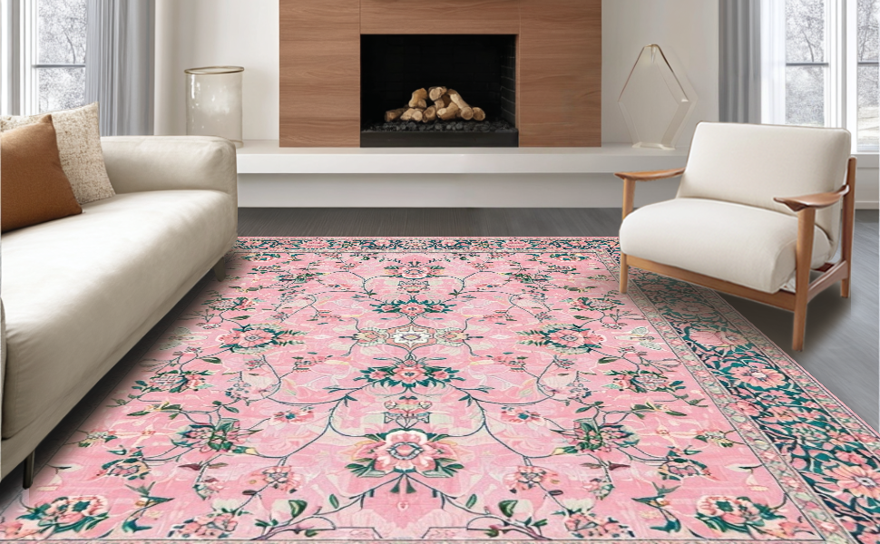 Ultra Soft Area Rug, Non Slip, Stain Resistant, Washable Area Rugs for Living Room, Bedroom, Chic Retro Blossom Arrangement(Pink) Overview: