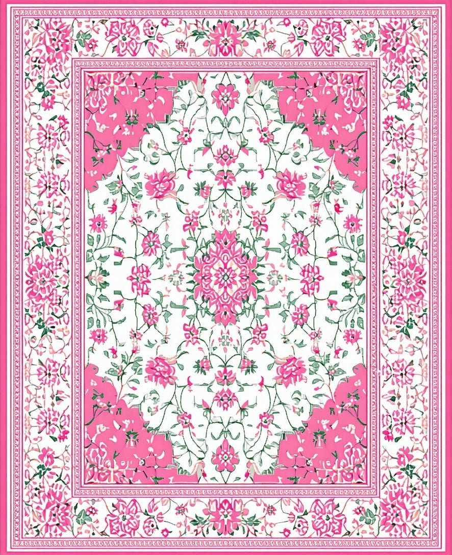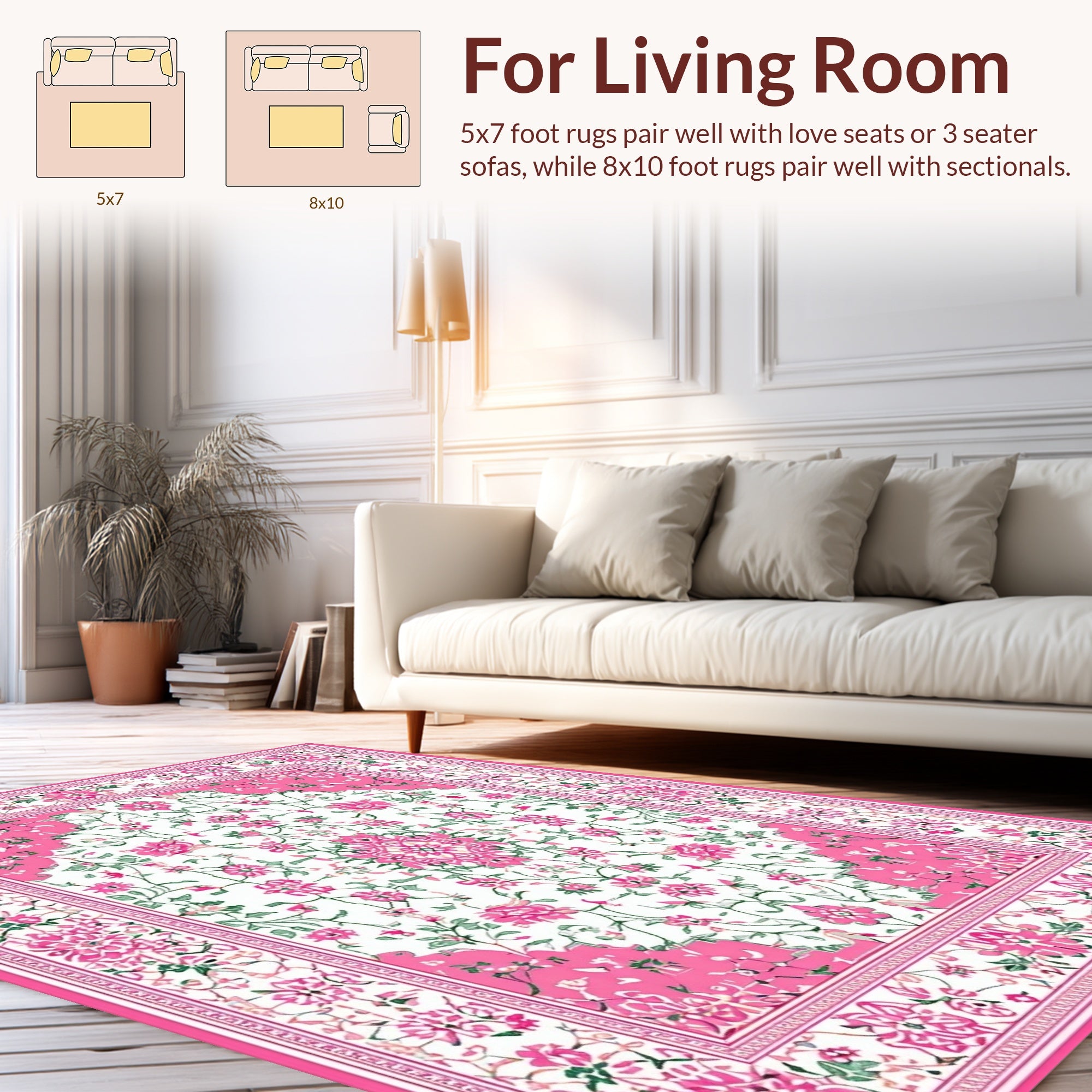 Flatwoven High Traffic Area Rug, Chic Retro Botanical Motif, Non Slip, Stain Resistant, Washable Area Rugs for Living Room, Bedroom (Pink) Overview: