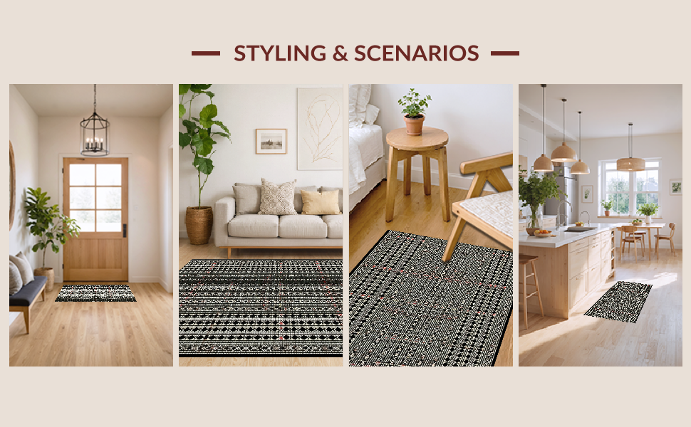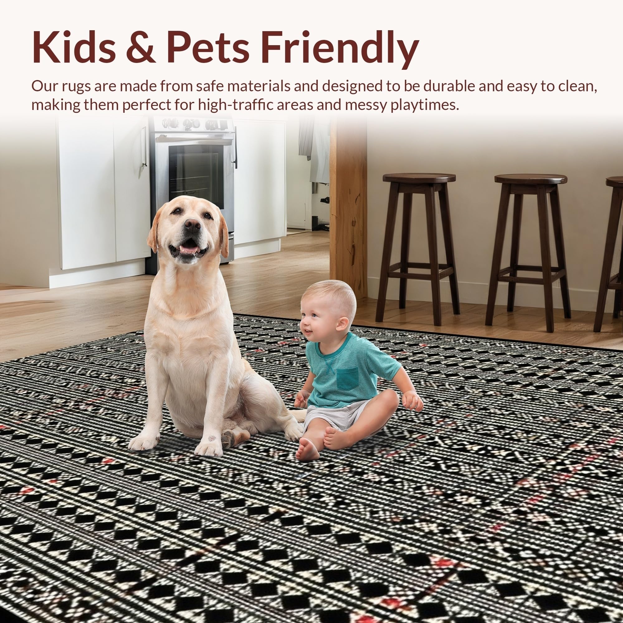 Ultra Soft Area Rug, Non Slip, Stain Resistant, Washable Area Rugs for Living Room, Bedroom, Chic Retro Diamond Pattern Accent(Black) Overview: