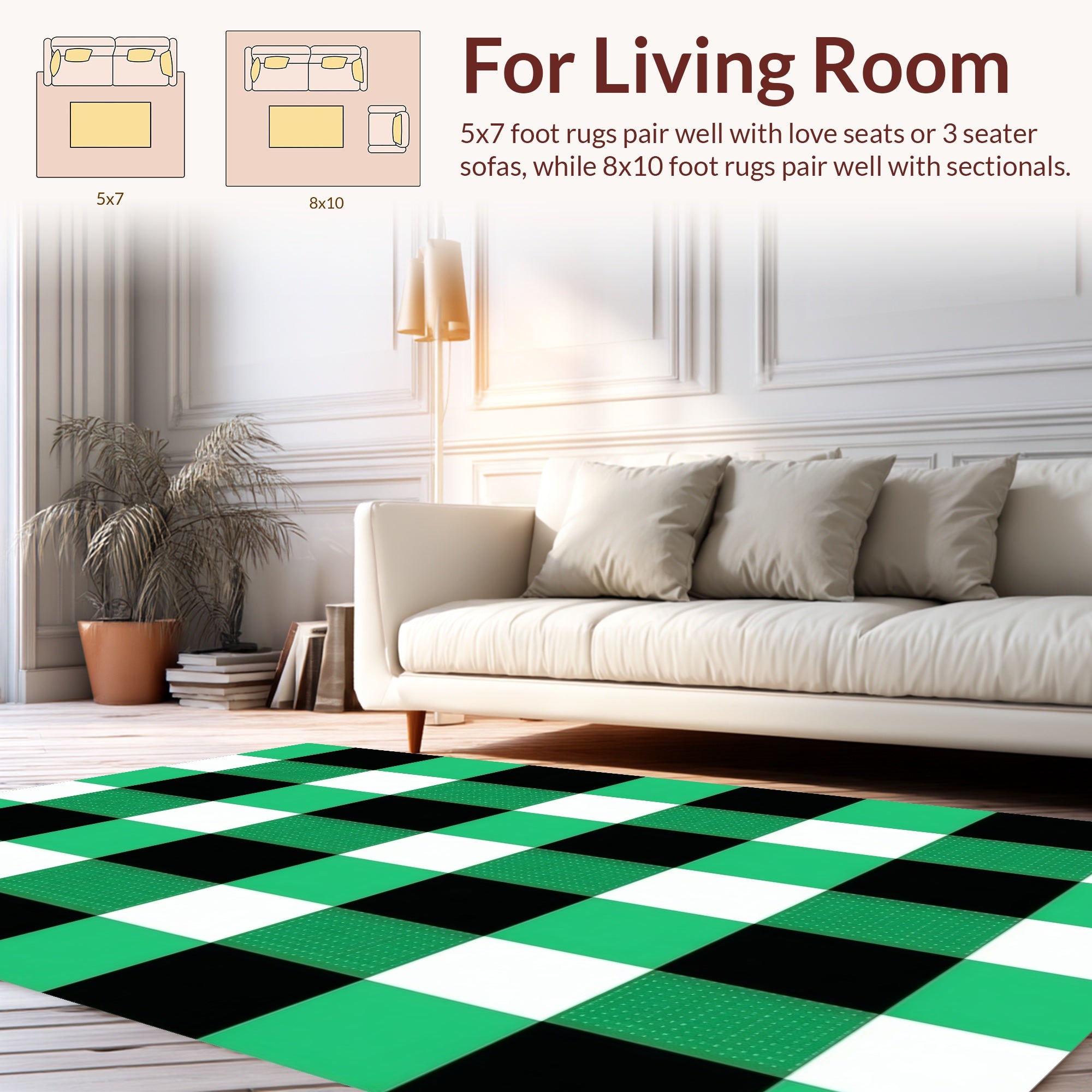 Flatwoven High Traffic Area Rug, Chic Rustic Checkered Aesthetic, Non Slip, Stain Resistant, Washable Area Rugs for Living Room, Bedroom (Green) Overview: