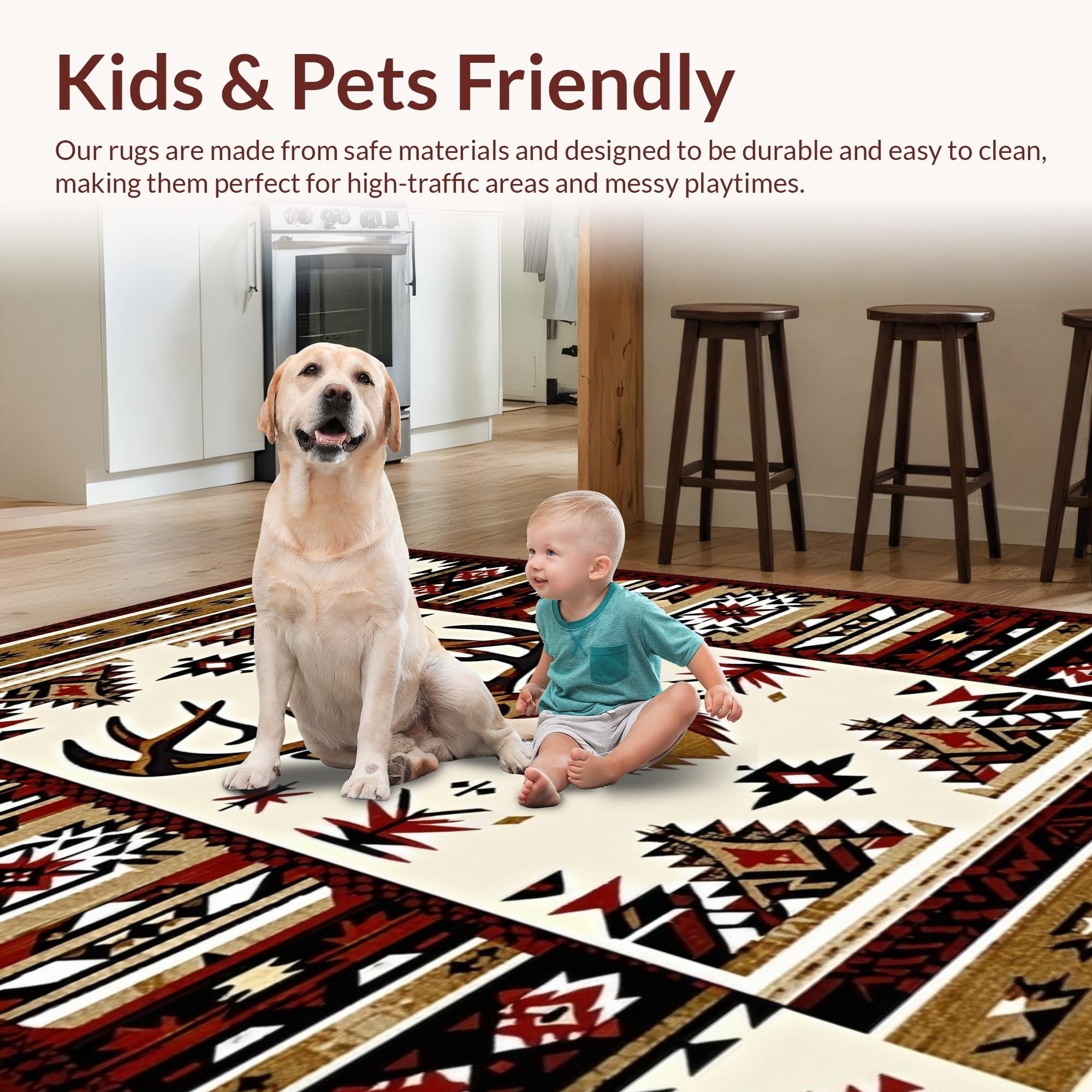 Ultra Soft Area Rug, Non Slip, Stain Resistant, Washable Area Rugs for Living Room, Bedroom, Chic Rustic Nature Inspired Textile(Beige) Overview: