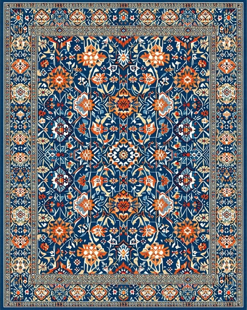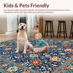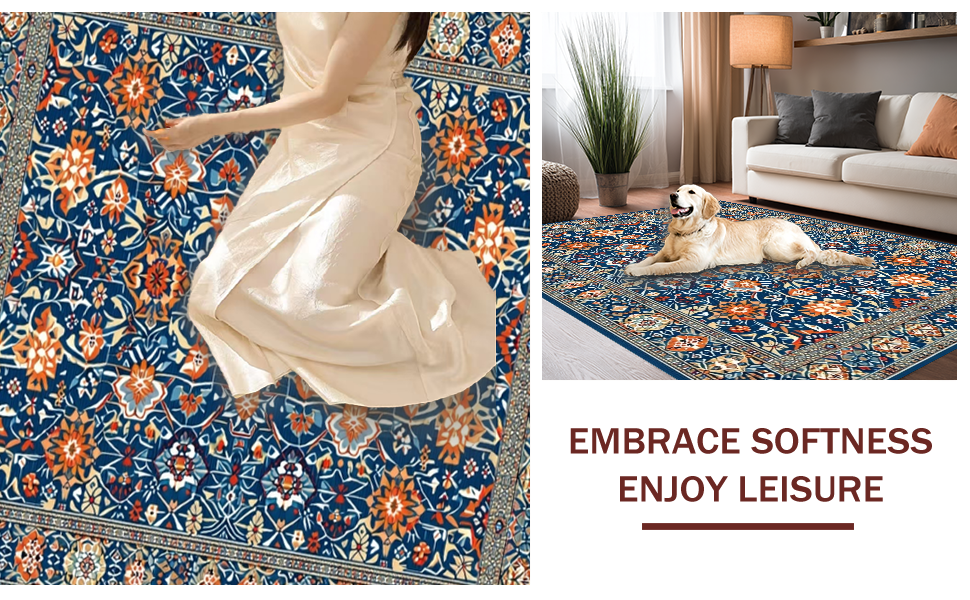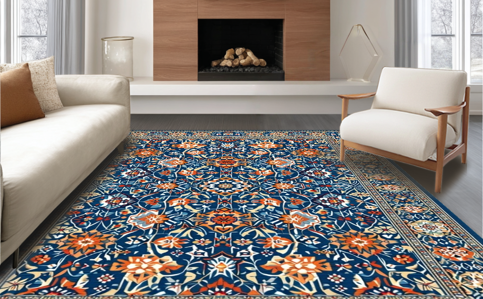 Ultra Soft Area Rug, Non Slip, Stain Resistant, Washable Area Rugs for Living Room, Bedroom, Chic Rustic Ogee Patterning(Blue) Overview: