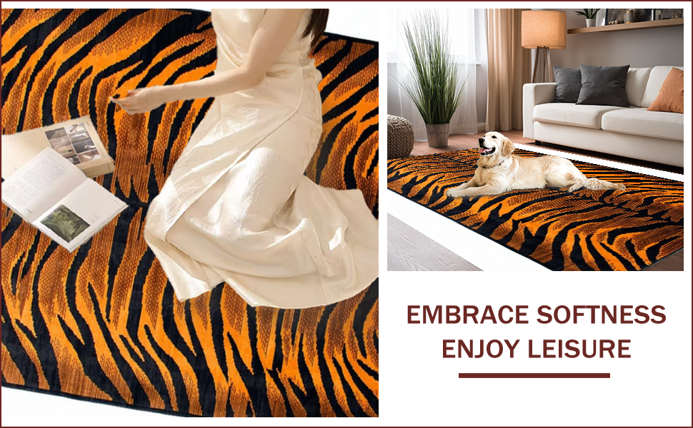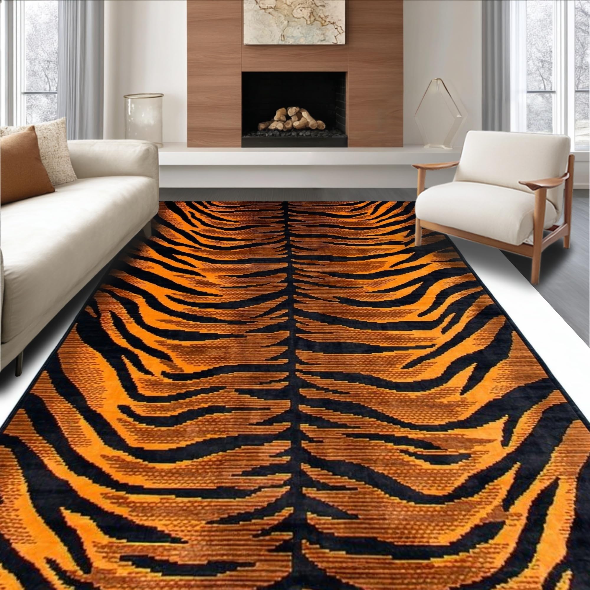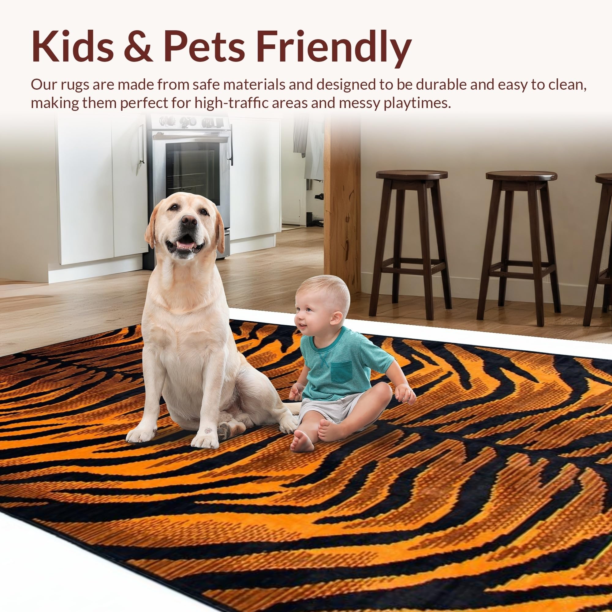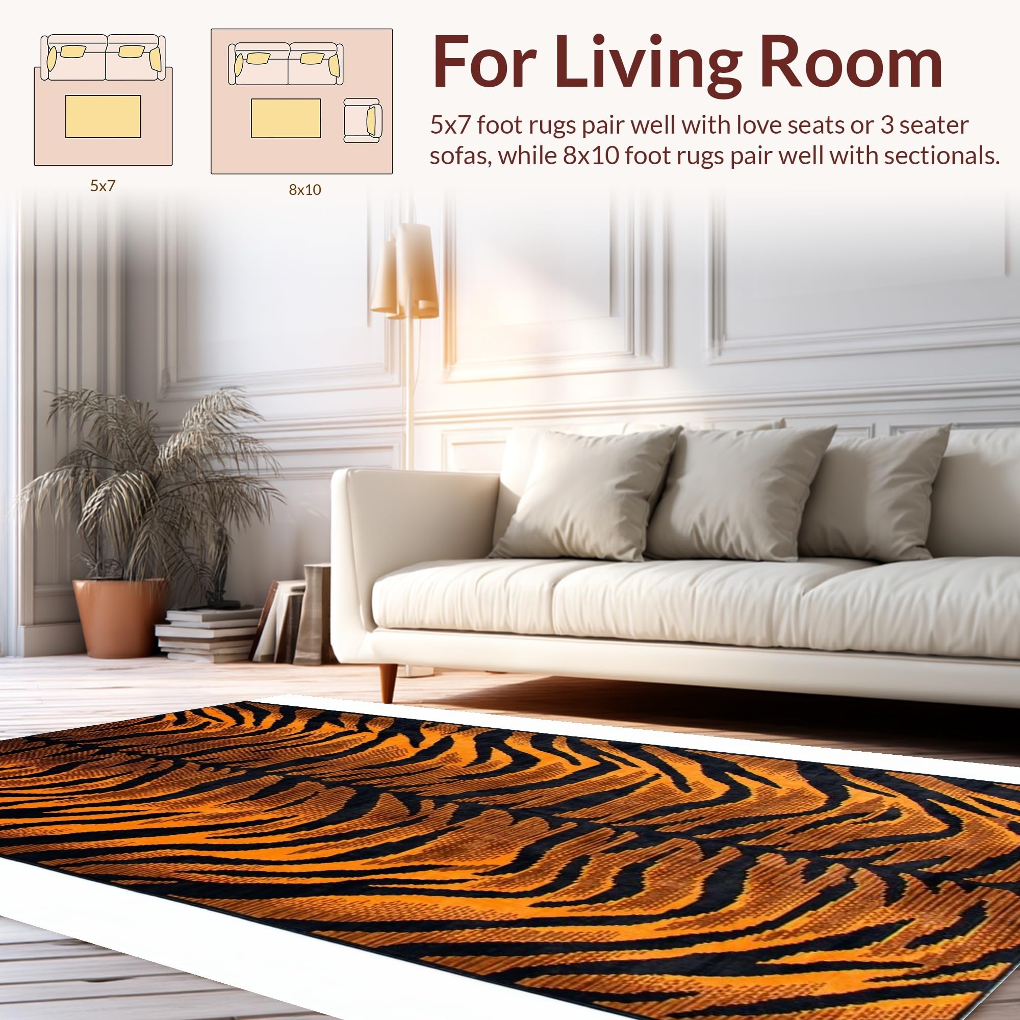 Ultra Soft Area Rug, Non Slip, Stain Resistant, Washable Area Rugs for Living Room, Bedroom, Chic Rustic Tiger Motif Elegance(Black) Overview: