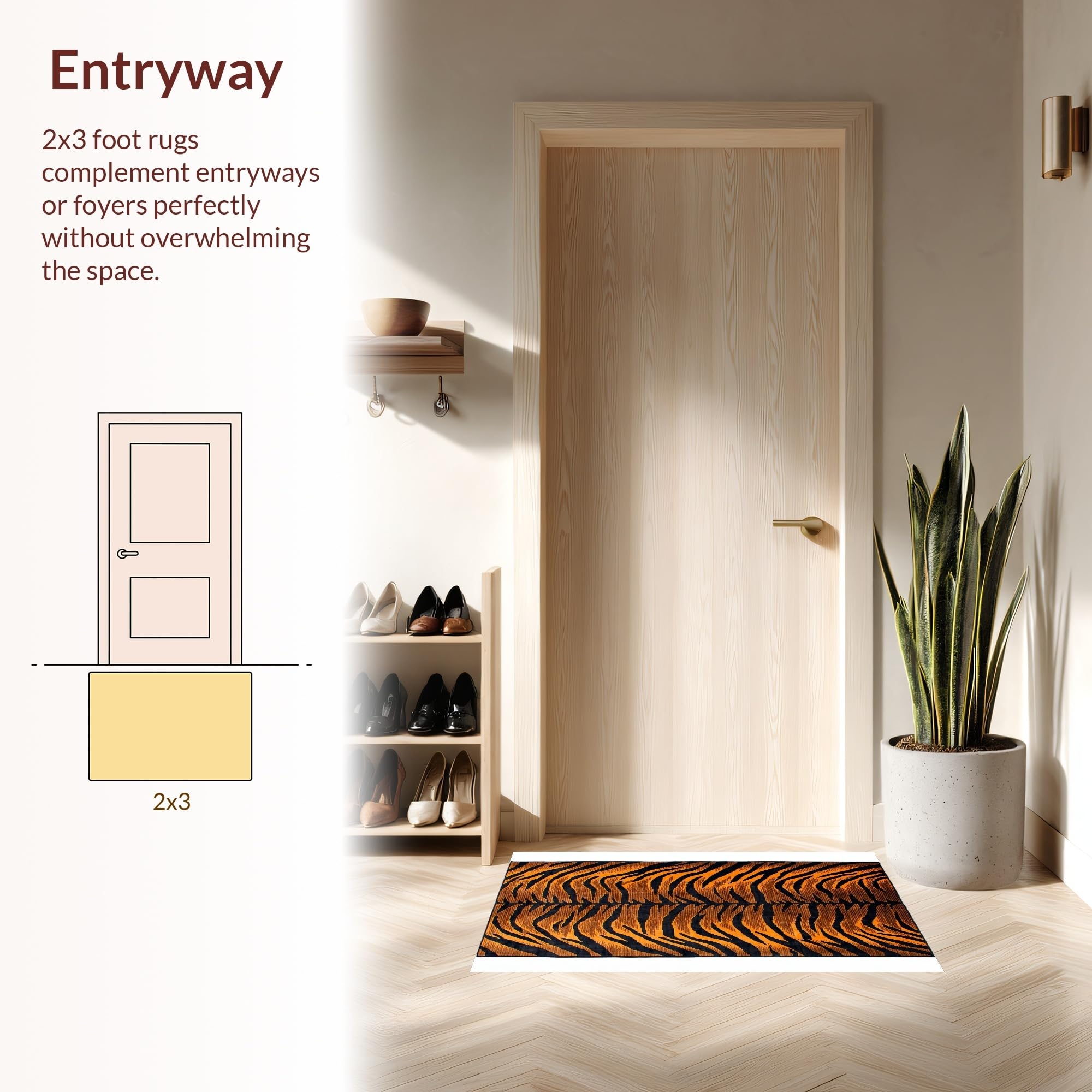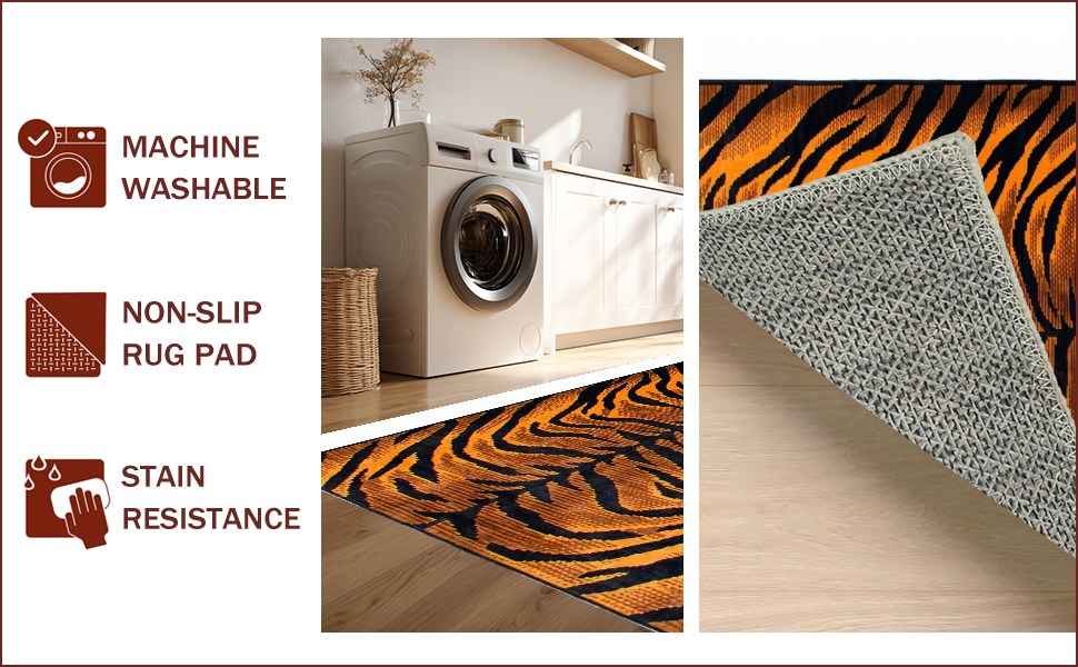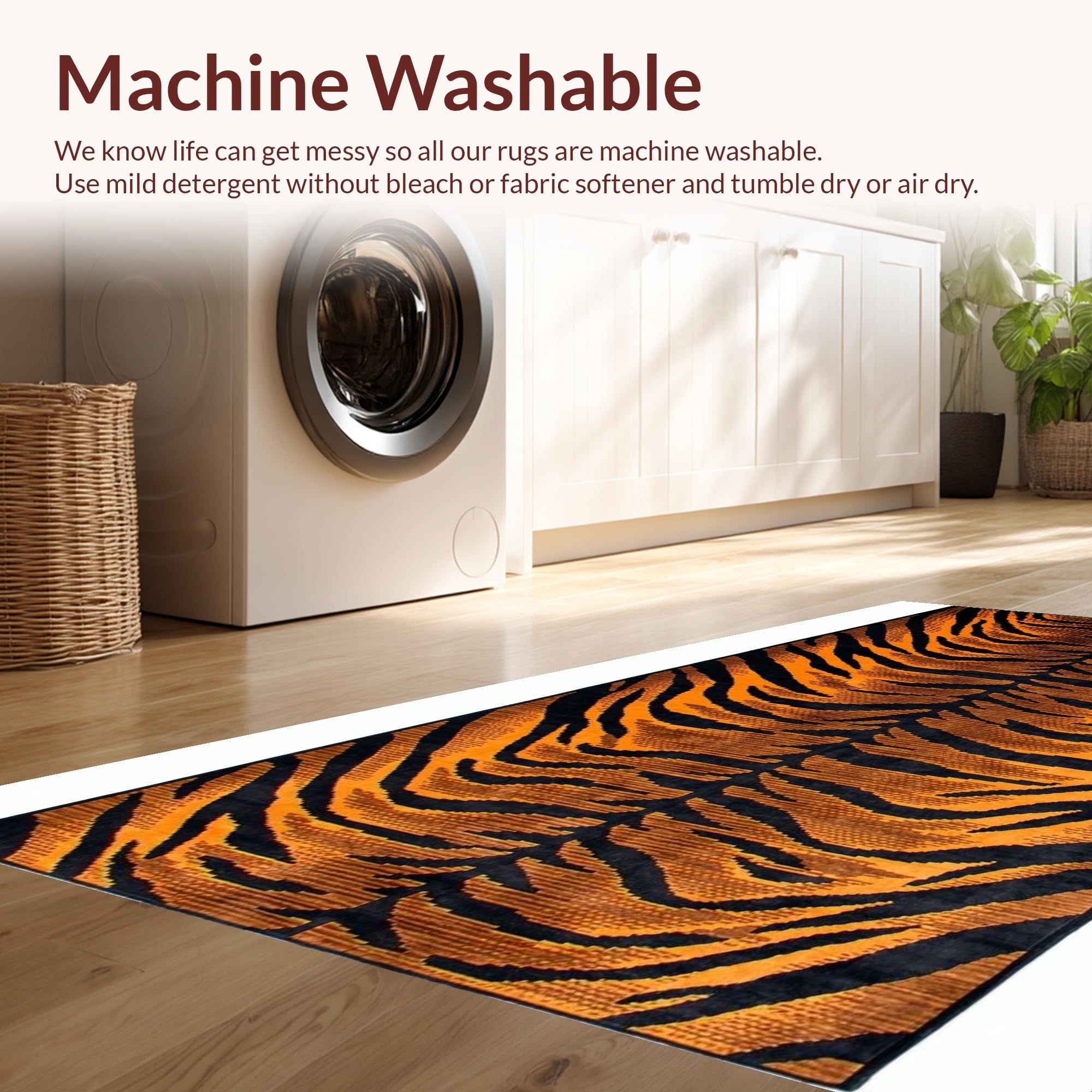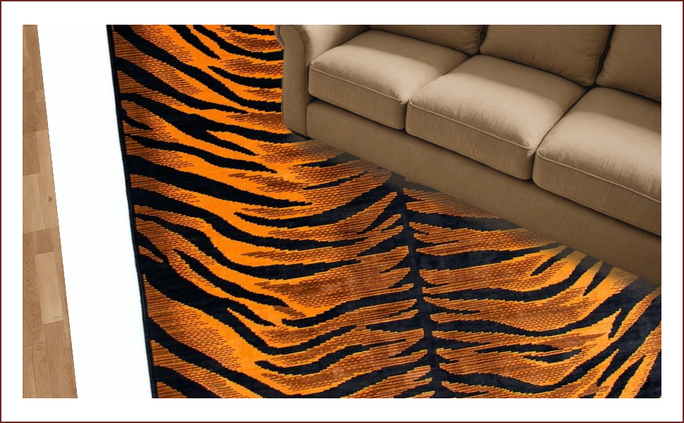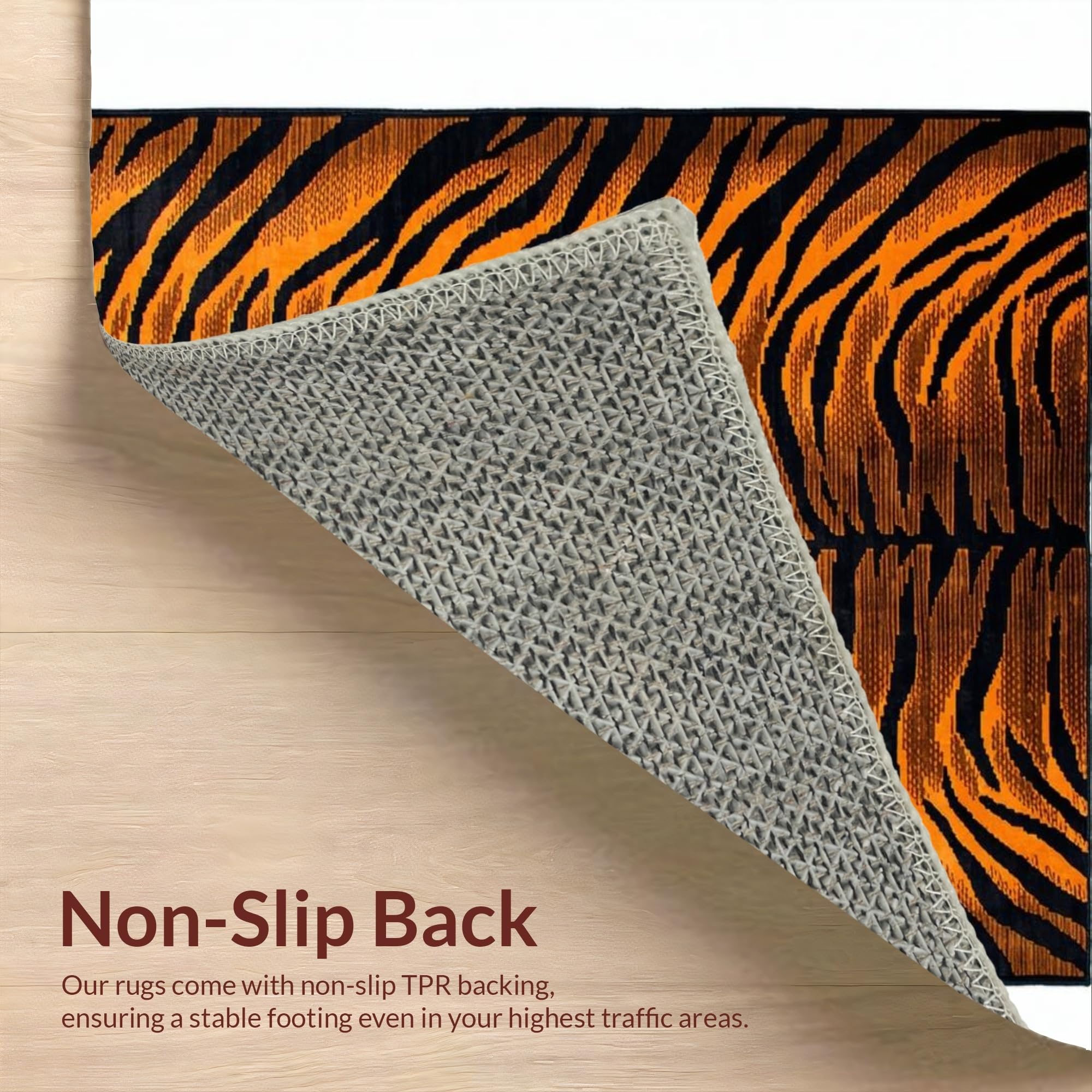 Ultra Soft Area Rug, Non Slip, Stain Resistant, Washable Area Rugs for Living Room, Bedroom, Chic Rustic Tiger Motif Elegance(Black) Overview:
