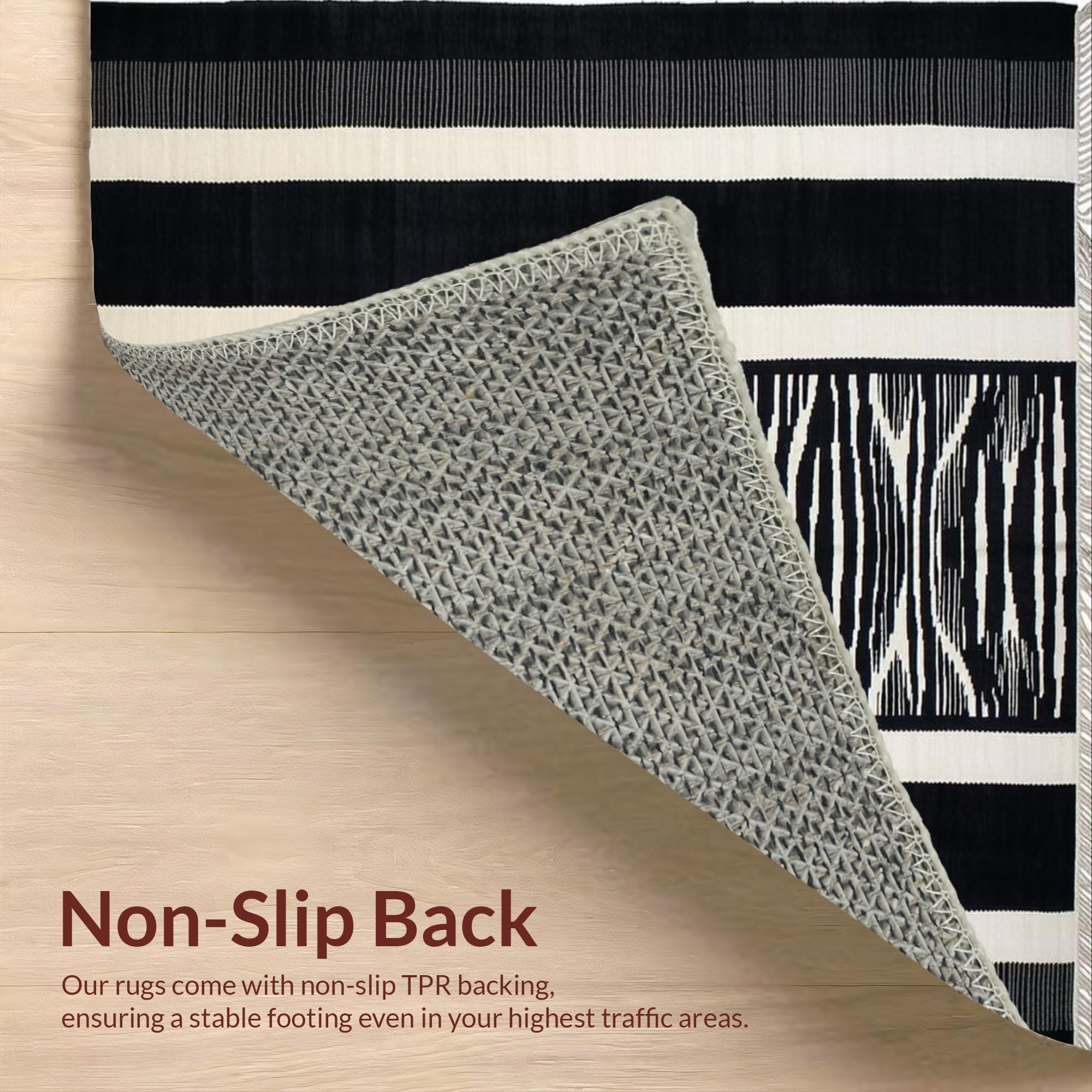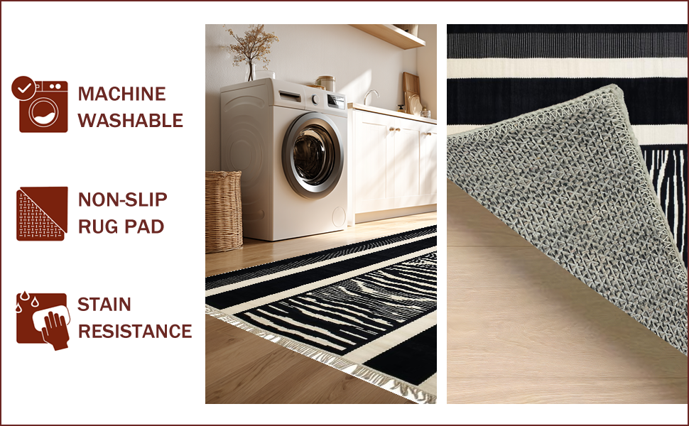 Ultra Soft Area Rug, Non Slip, Stain Resistant, Washable Area Rugs for Living Room, Bedroom, Chic Safari-Inspired Black and White(Black) Overview: