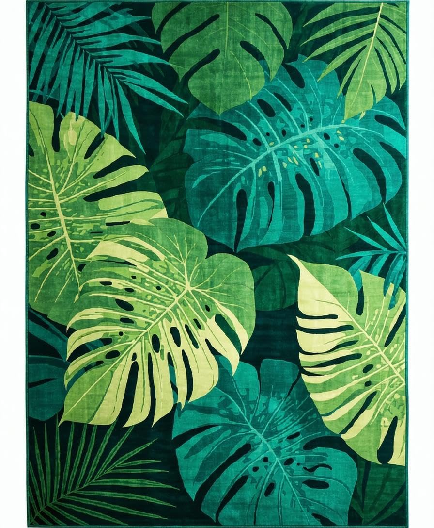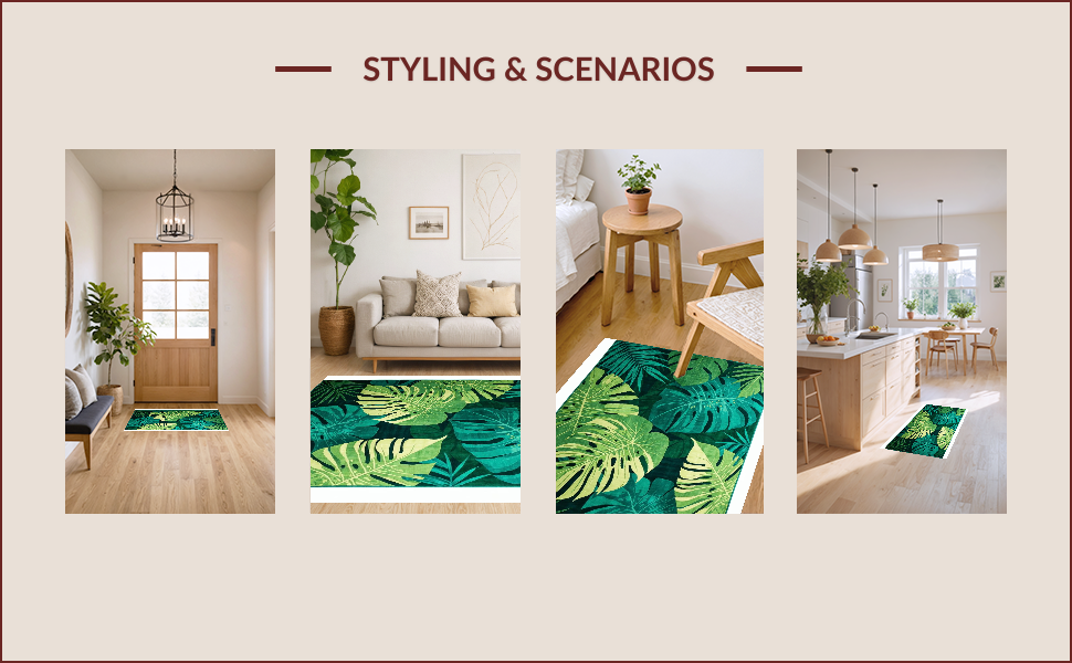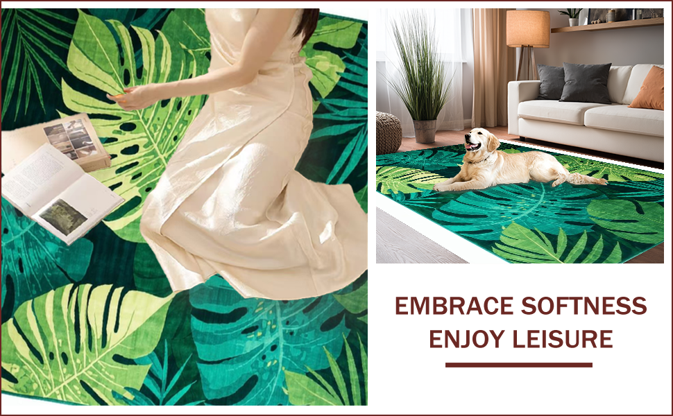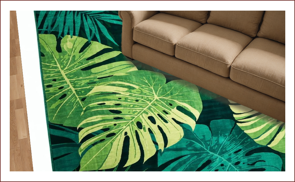 Ultra Soft Area Rug, Non Slip, Stain Resistant, Washable Area Rugs for Living Room, Bedroom, Chic Sage Green Botanical Print(Green) Overview:
