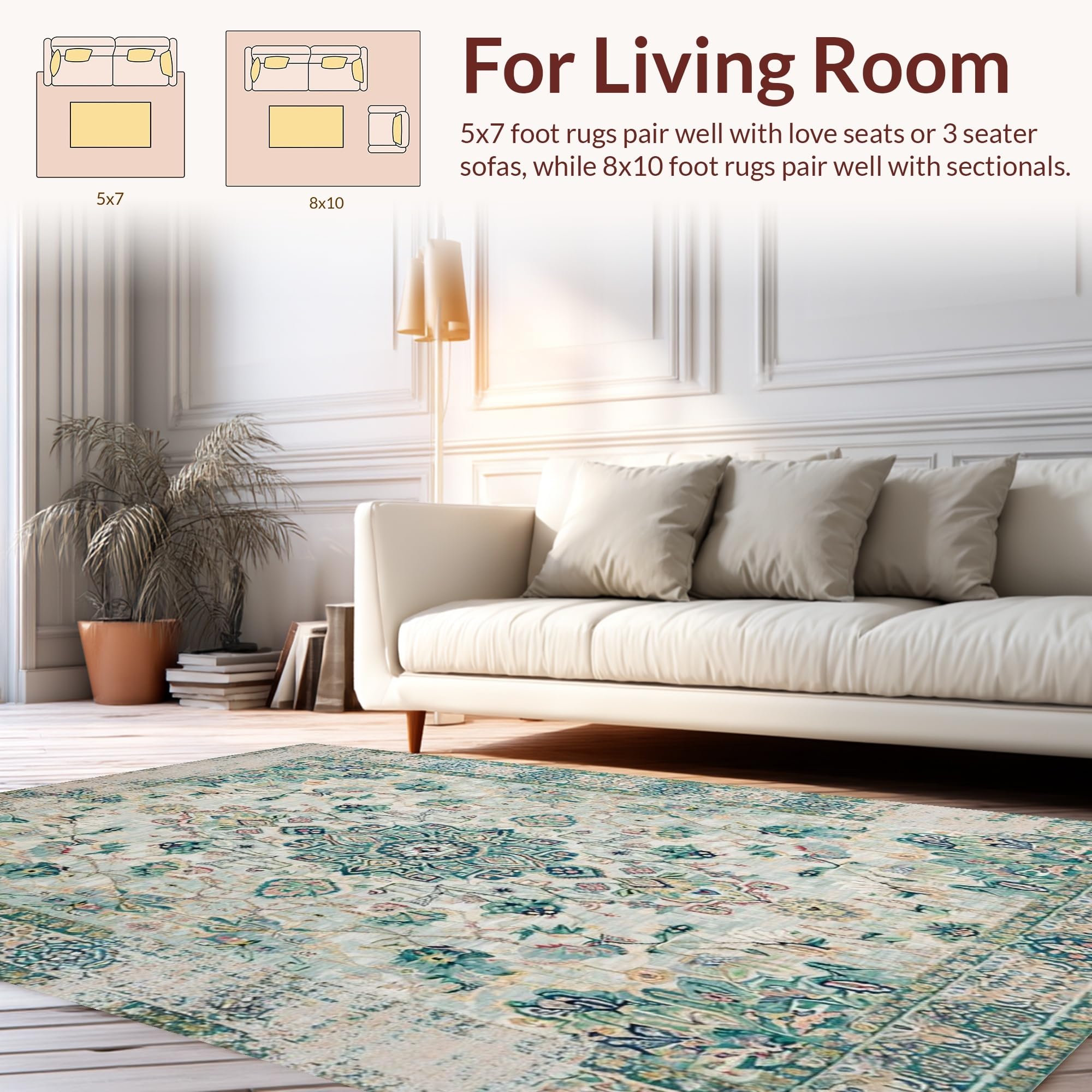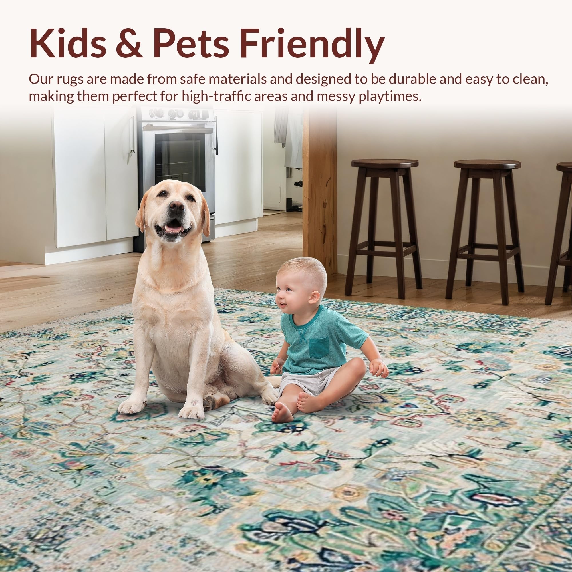 Ultra Soft Area Rug, Non Slip, Stain Resistant, Washable Area Rugs for Living Room, Bedroom, Chic Sage Green Tiled Pattern(Beige) Overview: