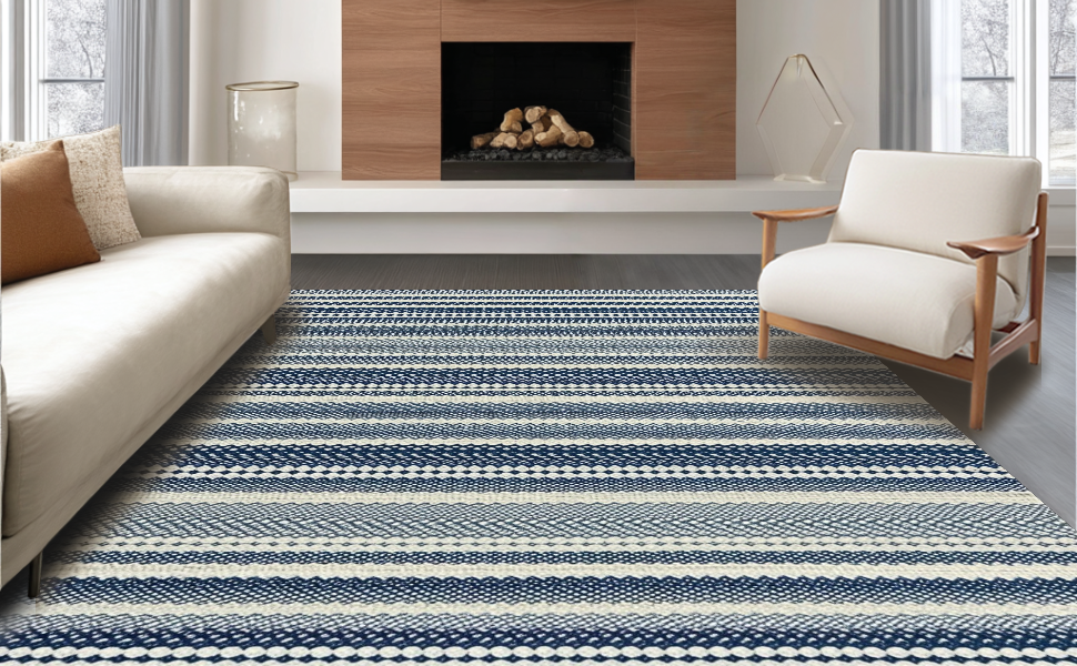 Ultra Soft Area Rug, Non Slip, Stain Resistant, Washable Area Rugs for Living Room, Bedroom, Chic Scalloped Earthy Aesthetic(Blue) Overview: