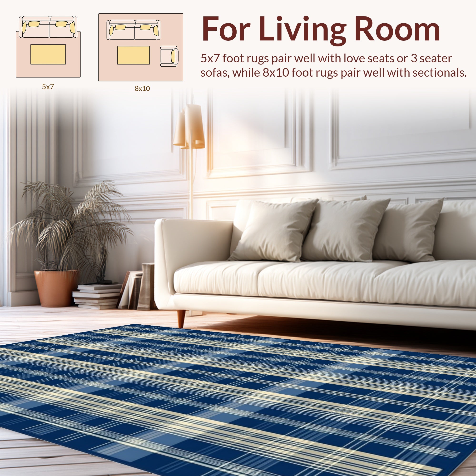 Flatwoven High Traffic Area Rug, Chic Neutral Layering, Non Slip, Stain Resistant, Washable Area Rugs for Living Room, Bedroom (Blue) Overview: