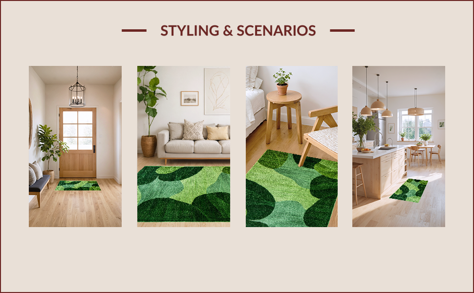 Ultra Soft Area Rug, Non Slip, Stain Resistant, Washable Area Rugs for Living Room, Bedroom, Chic Soft Plush Minimalist Vibe(Green) Overview: