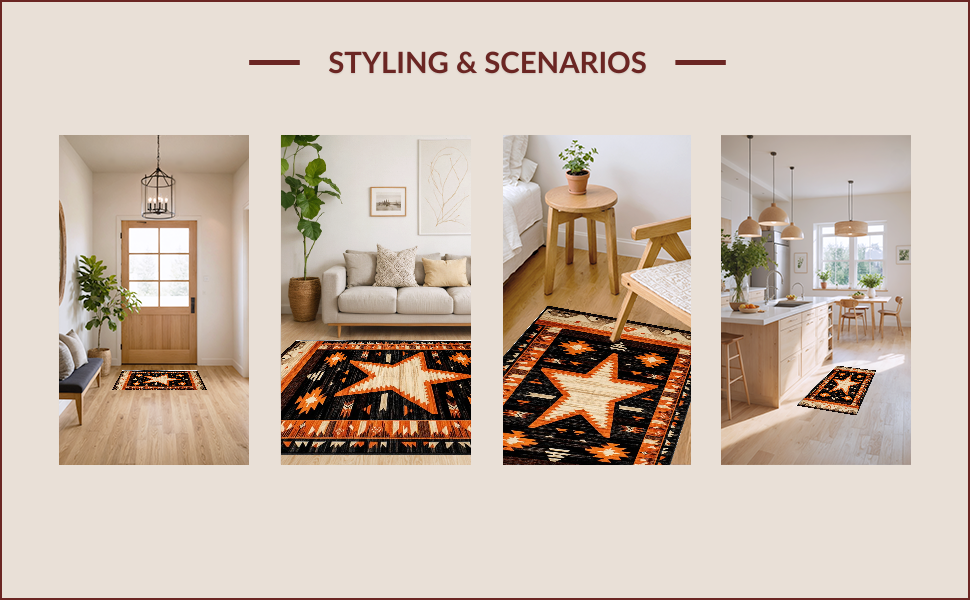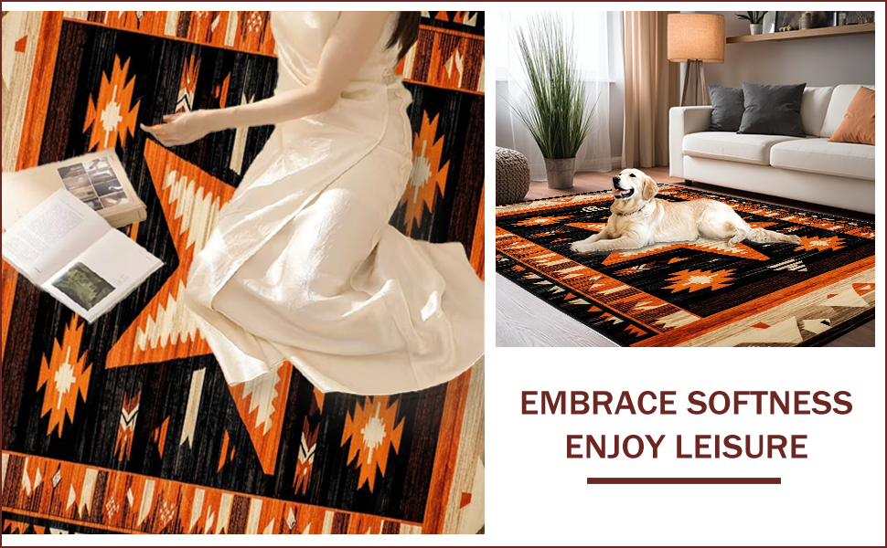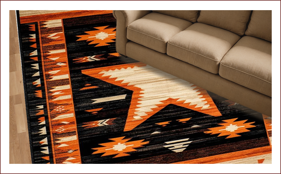 Ultra Soft Area Rug, Non Slip, Stain Resistant, Washable Area Rugs for Living Room, Bedroom, Chic Southwestern Star Design(Orange) Overview: