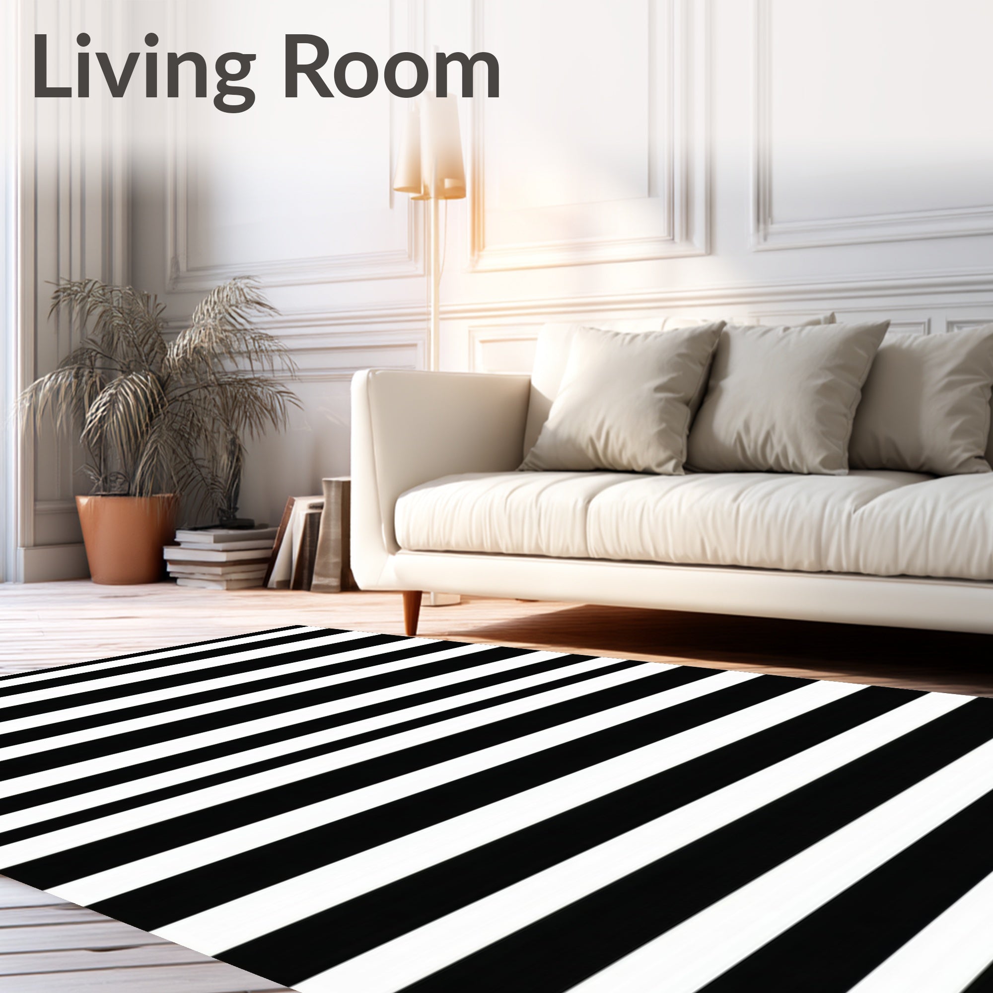 Flatwoven High Traffic Area Rug, Chic Striped for Entryway Patio Modern Urban, Non Slip, Stain Resistant, Washable Area Rugs for Living Room, Bedroom (Black) Overview: