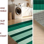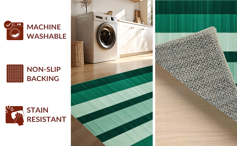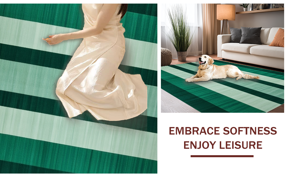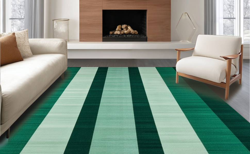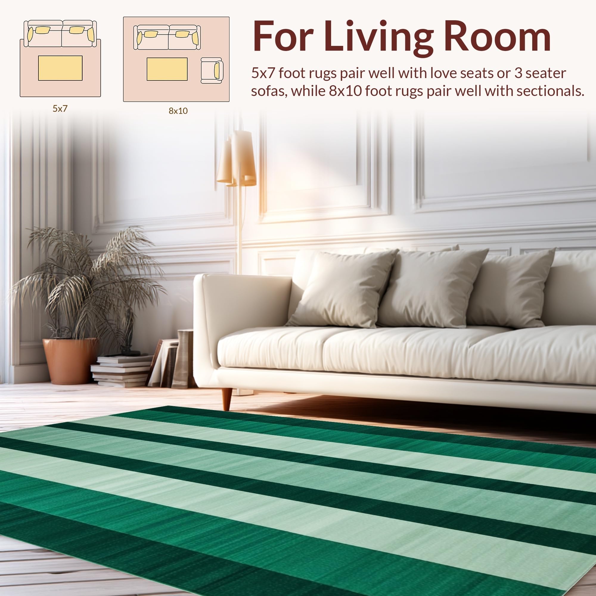 Ultra Soft Area Rug, Non Slip, Stain Resistant, Washable Area Rugs for Living Room, Bedroom, Chic Striped Coastal Vibe(Green) Overview: