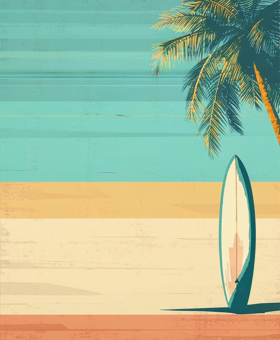 Chic Surfboard Bathroom Featuring Palm Trees on Rustic Wood Texture(Blue)