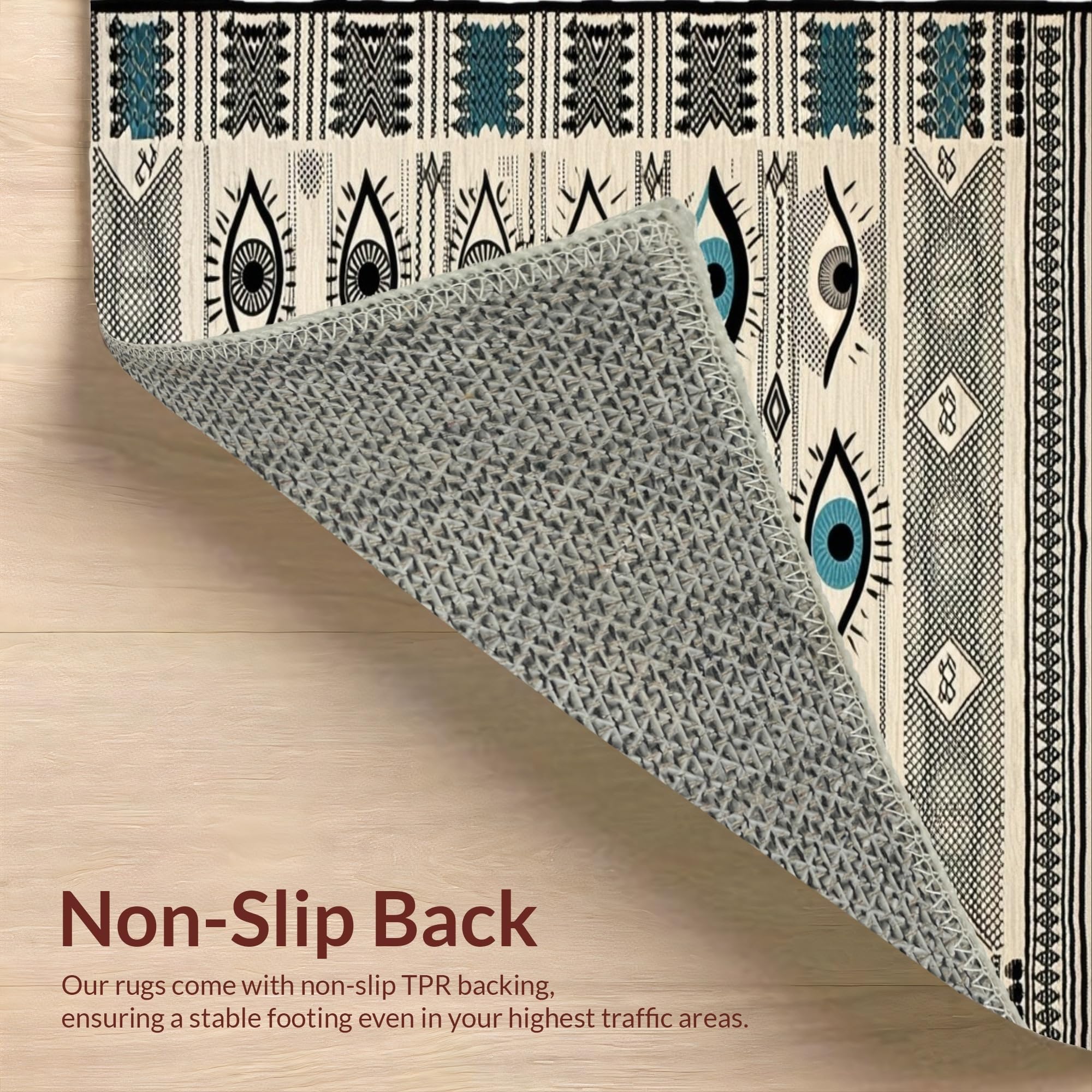 Ultra Soft Area Rug, Non Slip, Stain Resistant, Washable Area Rugs for Living Room, Bedroom, Chic Tiled Ethereal Design(Blue) Overview: