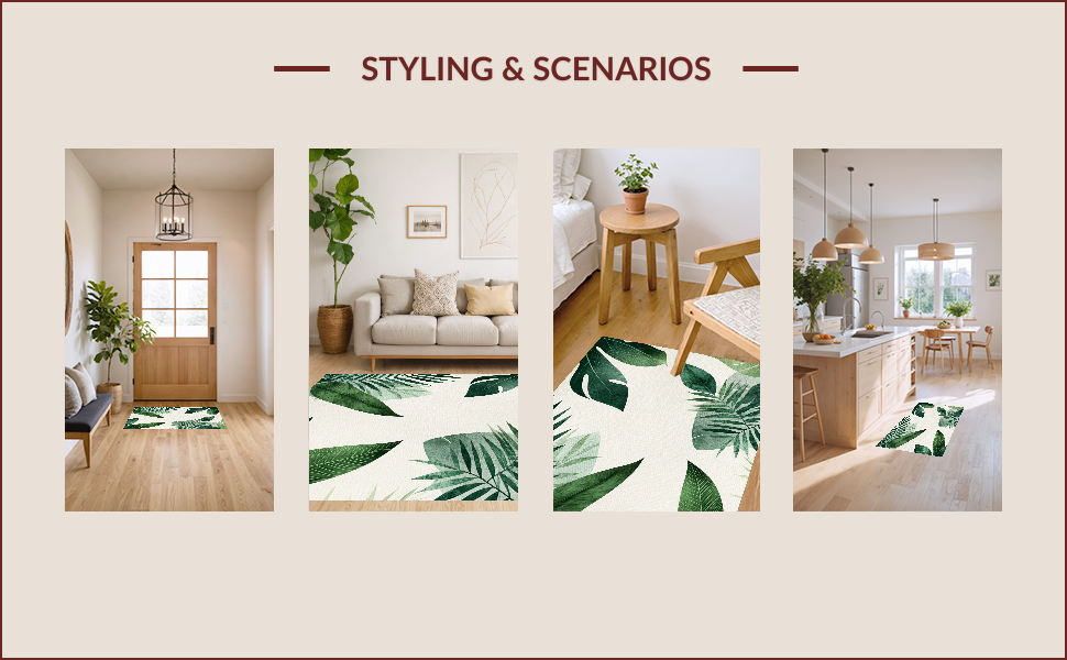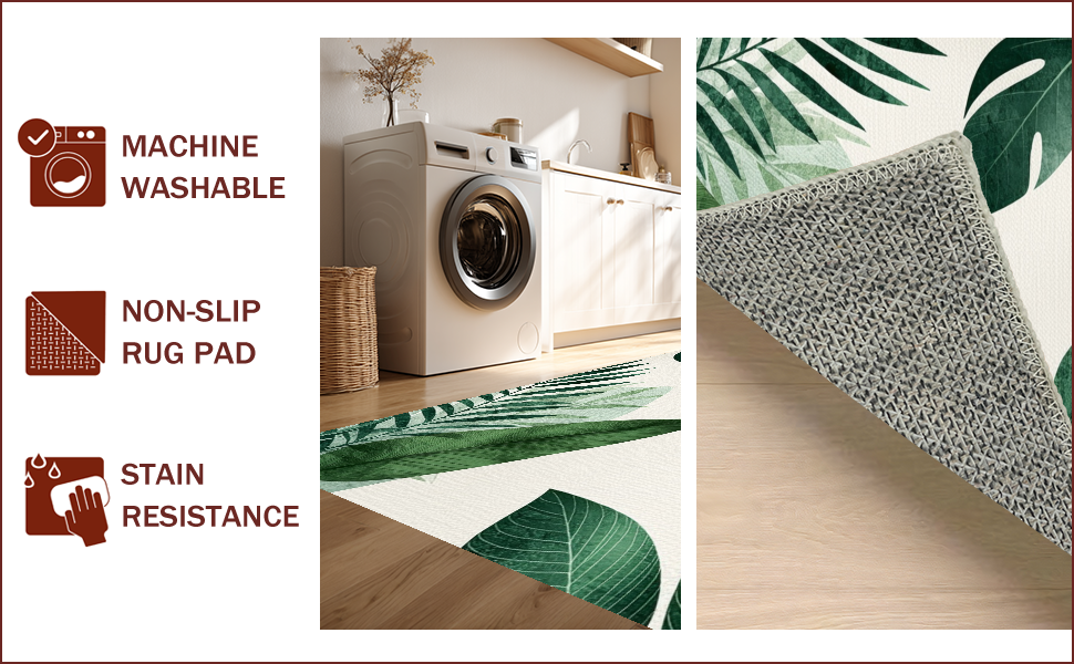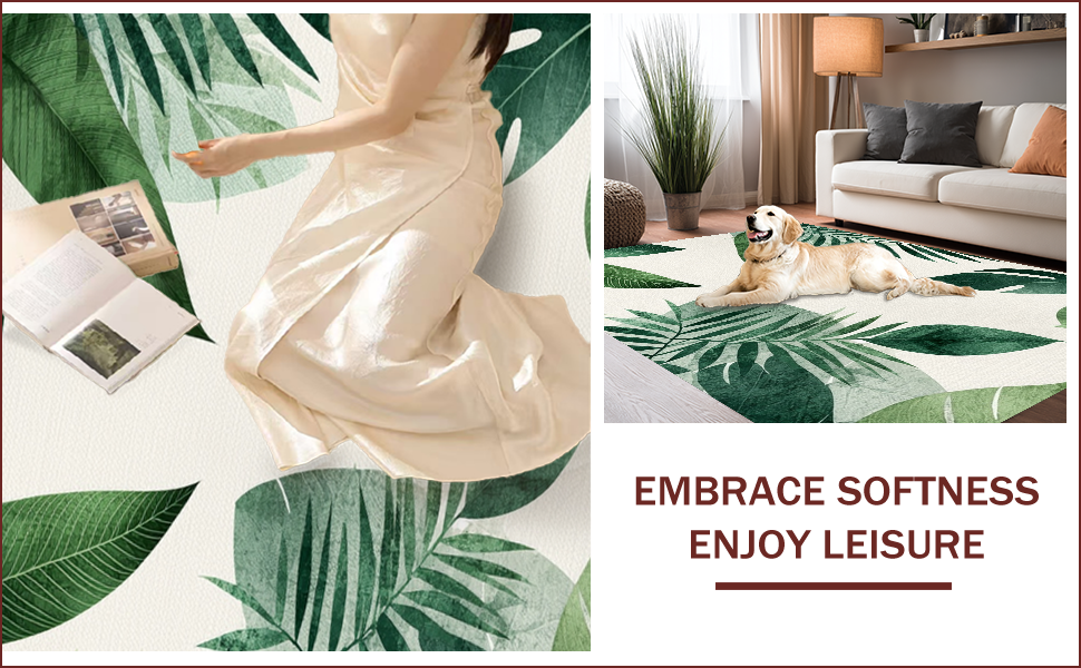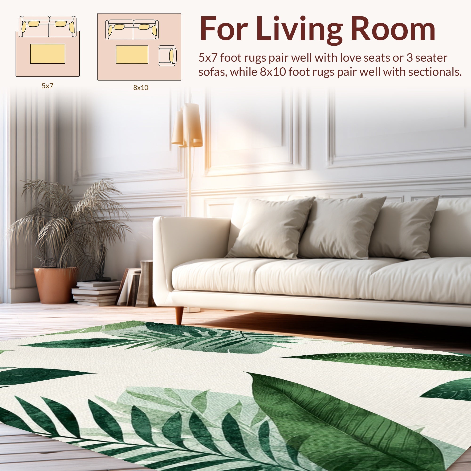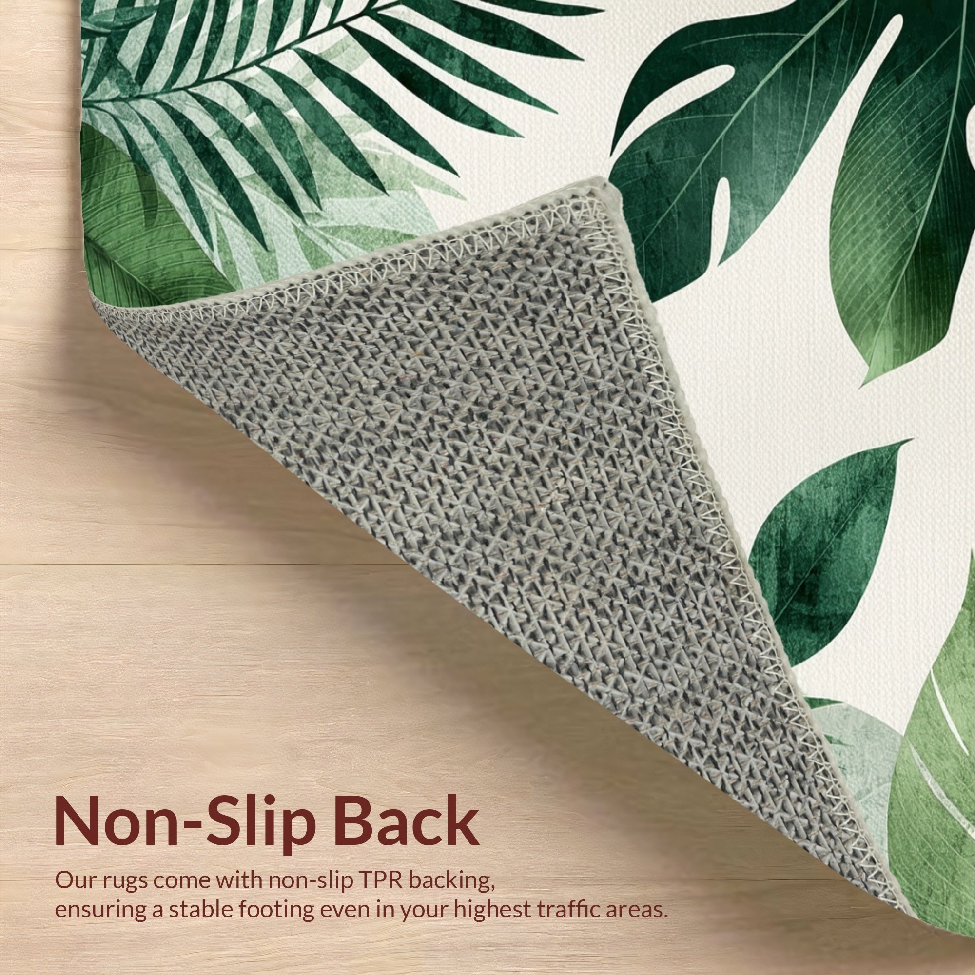 Ultra Soft Area Rug, Non Slip, Stain Resistant, Washable Area Rugs for Living Room, Bedroom, Chic Tropical Botanical Non-Slip Rug(Green) Overview: