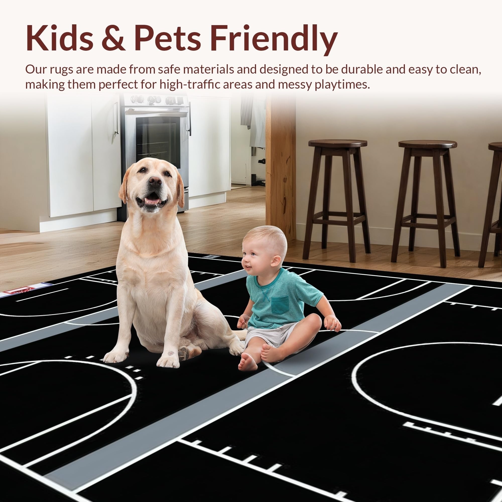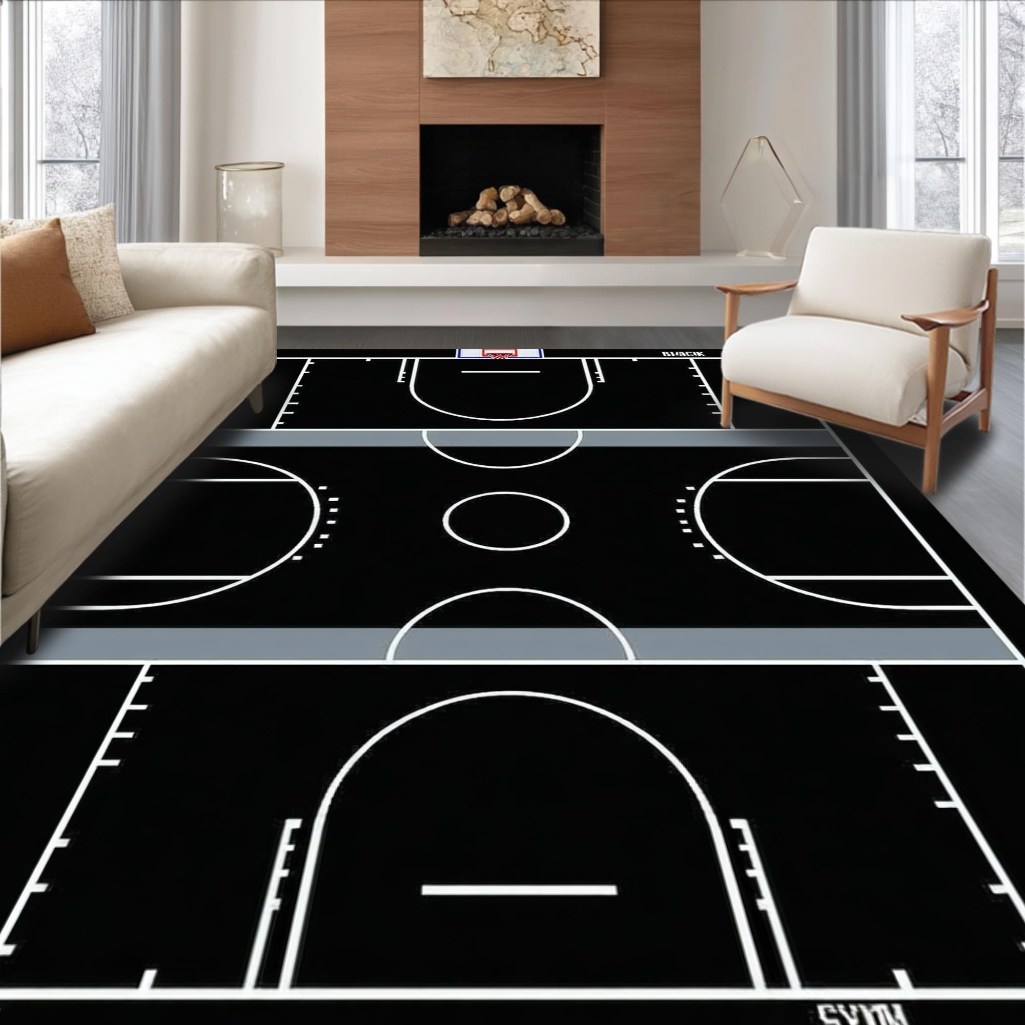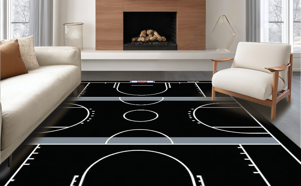 Ultra Soft Area Rug, Non Slip, Stain Resistant, Washable Area Rugs for Living Room, Bedroom, Chic Urban Basketball Style(Black) Overview: